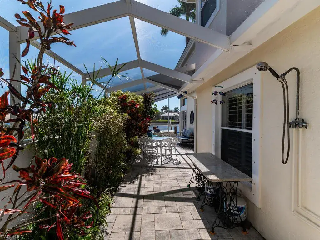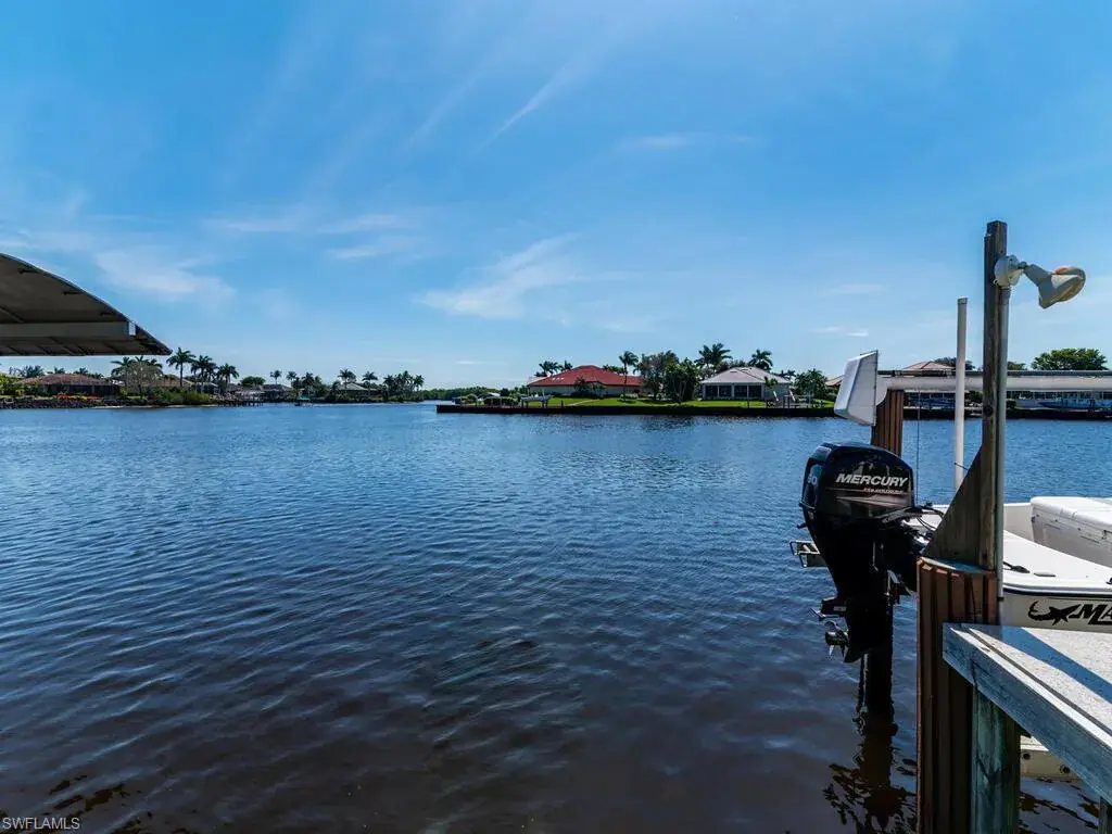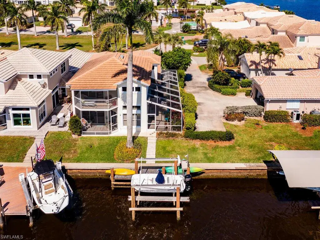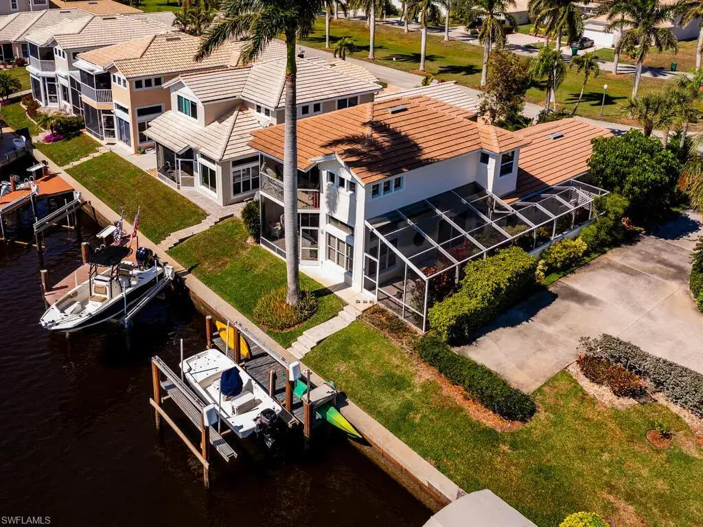 Boating enthusiasts will appreciate the private boat slip with lift, offering direct access to the Gulf and Ten Thousand Islands. Additional highlights include a 2-car attached garage, in-home laundry, and a charming screened entry with paver block accents.
