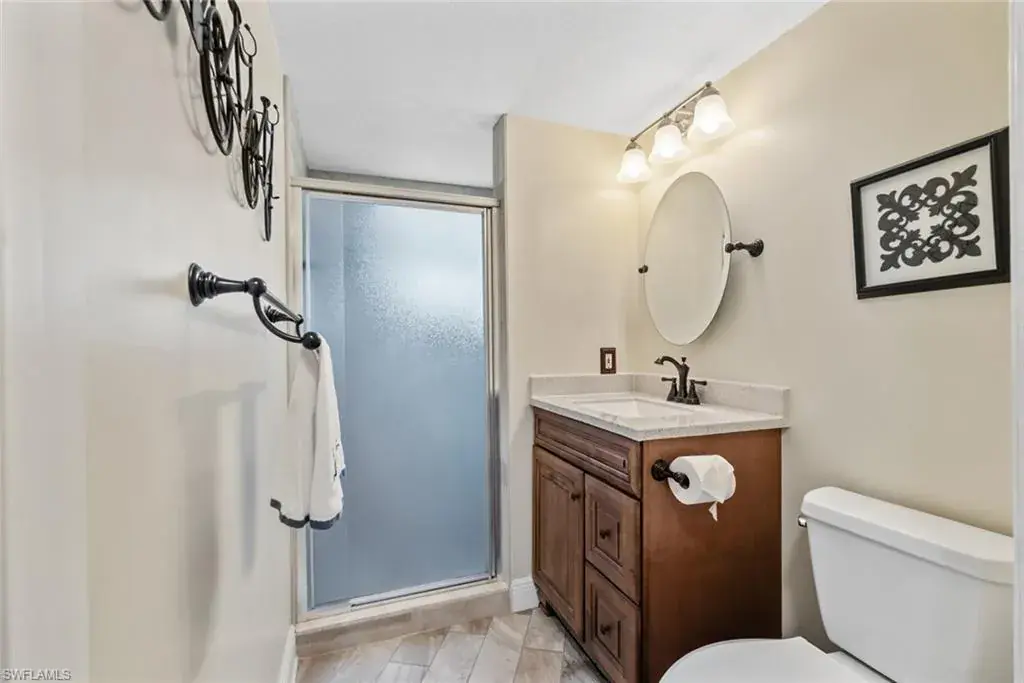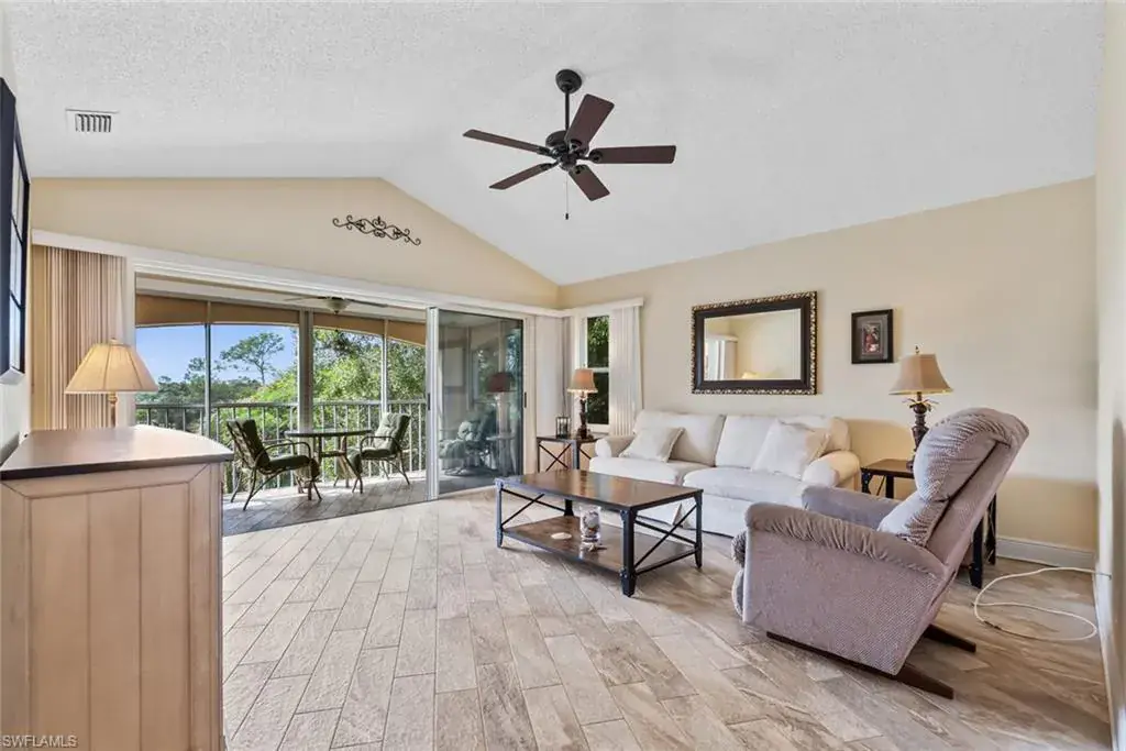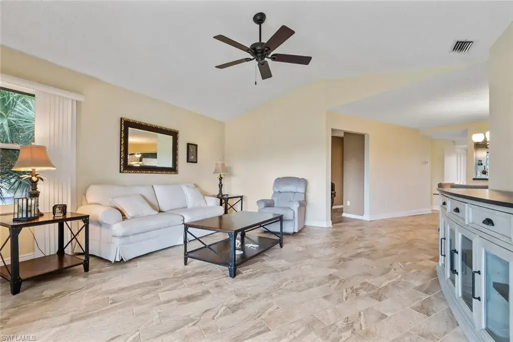 Welcome to this beautifully remodeled and fully equipped turnkey 3-bedroom, 2-bath condo with a 1-car garage, ideally located in the heart of Naples, Florida — just under 3 miles from the beach. Designed for comfort and style, this residence features cathedral ceilings, ceramic tile floors throughout, stainless steel appliances, and updated bathrooms with white shaker cabinets and quartz countertops, blending elegance with everyday ease.