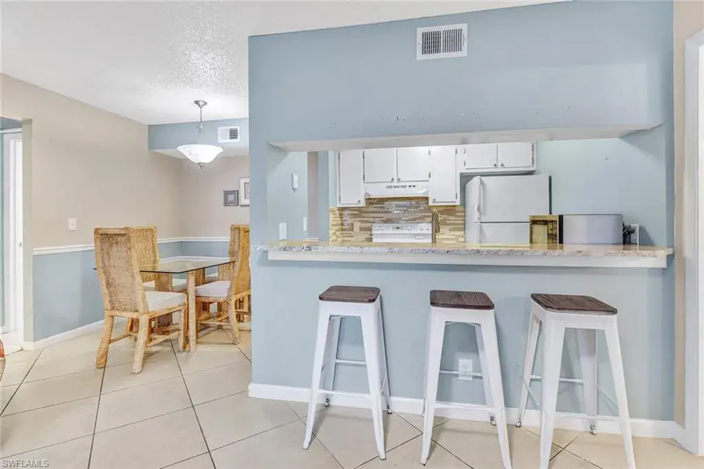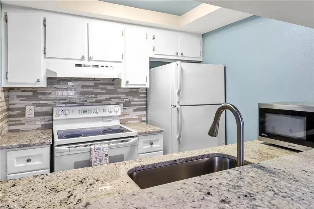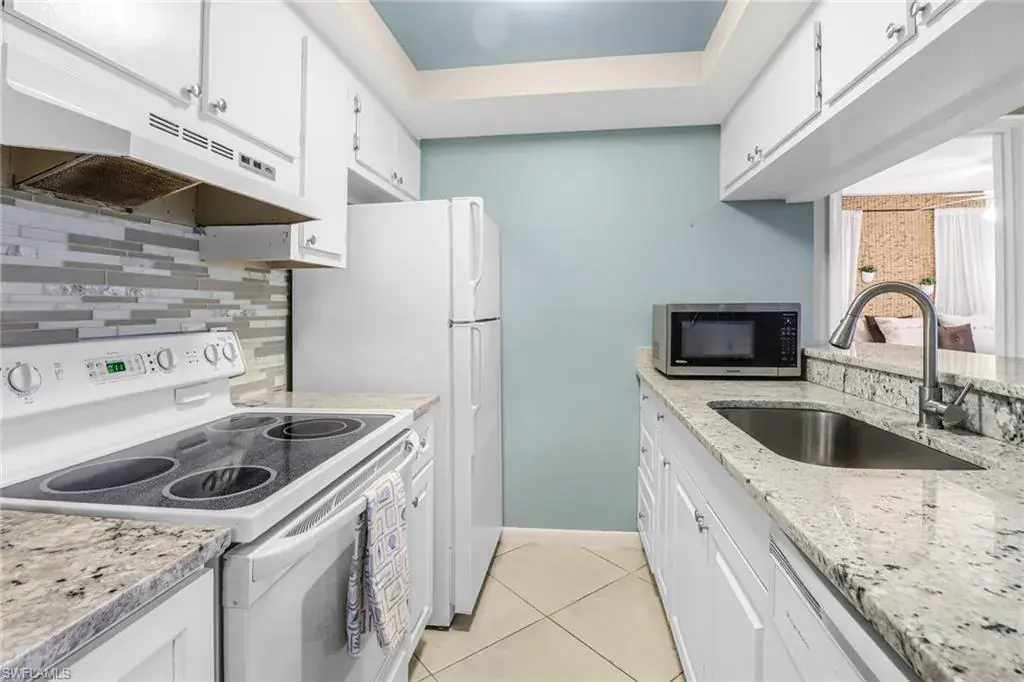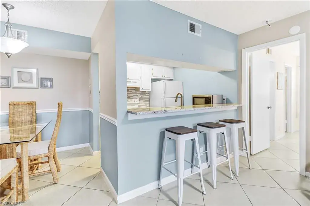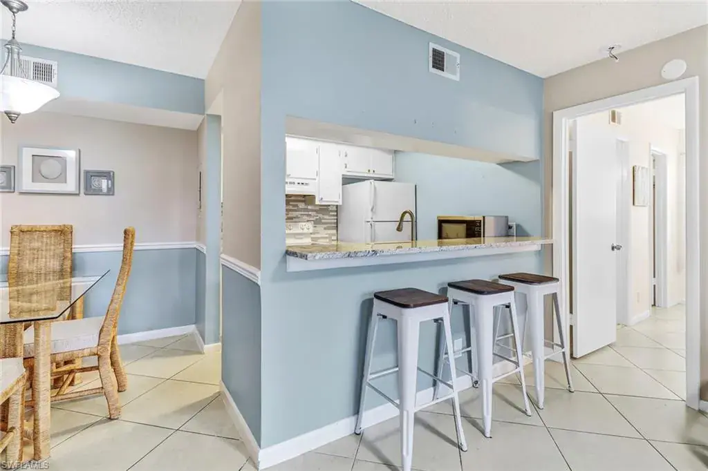Welcome to this beautifully updated 2-bedroom, 2-bathroom first-floor end unit located in The Fairways at Par 2, a sought-after 55+ community surrounded by the upcoming, state-of-the-art “The Gate Golf Club” redevelopment. This unit features all-new tile flooring, ceiling fans, and paint throughout. The modern kitchen boasts new granite countertops, an extended bar seating 3-4, and a custom tray ceiling with a nickel finish flush mount light. Both bathrooms are upgraded with new vanity light fixtures and decorative mirrors. Enjoy peace of mind with motorized hurricane shutters and impact-resistant windows. The spacious layout includes separate living and dining areas, with a large walk-in closet in the master bedroom. The community offers a scenic circular drive, a clubhouse, a resort-style pool, shuffleboard, pickleball, tennis, bocce, a serene lake with a fountain, and many community social events. The surrounding county-owned land will be transformed into a public golf course costing more than $21 million, expected to open in fall 2025. Enjoy golf course living without the typical fees. This like-new unit, coupled with the neighborhood’s future plans, offers unmatched value in Naples. Don’t miss out on this rare opportunity to own a move-in-ready unit in a dynamic and evolving community, perfect for immediate occupancy or leasing.