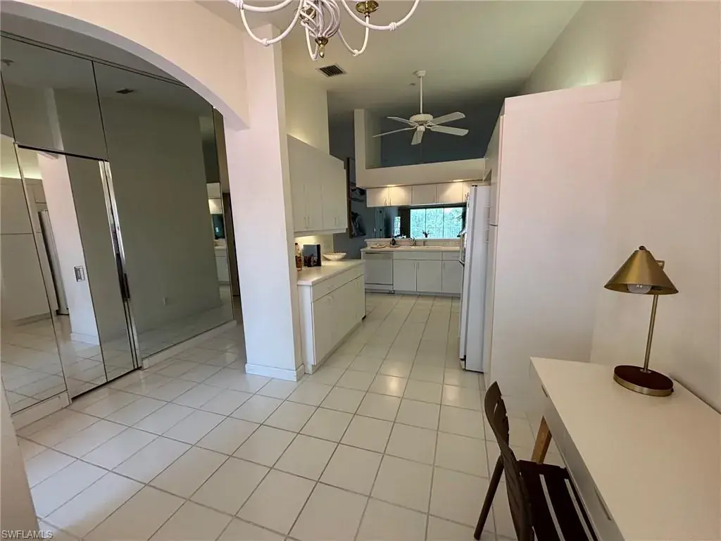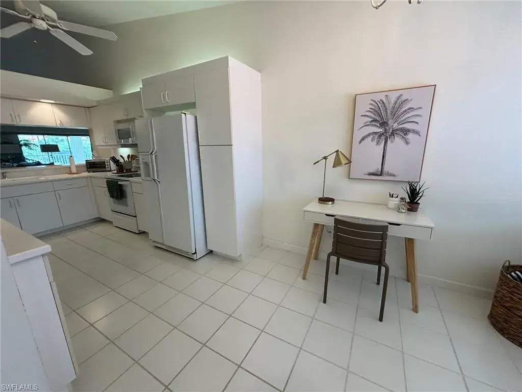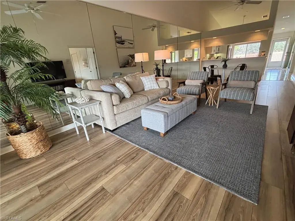 Impeccably kept second floor unit with a lovely lake and fountain view that comes Turnkey Furnished. Vaulted ceilings, light and bright Kitchen with a new refrigerator and attractive furnishings. Beautiful new flooring recently installed throughout the dining and family room giving the area an updated an sophisticated appearance along with new lanai furniture which provides a place for dining and relaxation on your private screened lanai. Electric storm shutters and Private Garage. Resort style amenities including a Lazy River pool and Lap pool. Short walking distance to the clubhouse. Marco Island and Downtown Naples are just a short drive from the community. Enjoy the amazing restaurants, shopping and golfing all within minutes of FWBR.