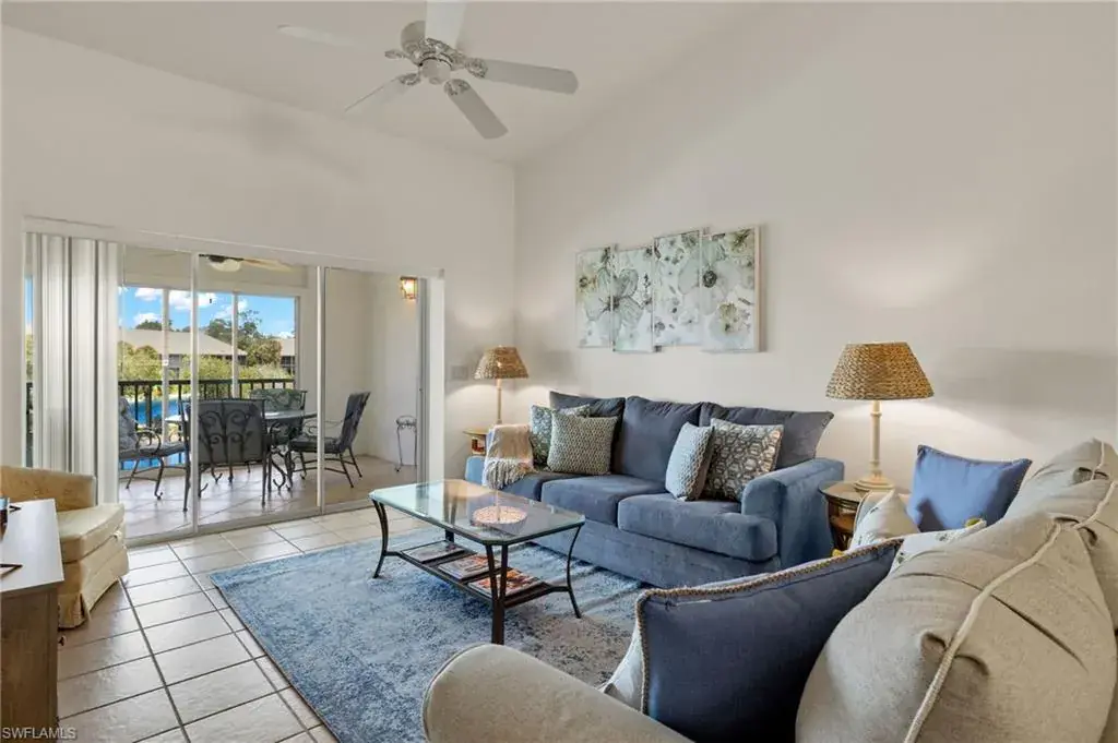 Welcome to Falling Waters Beach Resort in Naples, FL! This fully furnished 2nd story 2 bed/2 bath condo offers a comfortable and convenient living experience and comes with income as Vacation Tenants booked for January 16th, 2025 through April 15th, 2025! The resort-style amenities include a lazy river, bike and jog path, bocce court, clubhouse, community pool, community room, community spa/hot tub, pickleball, shuffleboard, and tennis court. Inside the condo, you’ll find a beautifully designed space with granite kitchen countertops, white appliances, and white kitchen cabinets. The main living area features tile floors, while the bedrooms offer cozy wood flooring. Enjoy the Florida weather on the large covered and screened lanai show casing an expansive lake with fountain view. The condo also includes laundry facilities in residence and plenty of closet space for all your storage needs. Additionally, a detached 1 car garage is available for your convenience. With its prime location and fantastic amenities, this 2 bed/2 bath condo at Falling Waters Beach Resort is the perfect place to call home. Don’t miss out on this opportunity to experience the best of Naples living!