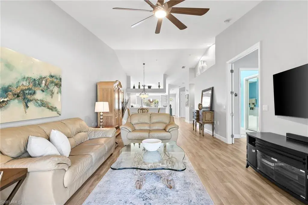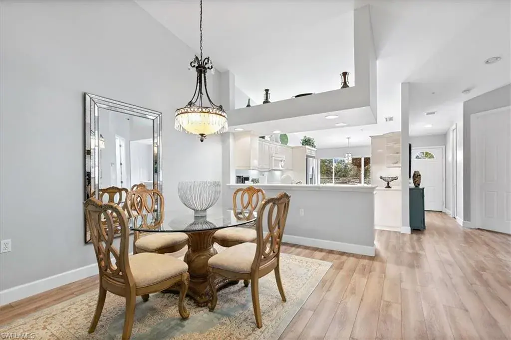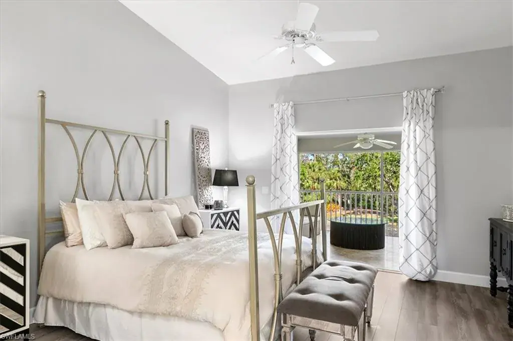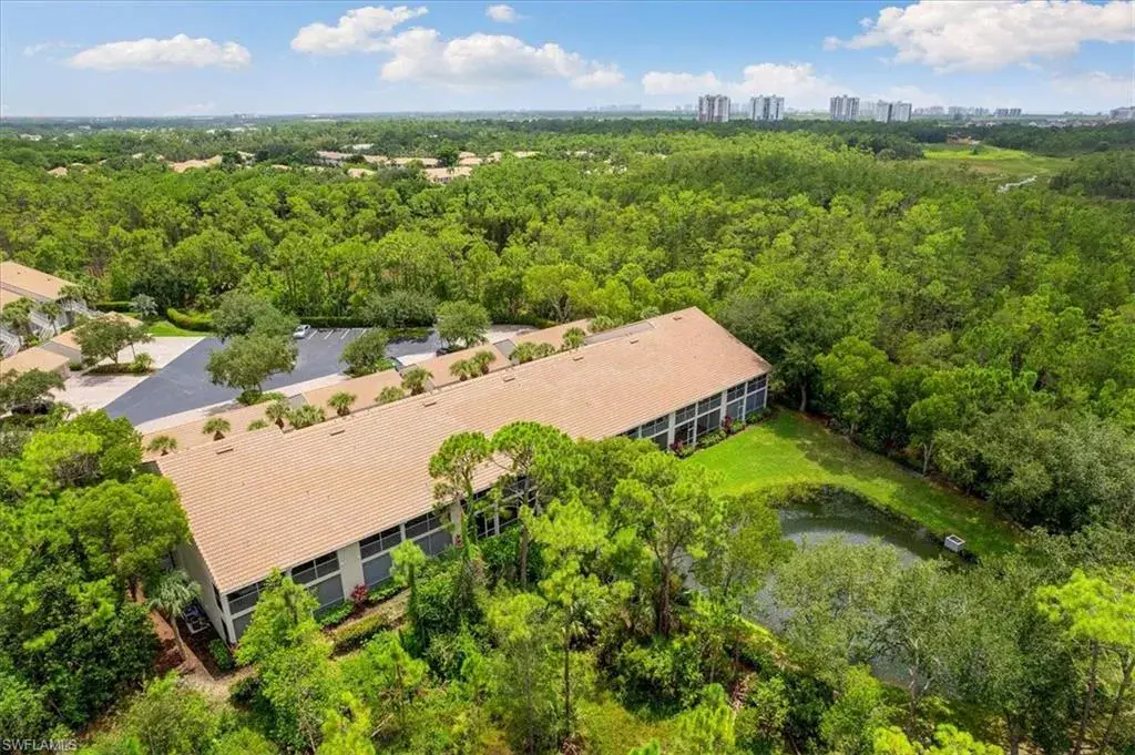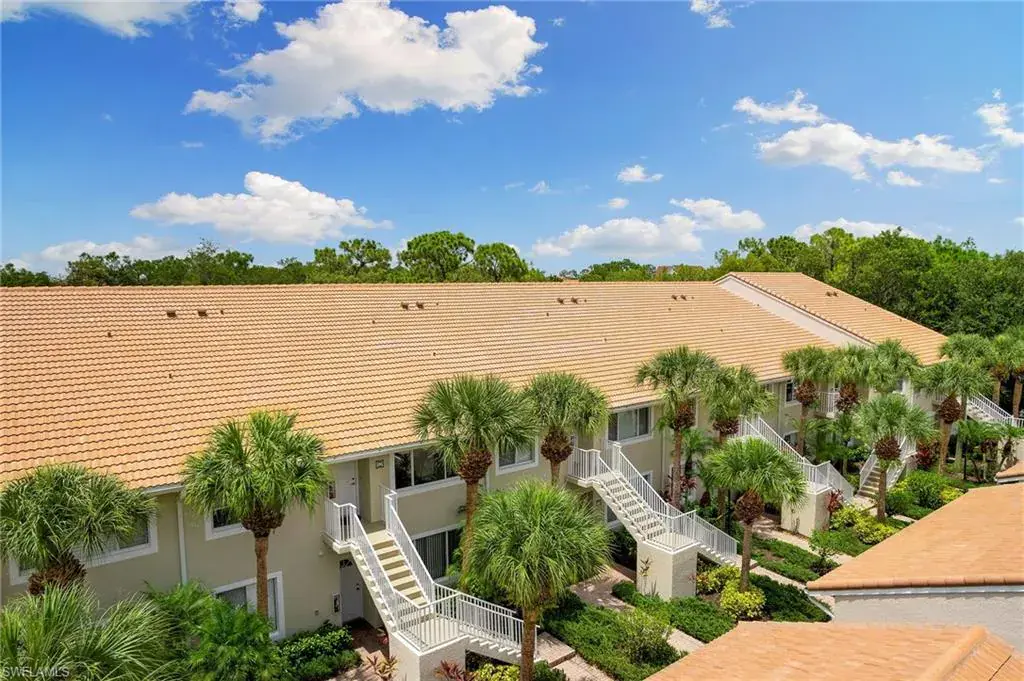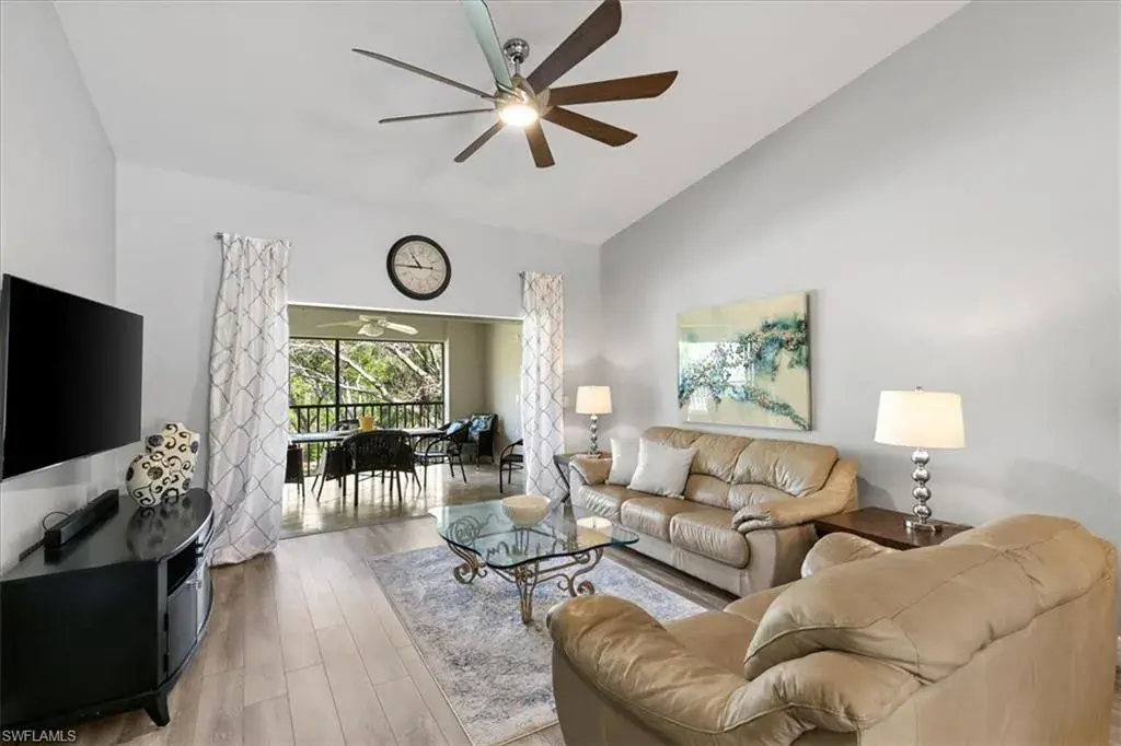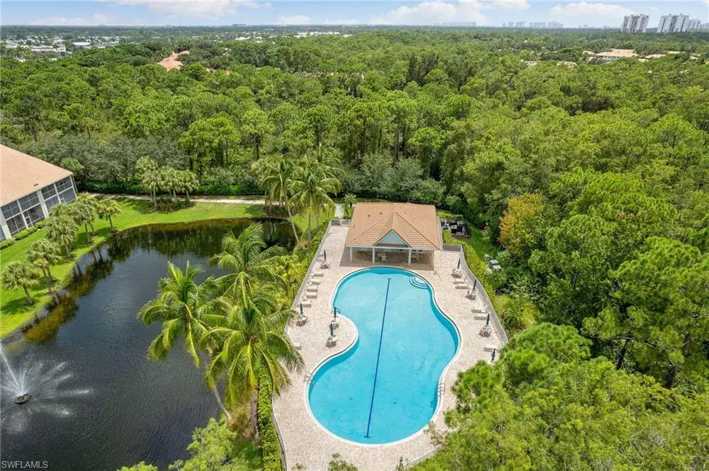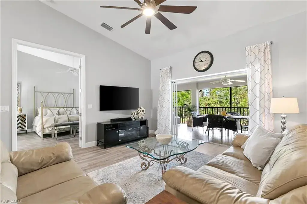 A perfect balance of comfort and luxury awaits in this beautifully turnkey furnished 2-bedroom, 2-bath condo nestled within Falling Waters North Preserve—a serene, boutique community ideally situated west of US-41. Perched on the second floor for enhanced privacy and soaring cathedral ceilings, this residence feels open, airy, and grand—bathed in natural light streaming through French doors and generous windows. The open-concept living and dining area flows seamlessly into a sleek eat-in kitchen, ideal for entertaining or quiet evenings at home. Pocketing sliders open to an expansive screened lanai that spans the full length of the condo. Here, tranquil woodland and fountain views create an idyllic backdrop for morning coffee or al fresco dining. The primary suite is a true retreat, offering private lanai access, a spacious walk-in closet, dual sinks, a vanity area, a deep soaking tub, and a glass-enclosed shower. The guest suite provides equal comfort and privacy, ensuring every visitor feels at home. Enjoy resort-style relaxation at the lagoon-shaped community pool, surrounded by lush tropical landscaping—a perfect spot to bask in the Florida sunshine. Located just minutes from Vanderbilt Beach, Mercato, and Coconut Point, this exceptional residence offers the coveted west-of-41 lifestyle: tranquil, elegant, and close to everything Naples has to offer.