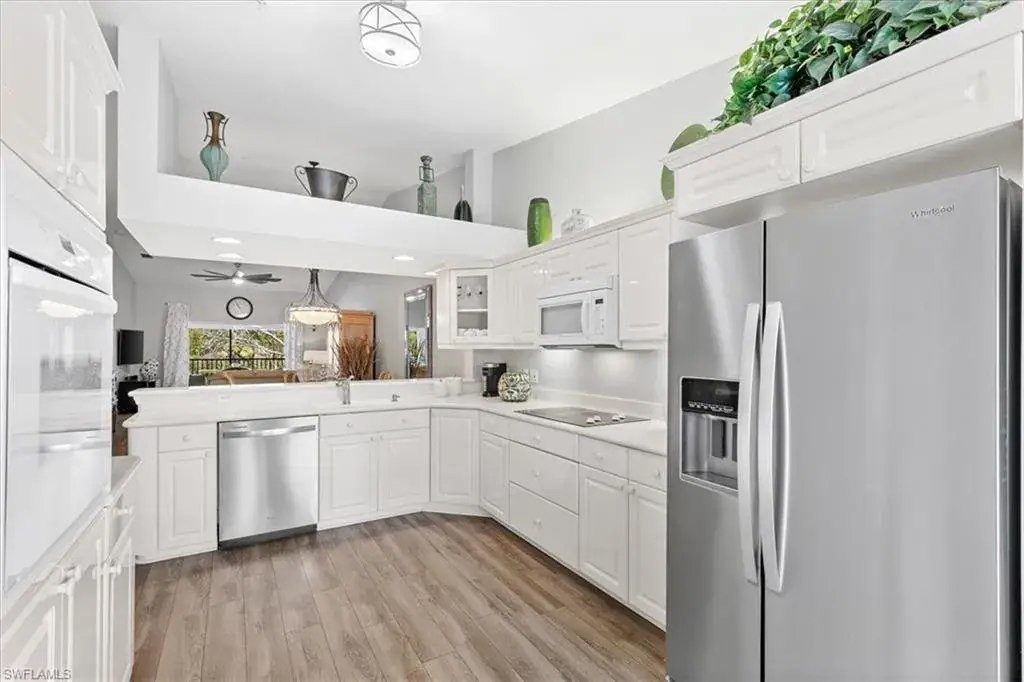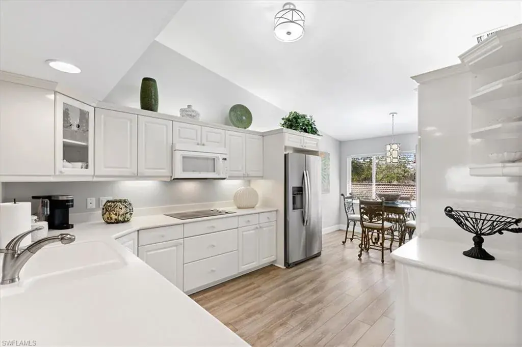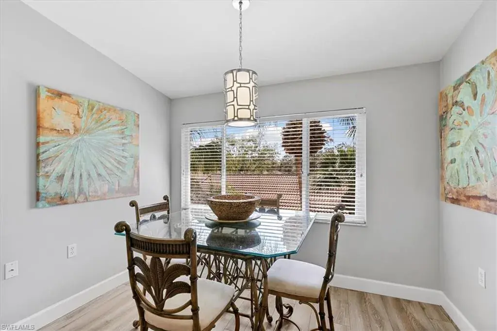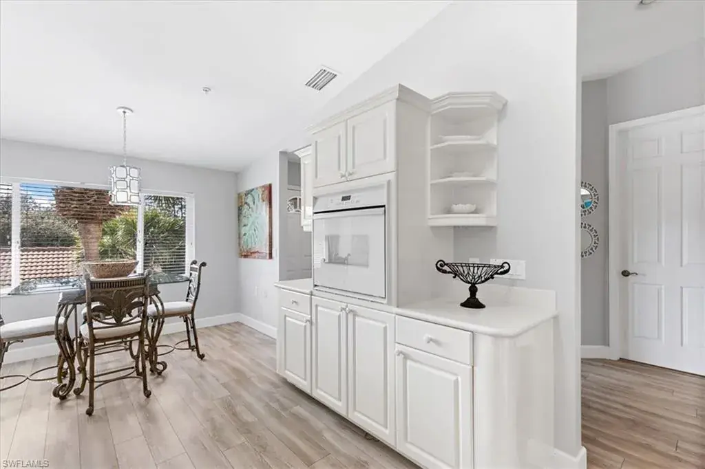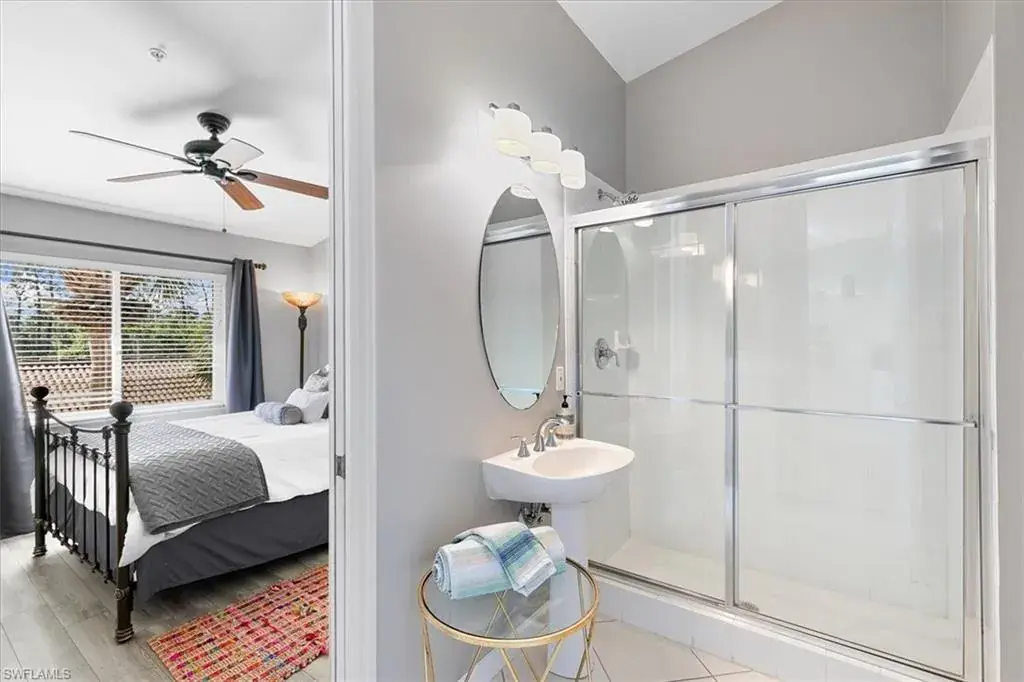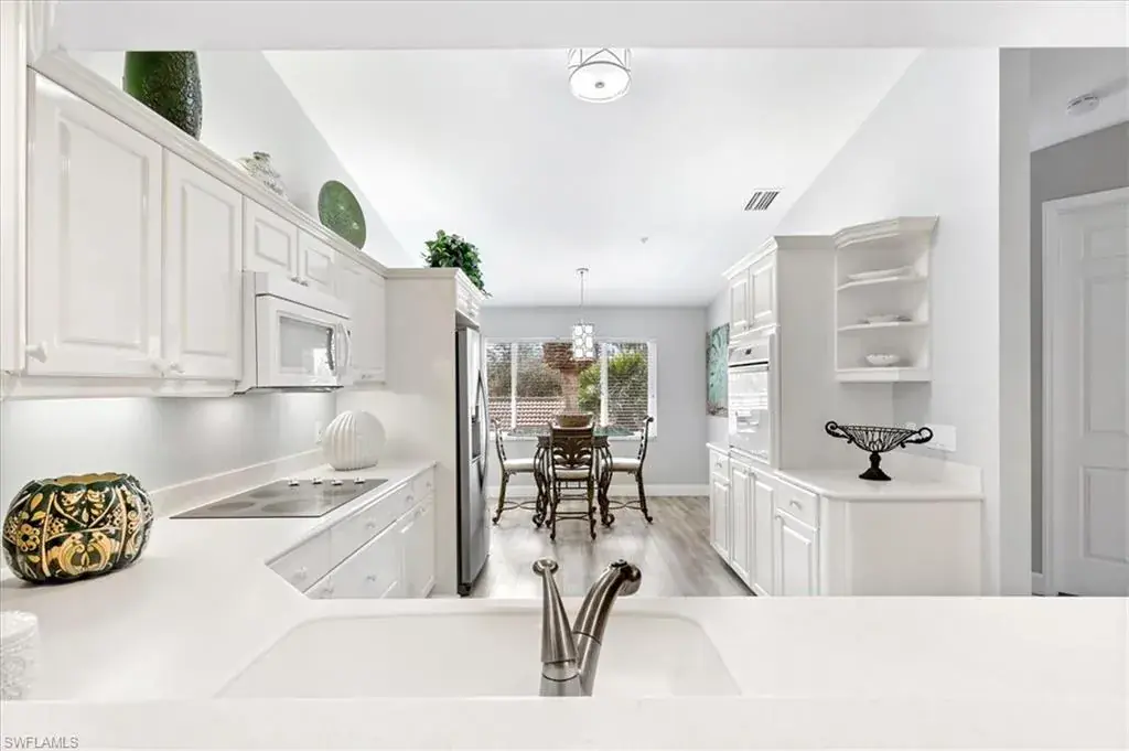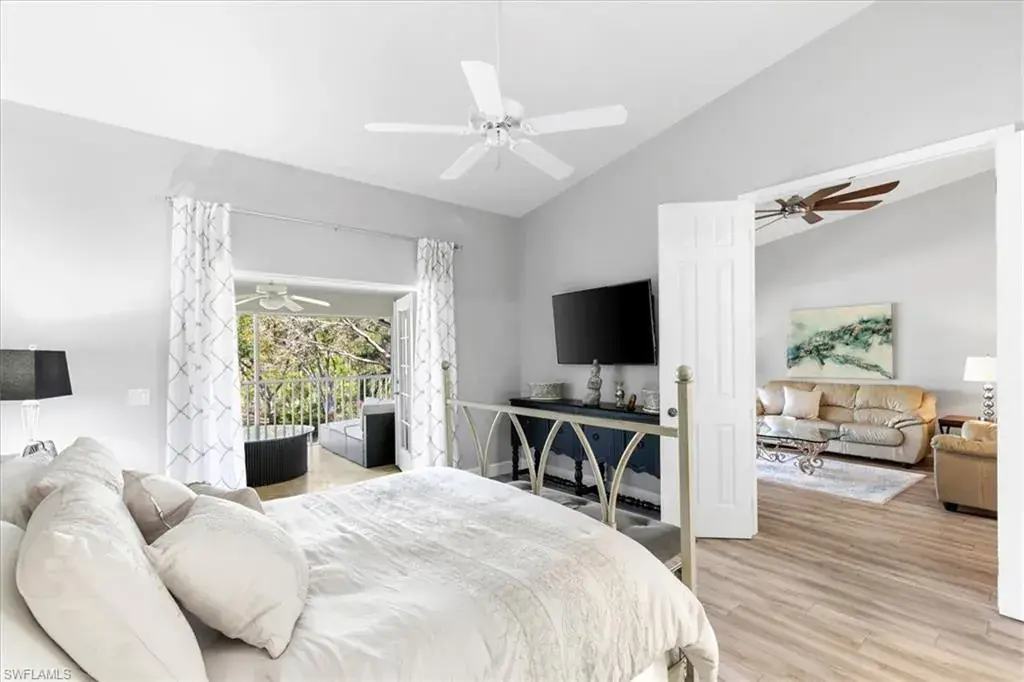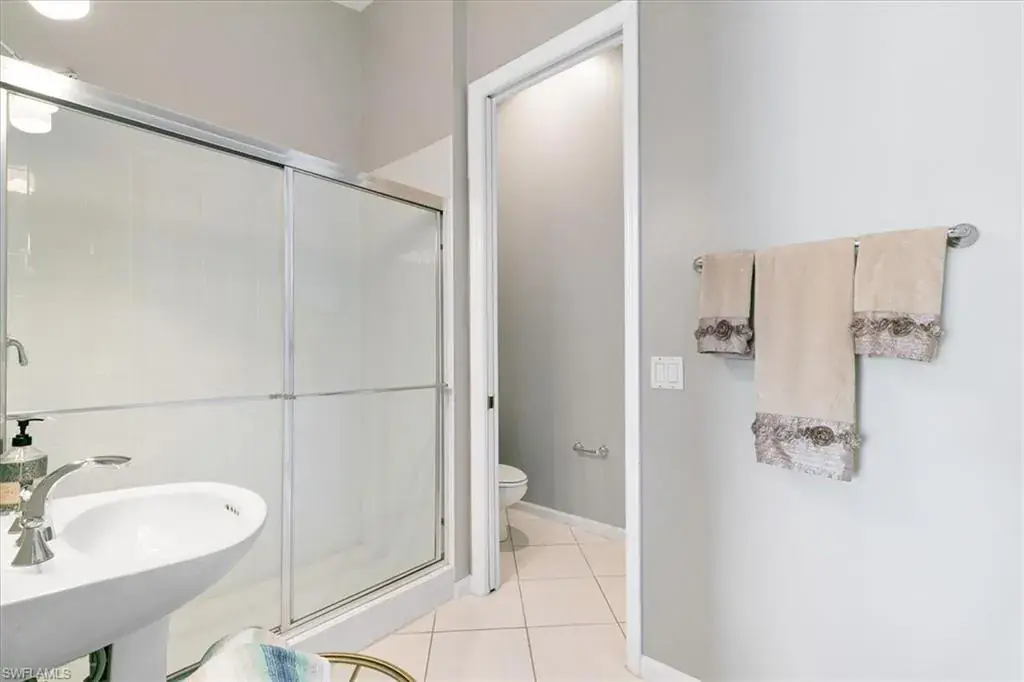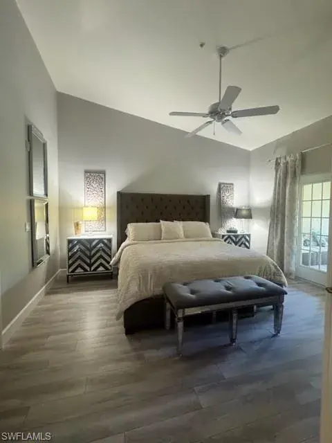 A perfect balance of comfort and luxury awaits in this beautifully turnkey furnished 2-bedroom, 2-bath condo nestled within Falling Waters North Preserve—a serene, boutique community ideally situated west of US-41. Perched on the second floor for enhanced privacy and soaring cathedral ceilings, this residence feels open, airy, and grand—bathed in natural light streaming through French doors and generous windows. The open-concept living and dining area flows seamlessly into a sleek eat-in kitchen, ideal for entertaining or quiet evenings at home. Pocketing sliders open to an expansive screened lanai that spans the full length of the condo. Here, tranquil woodland and fountain views create an idyllic backdrop for morning coffee or al fresco dining. The primary suite is a true retreat, offering private lanai access, a spacious walk-in closet, dual sinks, a vanity area, a deep soaking tub, and a glass-enclosed shower. The guest suite provides equal comfort and privacy, ensuring every visitor feels at home. Enjoy resort-style relaxation at the lagoon-shaped community pool, surrounded by lush tropical landscaping—a perfect spot to bask in the Florida sunshine. Located just minutes from Vanderbilt Beach, Mercato, and Coconut Point, this exceptional residence offers the coveted west-of-41 lifestyle: tranquil, elegant, and close to everything Naples has to offer.