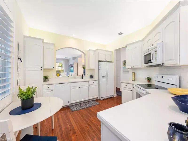 C7808 – Welcome home to this newly renovated, bright, and spacious 1st-floor condo. Beautifully situated overlooking views of the lake and golf course. No detail was spared on this meticulously cared for unit. The unit boasts a long list of improvements including, new impact glass on exterior windows, electric hurricane screen protection for the lanai, new storm door, new waterproof laminate flooring in the living areas and kitchen, fresh paint, new ceiling fans, new high-hats and light fixtures throughout, new hardware on cabinets and doors, new kitchen backsplash, new electrical outlets and switches, new toilets, new faucets, new master bath shower, plantation shutters, marble windowsills, and epoxy garage floor. Nothing to do here except move in and enjoy this fantastic offering. Feather Sound has a unique resort style pool just steps away from this unit. The Strand offers an active country club lifestyle, with three exceptional 9-hole golf courses, tennis, pickleball, fitness center, pool with lap lanes, croquet center, and Island bar. All this is located just minutes from shopping and dining conveniences, such as, the Mercato, Seed to Table, and the famous sugar-sand Naples beaches.
