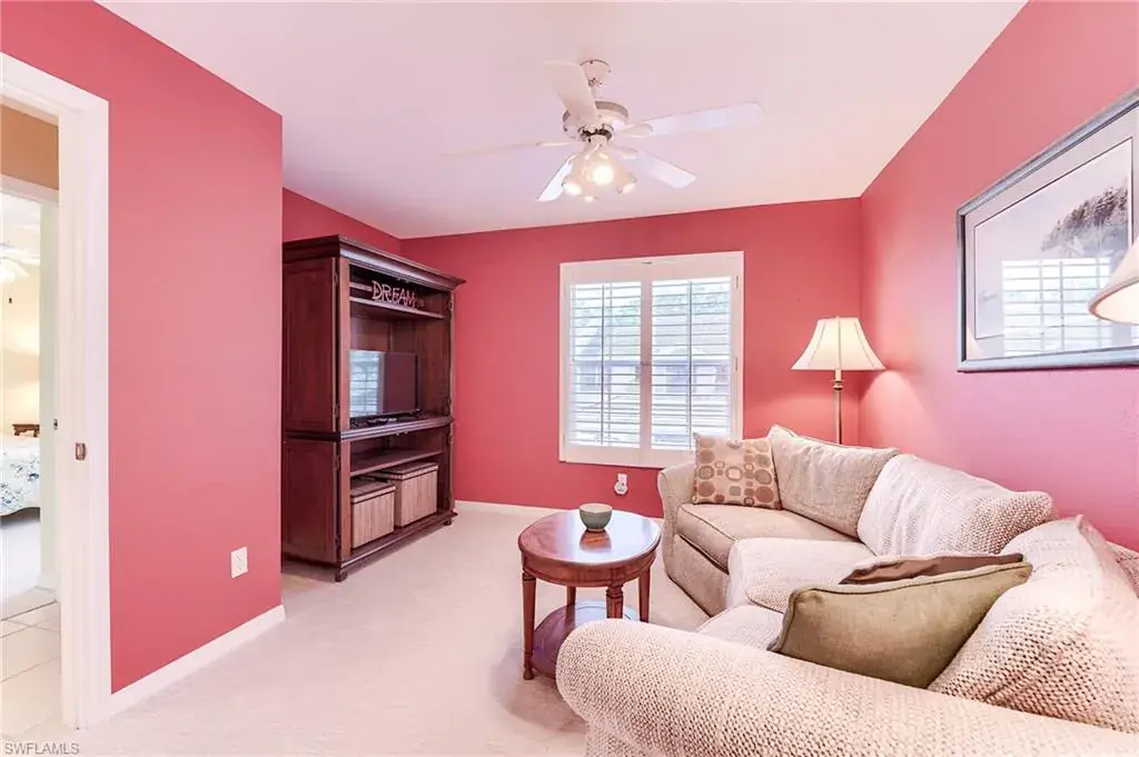 The best part? Step through sliders onto your quite (no road noise here looks out towards Tiburon) expansive screened lanai – your private perch for enjoying Florida mornings and evenings. Plus, the convenience of an in-residence laundry room.