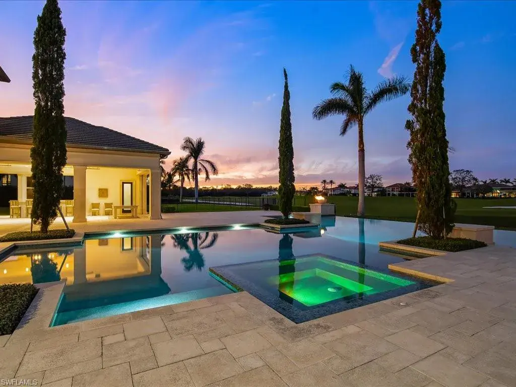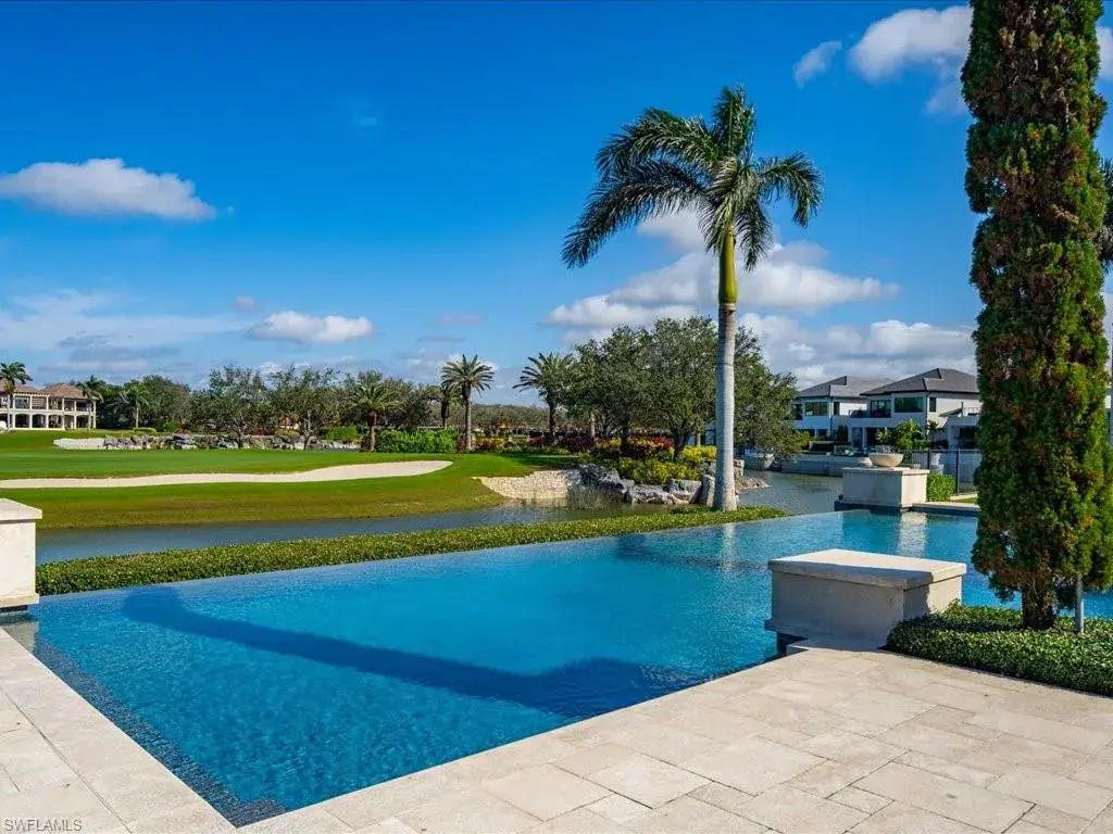 Nestled within the prestigious subdivision of Firenze in the esteemed gated community of Talis Park, this exceptional custom-built estate home epitomizes luxury. Melding refined elegance with meticulous craftsmanship, this residence offers an unparalleled living experience. Step inside to discover a timeless interior design that seamlessly blends sophistication with chic design selections, showcasing intricate details and superior quality craftsmanship. Boasting six spacious ensuite bedrooms, a bonus room, and a separate theater, this spacious layout provides ample space for both privacy and entertainment. The heart of the home lies within the discerning chef’s kitchen, complete with top-of-the-line Wolf and Sub-Zero appliances, double islands, sure to make a statement as you enter and a separate butler’s pantry, ensuring culinary perfection with every meal. Step outside to discover a tranquil oasis, where the meticulously landscaped grounds and peaceful outdoor living space beckons with its stunning pool and offering expansive views of the golf course. The large backyard provides ample space for outdoor activities, whether for relaxation or entertainment. Indulge in the pinnacle of luxury living at this extraordinary estate, where every detail has been thoughtfully curated to exceed even the most discerning expectations. Welcome home to sophistication, elegance, and unparalleled comfort.