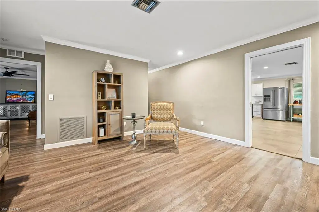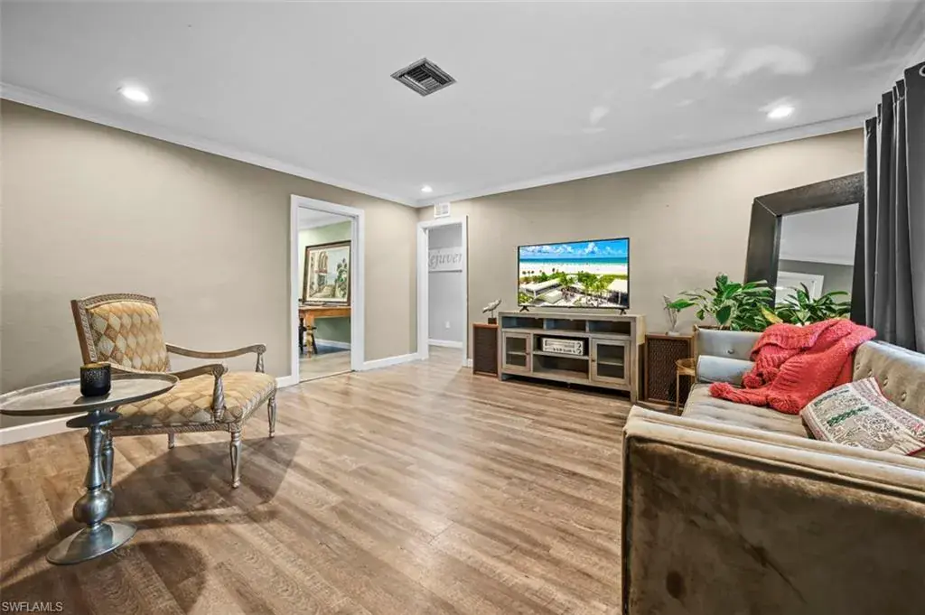 Incredible buyer opportunity to ASSUME THE SELLER’S EXISTING LOAN at an Interest Rate of approximately 3.75%, pending Lender Approval and Buyer Qualification. Take advantage of today’s market by assuming this low-rate loan and reducing your monthly payments! HUGE PRICE REDUCTION! Don’t Miss This Opportunity! Welcome to this beautifully renovated 3-bedroom + den, 2-bath home located in the highly sought-after community of Flamingo Estates. Set on a spacious lot with a circular driveway for easy parking, this home offers comfort, style, and functionality. Inside, you’ll find gorgeous flooring that flows seamlessly through the main living areas, complemented by fresh paint, elegant crown molding throughout, and recessed lighting that enhances the warm and inviting atmosphere. The living room provides the perfect space for relaxing or entertaining, while the updated kitchen is a chef’s dream—featuring stainless steel appliances and plenty of space for cooking and gathering. The open dining area further adds to the home’s effortless flow, ideal for hosting friends and family. Down the hall are two generously sized guest bedrooms and a beautifully updated bathroom with a separate soaking tub and walk-in shower. On the opposite side of the home, the spacious primary suite serves as a private retreat, boasting an oversized walk-in closet, a second bonus closet, and a luxurious en-suite renovated bathroom complete with a large soaking tub, dual vanities, dual shower heads shower, and a private water closet. Step outside to enjoy a large backyard perfect for entertaining, or unwind in the charming sunroom with white shiplap detail—an ideal spot to relax at the end of the day or that morning cup of coffee. Additional features include a newer A/C and timeless crown molding throughout. Located just 4 miles from world-class Naples beaches and moments from 5th Avenue, shopping, dining, and entertainment, this home combines prime location with incredible flexibility. With no rental restrictions and a voluntary HOA of only $50 per year, it’s perfect as a full-time residence, seasonal retreat, or income-producing property. Priced to sell—don’t miss your chance to own in one of Naples’ most desirable and well-established neighborhoods!
