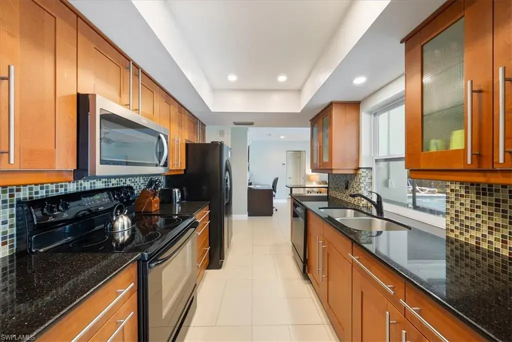 Stunning Remodeled Pool Home in Flamingo Estates – Fully Furnished!This beautifully updated 3-bedroom, 2-bath home with a spacious great room offers an open, split floor plan filled with natural light. The bright living and dining areas flow seamlessly to the expansive screened-in lanai and private pool—perfect for entertaining or relaxing in the Florida sunshine.The remodeled kitchen boasts wood shaker cabinetry, striking black granite countertops, a stylish glass tile backsplash, and a breakfast bar that opens to the great room, offering pool views and easy access to the outdoor living space.Retreat to the serene master suite with an en-suite bath, while two additional bedrooms provide plenty of room for family or guests. The oversized two-car garage offers ample storage.Notable upgrades include a new roof (2019), impact-resistant windows (2020), retractable patio storm doors, and smart home features such as a thermostat, irrigation system, garage opener, and front door keypad.