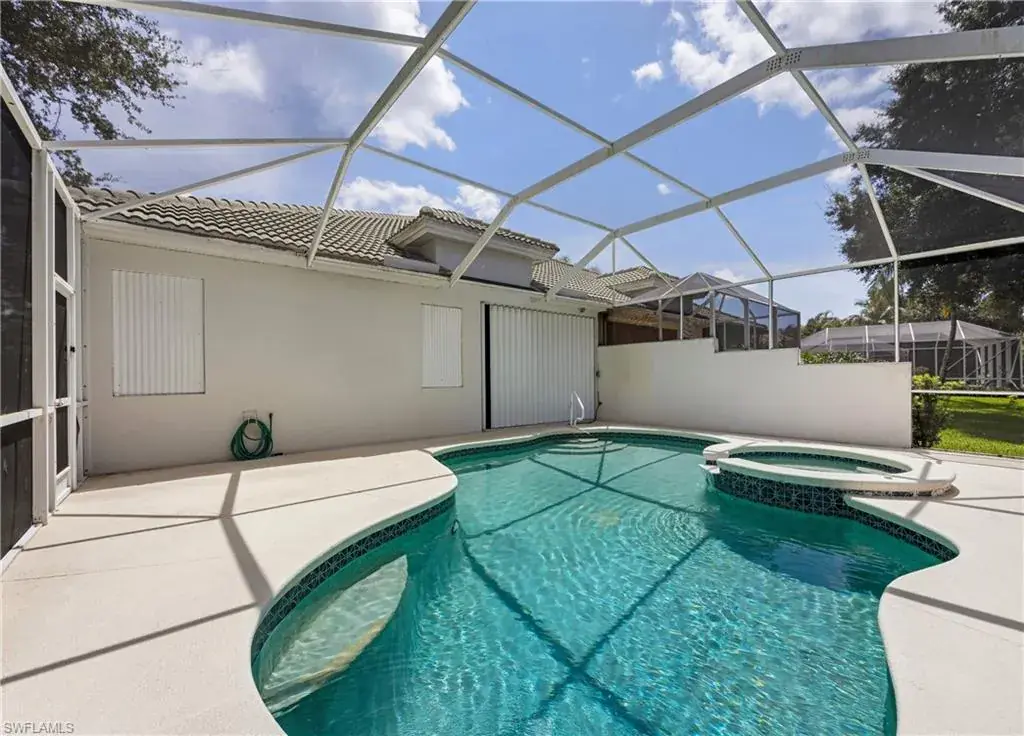 Beautifully maintained villa in Forest Glen Golf & Country Club! This 2 bedroom + Den, 2 bathroom home offers 1,879 sq. ft of bright, open living space with a spacious kitchen, flexible den, and seamless flow to the main living area. Enjoy your private screened lanai with pool & spa backing directly onto the Par 3 17th hole of Forest Glen Golf Course. Features include a double-car garage, abundant natural light, and resort-style amenities: championship golf, clubhouse dining, tennis, fitness, and walking paths. All Just minutes to Naples beaches, dining, and shopping!