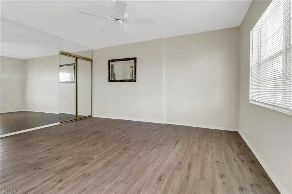 Electric hurricane shutters in lanai. The beach is a few minutes drive and SWFL airport thirty mins away. Crown molding, in unit laundry and extra storage. USOP National Pickleball Center 22 minutes.