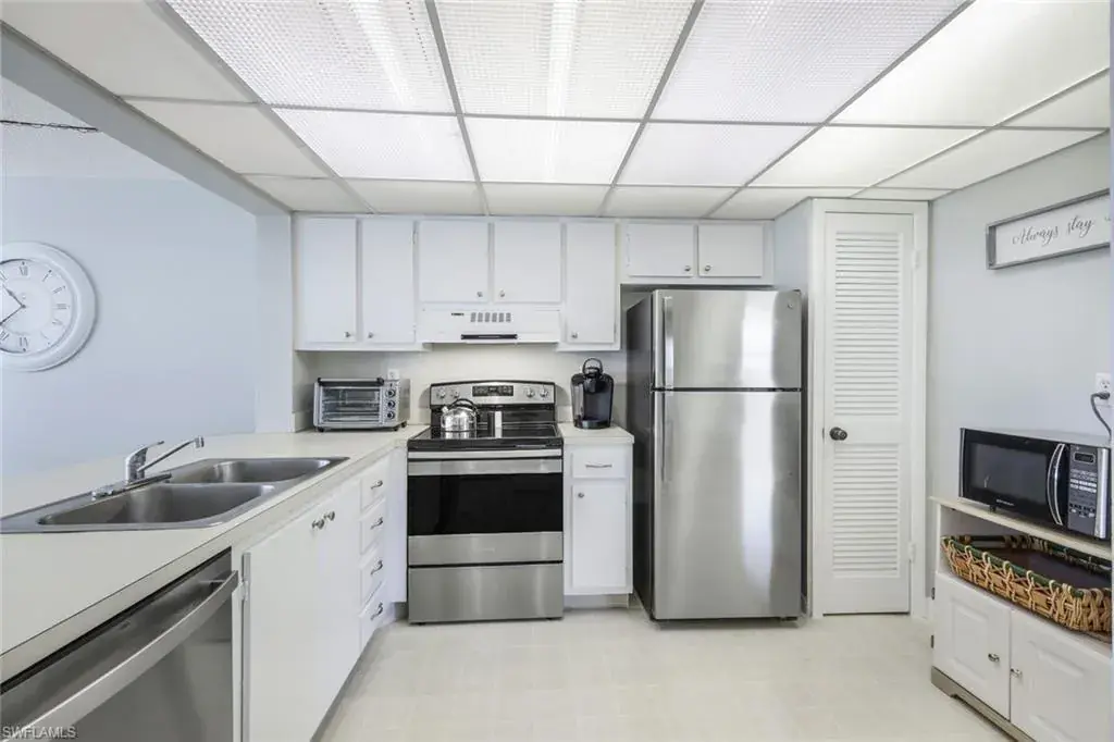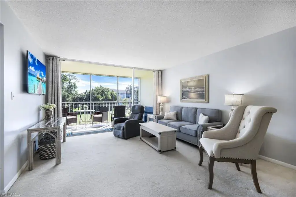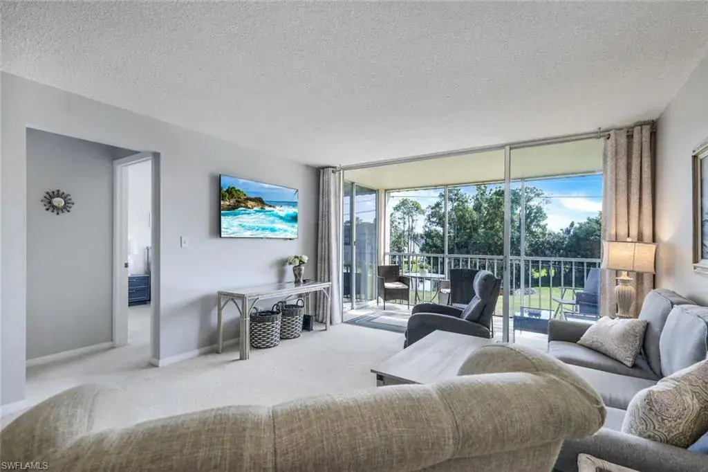 SIGNIFICANT PRICE IMPROVEMENT on this beautiful Condo in the 55+ Community of Forest Lakes! ELEVATOR BUILDING, This Third Floor condo features an open concept floor plan perfect for entertaining and allows plenty of natural light in. This condo has newer GE and Amana appliances in the kitchen, along with a pantry. This unit offers a spacious living room and dining area with sliding glass doors to the large screened lanai overlooking the golf course. The master bedroom has sliding glass doors leading to the lanai area and offering a picturesque golf course view. The master bathroom includes a laundry closet with a washer and dryer along with a walk in closet, vanity and sink area and separate water closet with a shower/tub combo. The guest bedroom is an en suite with its own private bathroom and shower. The Trash chute is on the same level as condo, elevator and steps available. One assigned parking space and ample guest parking. Forest Lakes has 3 pools, a club house and tennis courts, golf memberships are optional. This community is conveniently located close to shopping and Naples finest beaches, only three miles to the Seagate Beach Access. This is the most amazing location positioned between Waterside Shops, Costco, and Pine Ridge Road= Super convenient to everything inlcuding the YMCA.