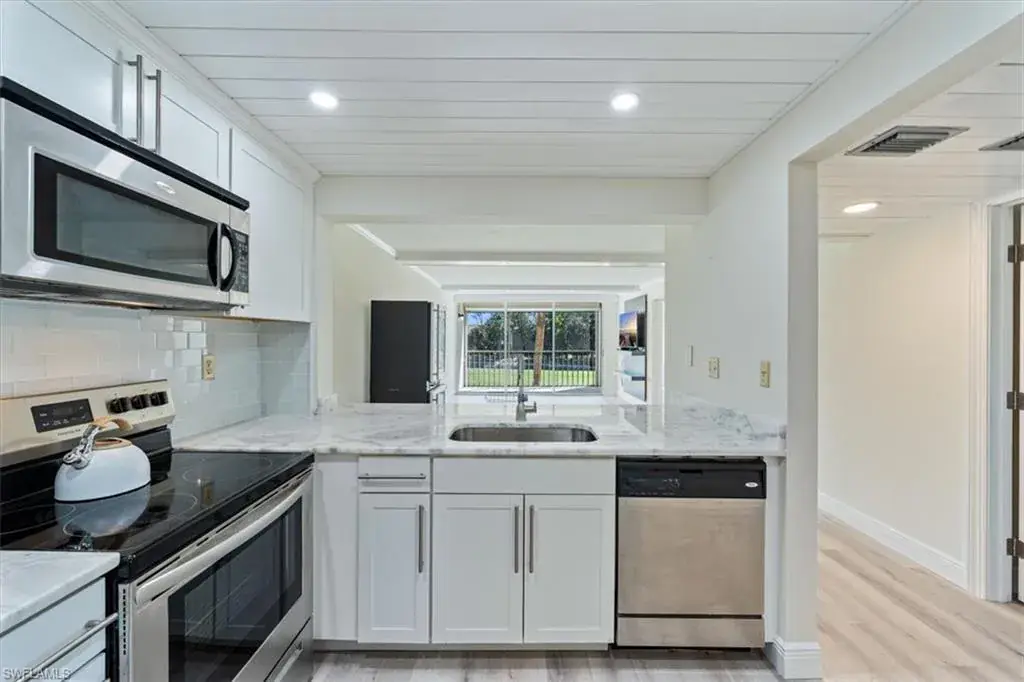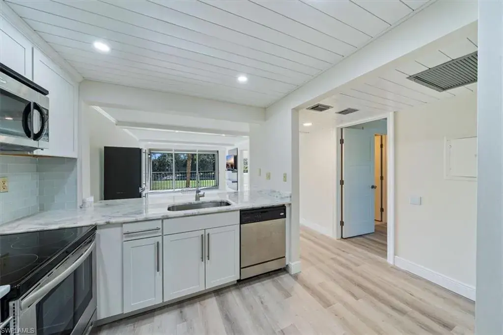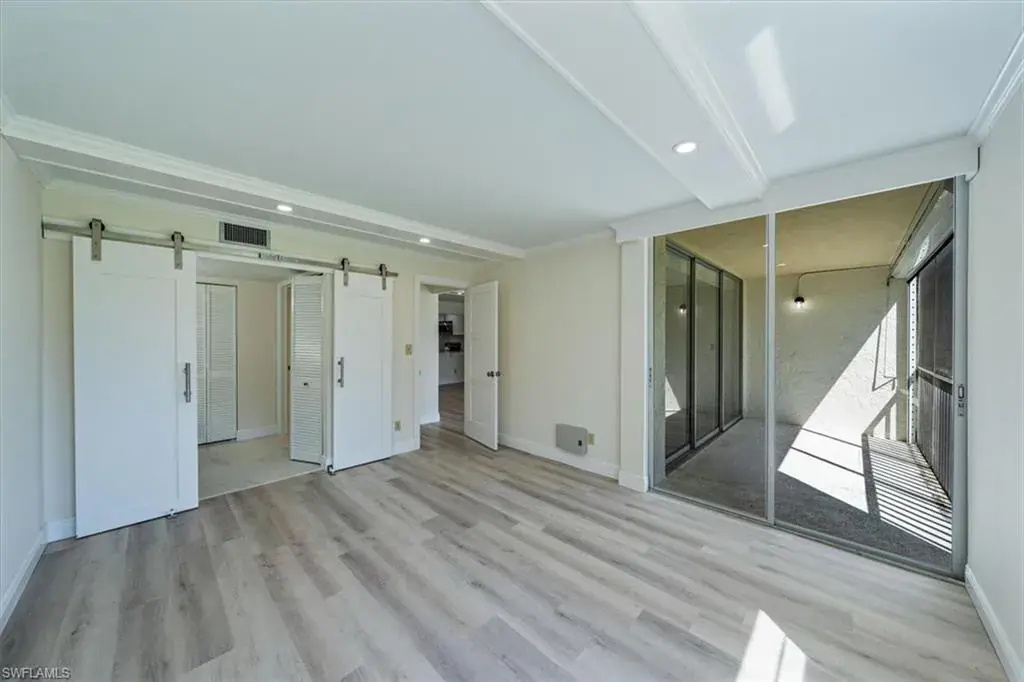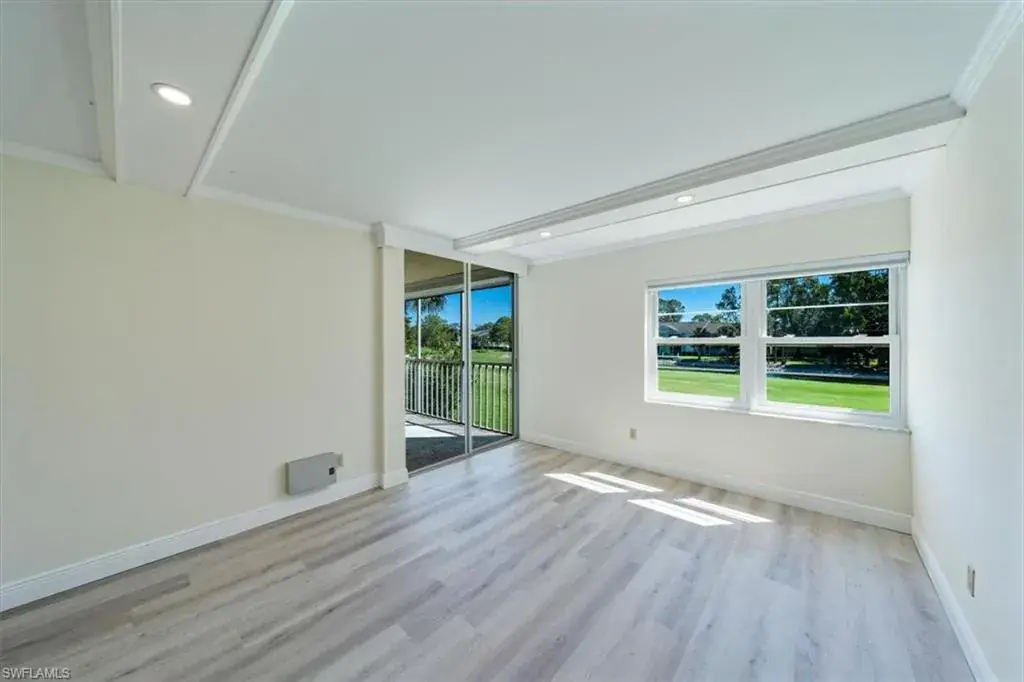 WOW! Fabulously updated 2nd floor unit with a perfect North Naples Location! So much to love about this second floor two bedroom two bath unit with elevator access. Stunning golf course views from the living room and screened lanai with electric hurricane screen and upgrades galore! Fresh paint, updated kitchen cabinets, new shiplap ceilings in kitchen and foyer, new beams in the living, dining room and master, new recessed lighting, new barn doors, new bathroom floors and vanities & new tile in the master shower, new flooring throughout, new baseboards, door casings and crown moldings, new countertops in the kitchen & baths, newer kitchen appliances, newer windows and window shades and more! Forest Lakes is an active 55+ community offering a variety of amenities on 17 beautiful acres including three heated community pools, clay tennis courts, shuffleboard, and a clubhouse with full kitchen, pool tables, and library. Optional social or golf memberships are available through Quail Run Golf Course. conveniently located with various shops and restaurants within less than a mile, and just minutes to the sandy white beaches, downtown Naples and I-75. Don’t let this one get away!