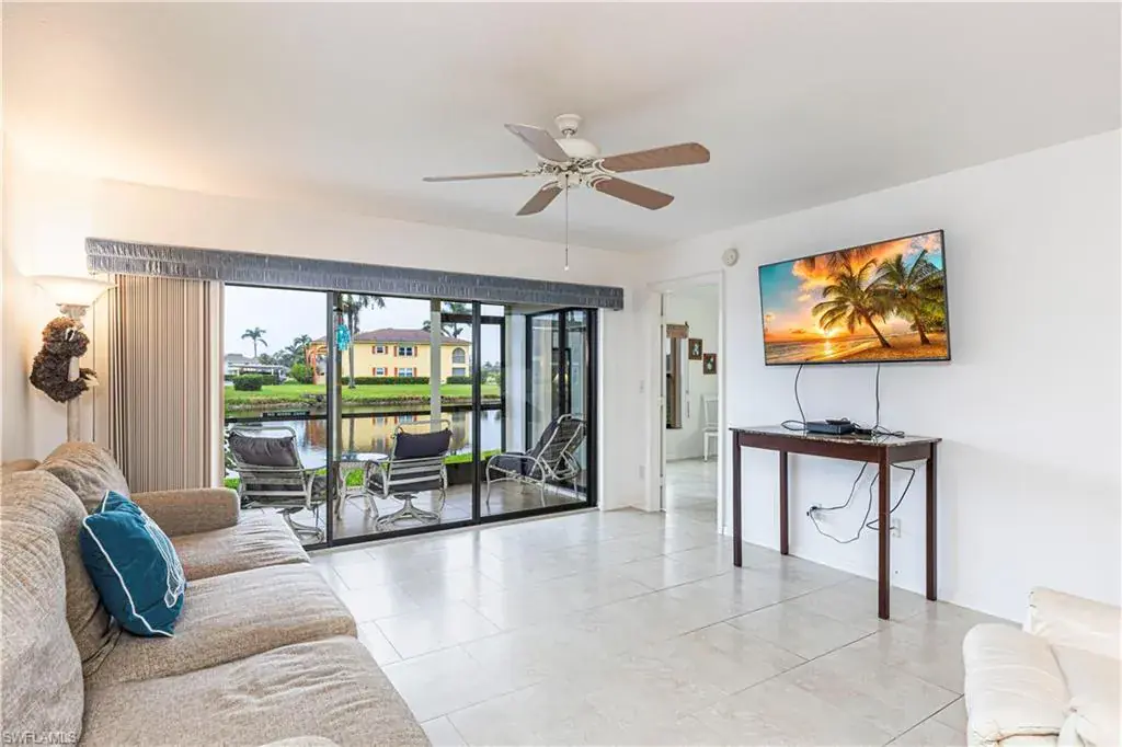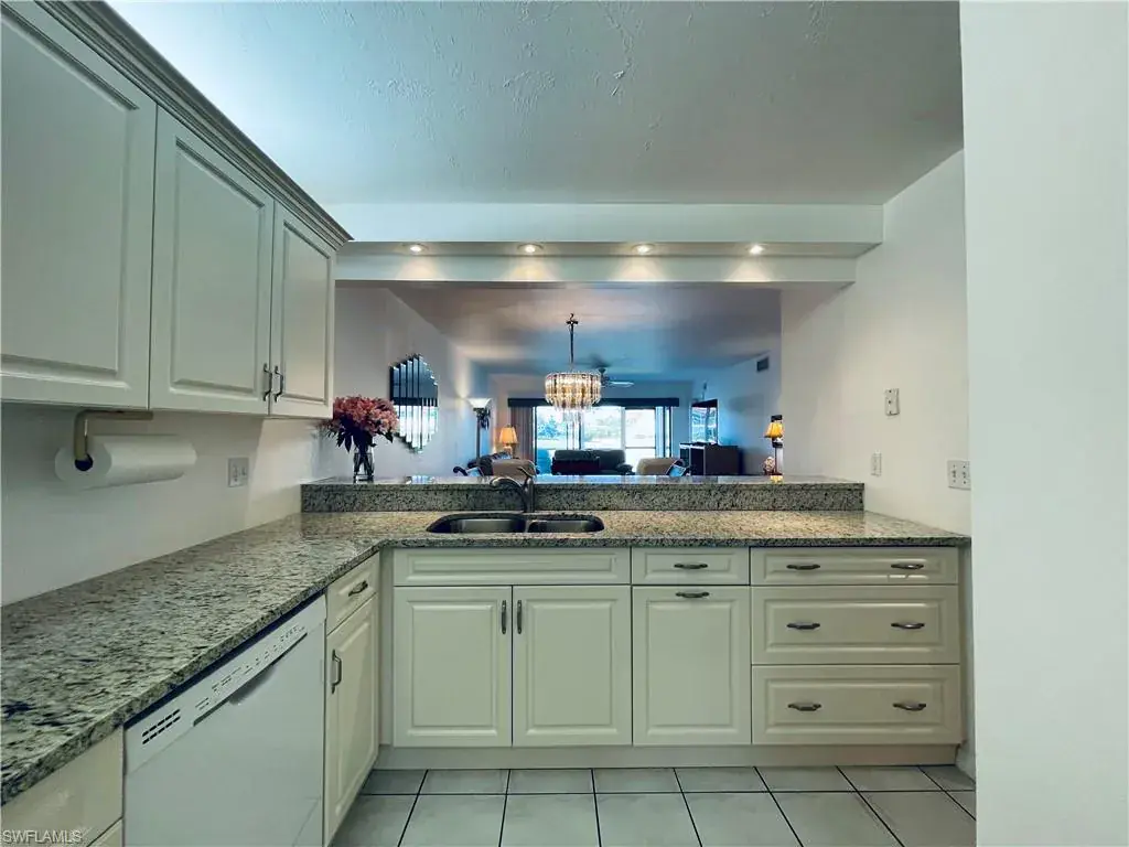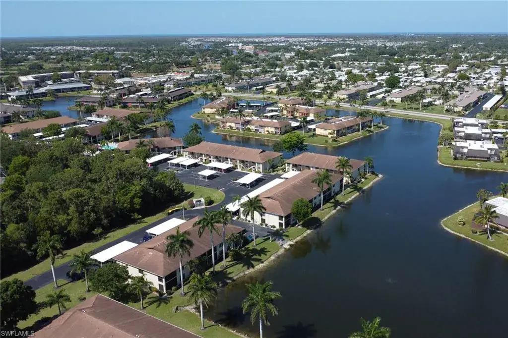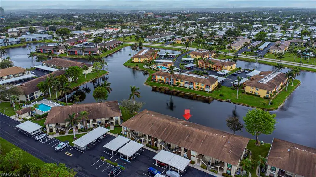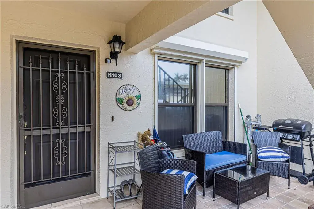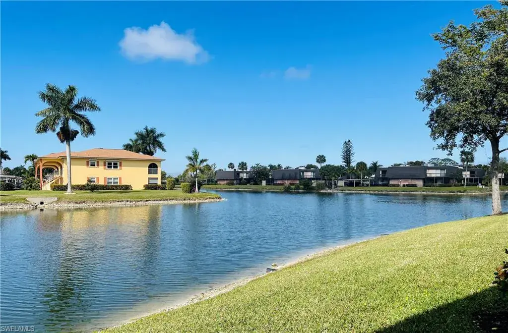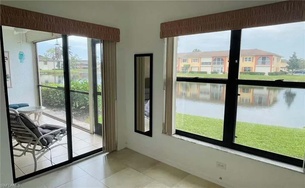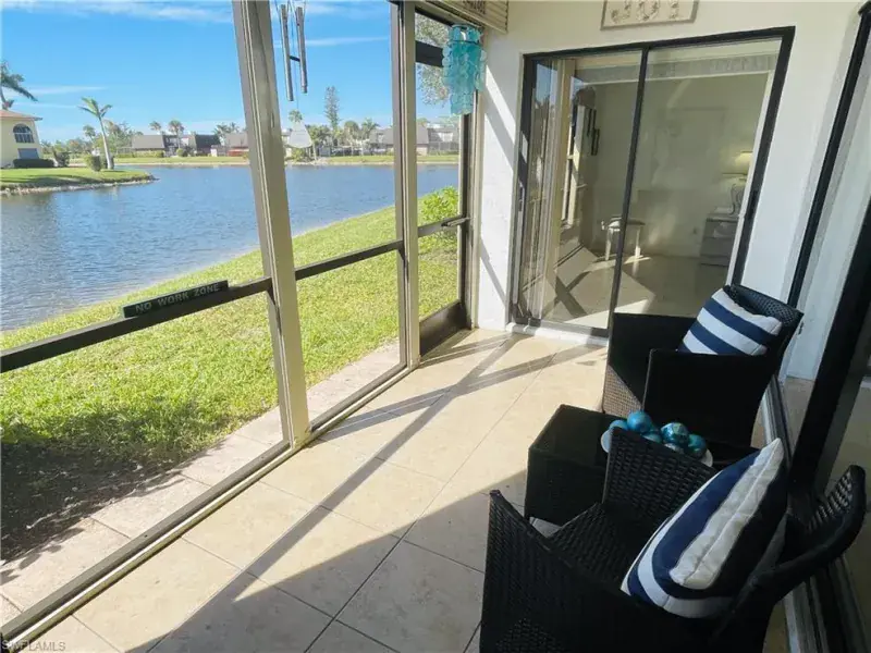 This desirable first floor condo has stunning lake views from the expansive lanai and almost every room. Offered as a turnkey property, it includes all essentials for a comfortable start in your new home. As you enter the condo, you are greeted by the patio with a spacious seating area. The kitchen and wet bar have been updated with granite countertops, white cabinetry and large pull-out drawers for pots/pans and small appliances. Also in the kitchen, you will find a sizable pantry and laundry closet. Off the kitchen is a large flex space, which is perfect for a breakfast nook, den or home office. The living and dining area offer an open concept giving you options for furniture placement. The spacious owner’s suite features direct lanai access and picturesque lake vistas. The en-suite bathroom is equipped with a step-in shower, dual sinks, and a large walk-in closet. Fountains V, set in a serene neighborhood, offers well-maintained grounds, two community pools, and a variety of social activities, all with reasonable association fees that cover cable and water. It is conveniently located, just a block from the Hibiscus Golf Course, less than a mile from US 41 and the Shoppes at Hammock Cove, and under five miles from downtown Naples, renowned for its pristine beaches, gourmet dining, and sophisticated shopping.