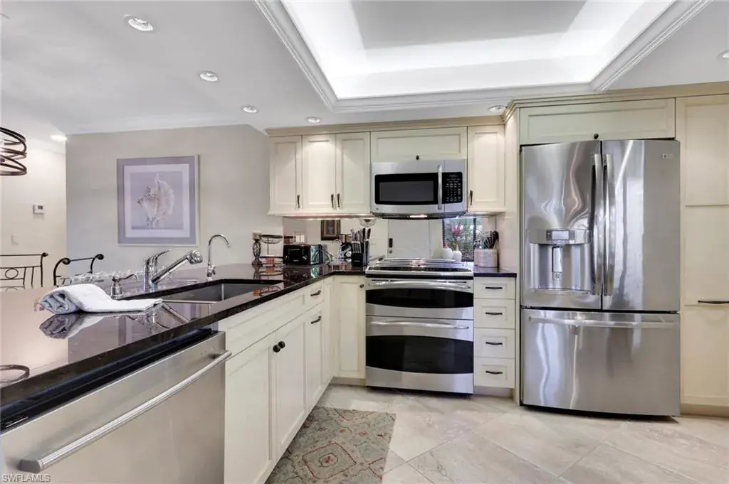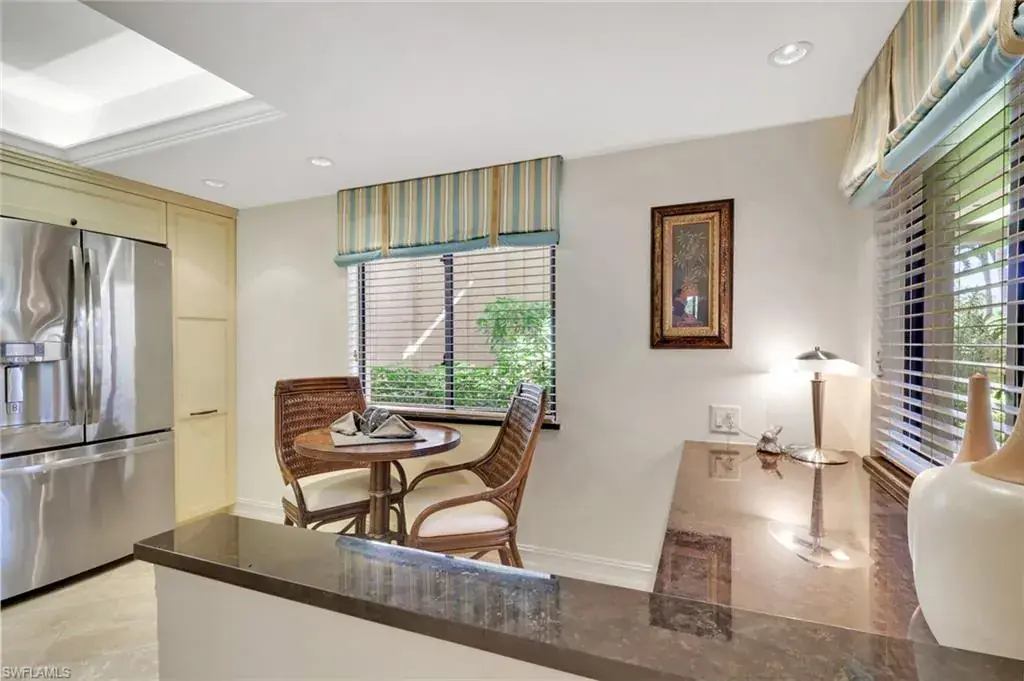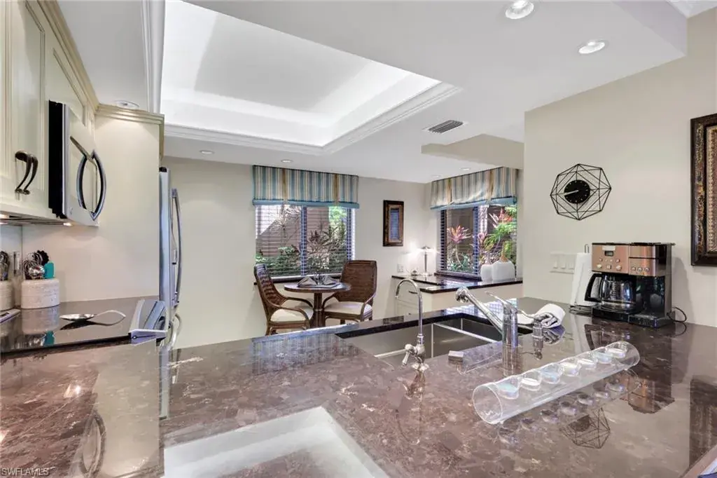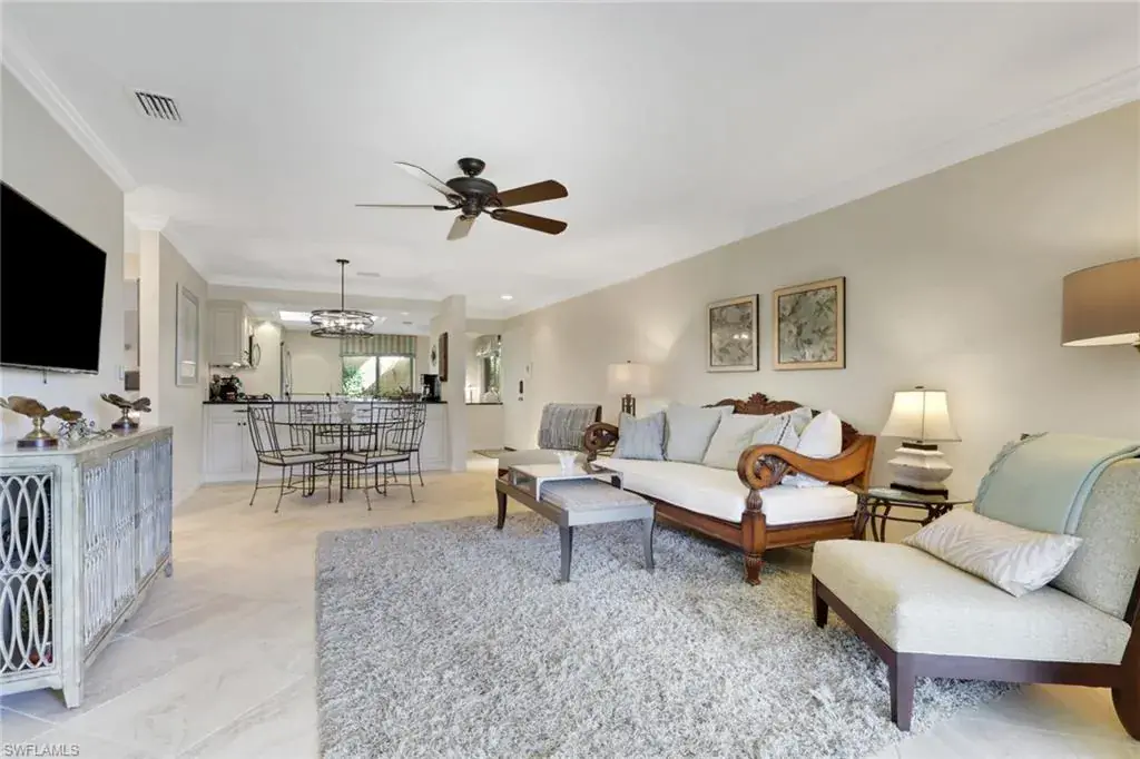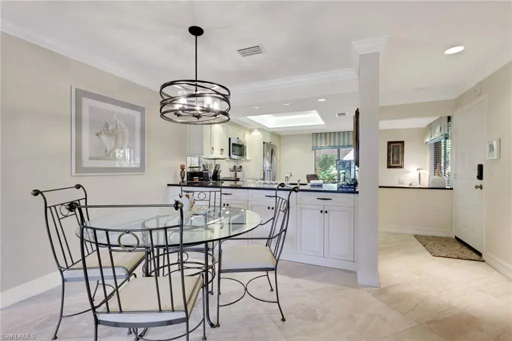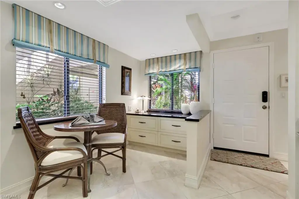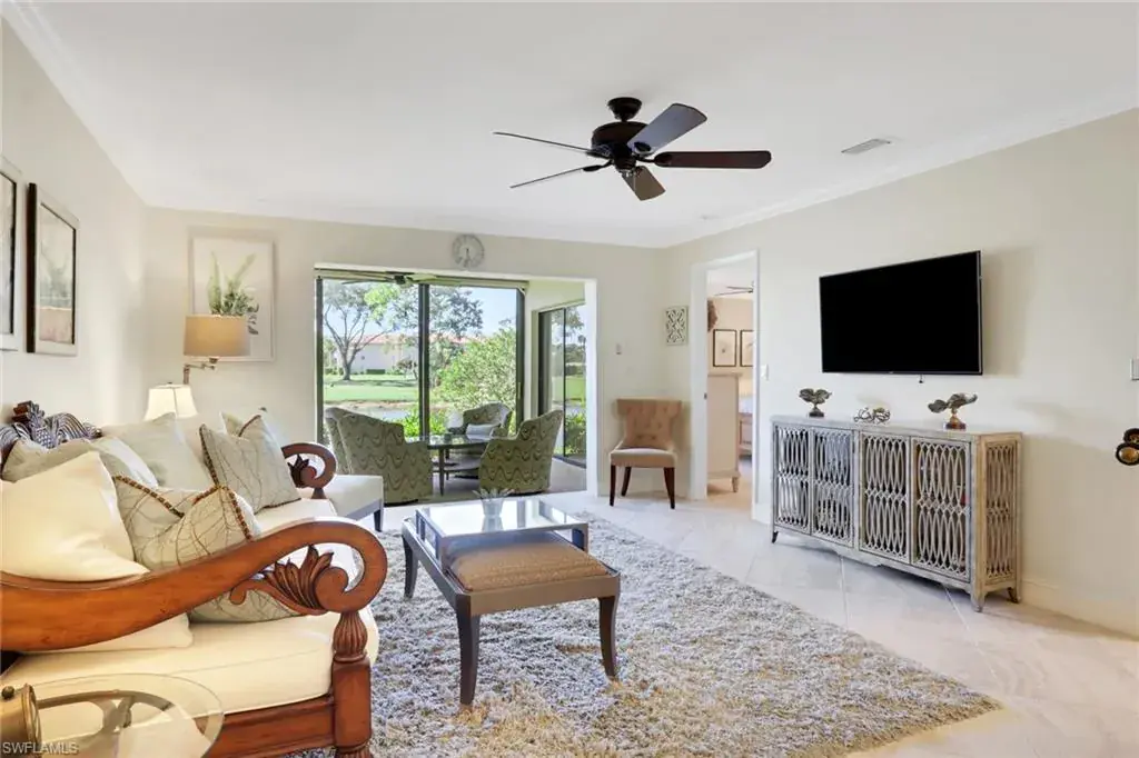 Step into this beautifully renovated, first-floor corner residence in Fox Hollow of Foxfire Golf & County Club and feel the pride of custom craftsmanship in every detail. Featuring 2 beds/ 2 baths and over 1,278 sq ft of living space. From the moment you enter, the warm glow of custom lighting highlights the elegant 18″ neutral tile floors, 5″ baseboards, and crown molding that flow throughout the home. The enclosed lanai—complete with electric blinds—extends your living space and invites you to relax and enjoy the peaceful setting. Inside, thoughtfully designed custom cabinetry offers abundant storage in the kitchen, dining area, and every closet, pairing perfectly with rich granite countertops and high-end fixtures. Both bathrooms showcase tasteful tile work and the same quality finishes that define the rest of the home. The kitchen is a cook’s delight, equipped with GE Profile appliances, surrounded by additional cabinetry that seamlessly blends beauty and function. Major systems have been responsibly updated as well, including the A/C (11/2022) and hot water tank (2019). This exceptional condo is offered beautifully turnkey furnished—truly a move-in-ready At Foxfire Golf & Country Club, every day feels like a resort getaway. Golf enthusiasts will love the championship 27-hole Arthur Hills-designed course, offering lush fairways and pristine greens. The grand clubhouse is the social heart of the community, featuring a state-of-the-art fitness facility, a full-service restaurant, and a lively bar & grill—perfect for unwinding after a day on the course. Endless Activities with 3 Har-Tru tennis courts & 3 bocce courts for friendly competition, Resort-style pool for sun-soaked relaxation, Vibrant social calendar filled with exciting events & gatherings. Brand-new Cart Barn Facility with a 5,000 sq. ft. second-floor Wellness Center, Revamped Grill Room & expansive outdoor dining with fire pits & casual seating, New stand-alone “Halfway House” bar—the perfect stop between rounds. Situated just 5 miles from Downtown Naples’ famous 5th Avenue, you’re minutes from world-class shopping, dining, and white-sand beaches. Plus, with easy access to I-75 and RSW Airport just 30 minutes away. Come experience the luxury, leisure, and lifestyle that make Foxfire truly exceptional!