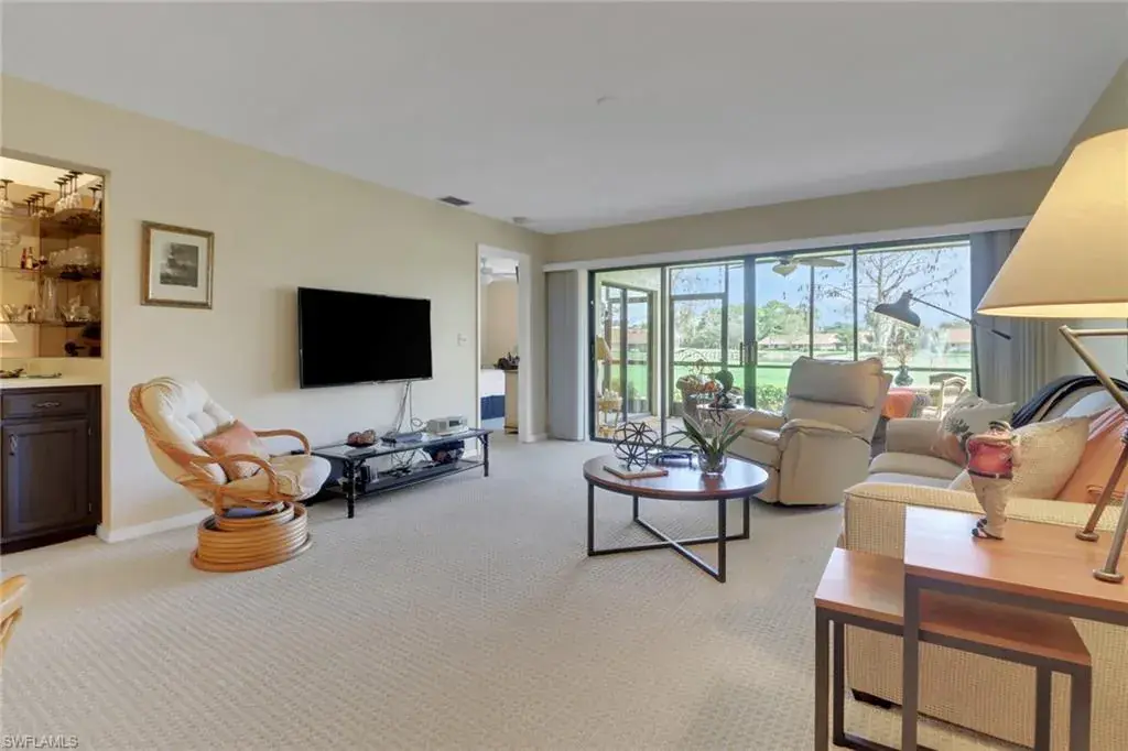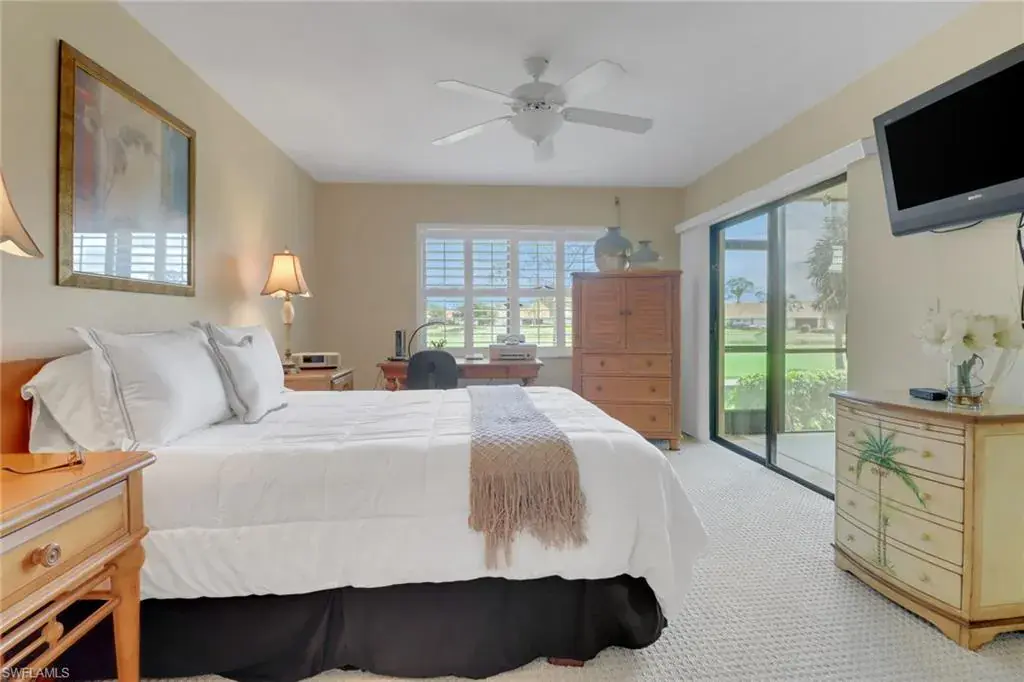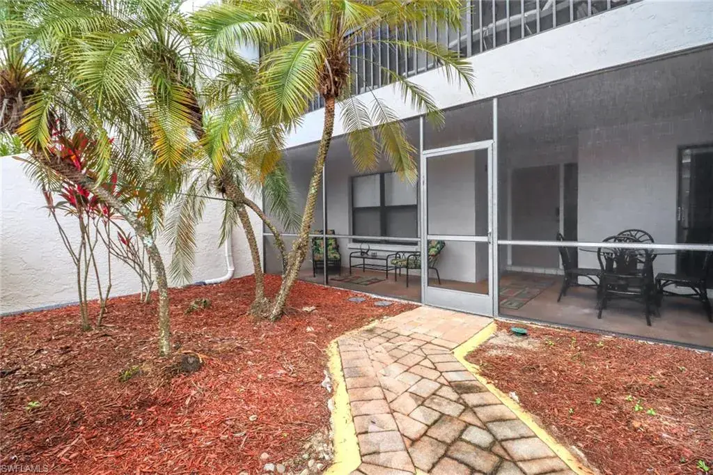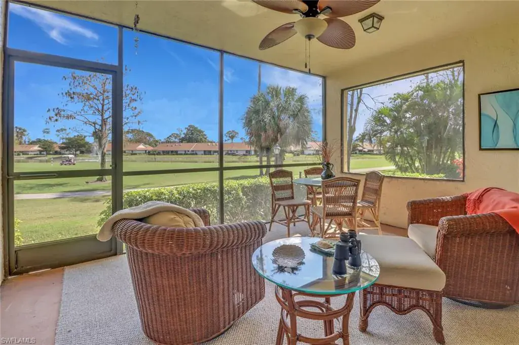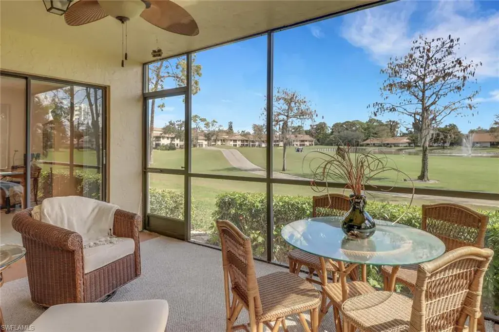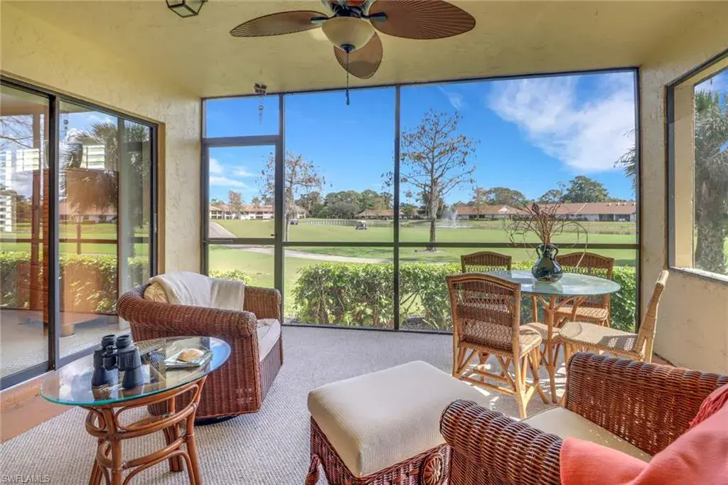 Welcome home to Golf Course Views & Resort-Style Living in Foxfire. This rarely available first-floor Veranda condo isn’t just a home—it’s an experience. From the moment you arrive, the brick paver walkway leads you through a private gated entrance, opening to your own charming patio and courtyard. Inside, the breathtaking golf course views immediately capture your attention, drawing your eyes past the open, airy living space to the lush green fairways beyond. The spacious screened lanai is the perfect setting for morning coffee or sunset cocktails, offering a front-row seat to the beauty of Foxfire. This immaculate, turnkey 2-bedroom, 2-bath condo boasts numerous updates and is ready for you to add your own personal touches. The open-concept living and dining area, complete with a wet bar, makes entertaining effortless. A split-bedroom layout ensures privacy for you and your guests, plantation shutters, and spacious closets add to the home’s comfort and elegance. Plus, a detached one-car garage provides extra storage for golf clubs, beach gear, and more. At Foxfire Golf & Country Club, every day feels like a resort getaway. Golf enthusiasts will love the championship 27-hole Arthur Hills-designed course, offering lush fairways and pristine greens. The clubhouse is the social heart of the community, featuring a state-of-the-art fitness facility, a full-service restaurant, and a lively bar & grill—perfect for unwinding after a day on the course. Endless Activities with 3 Har-Tru tennis courts & 3 bocce courts for friendly competition, pool for sun-soaked relaxation, Vibrant social calendar filled with exciting events & gatherings. Brand-new Cart Barn Facility with a 5,000 sq. ft. second-floor Wellness Center, Revamped Grill Room & expansive outdoor dining with fire pits & casual seating, New stand-alone “Halfway House” bar—the perfect stop between rounds. Situated just 5 miles from Downtown Naples’ famous 5th Avenue, your minutes from world-class shopping, dining, and white-sand beaches. Plus, with easy access to I-75 and RSW Airport just 30 minutes away. Come experience the luxury, leisure, and lifestyle that make Foxfire truly exceptional!