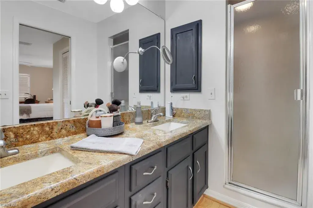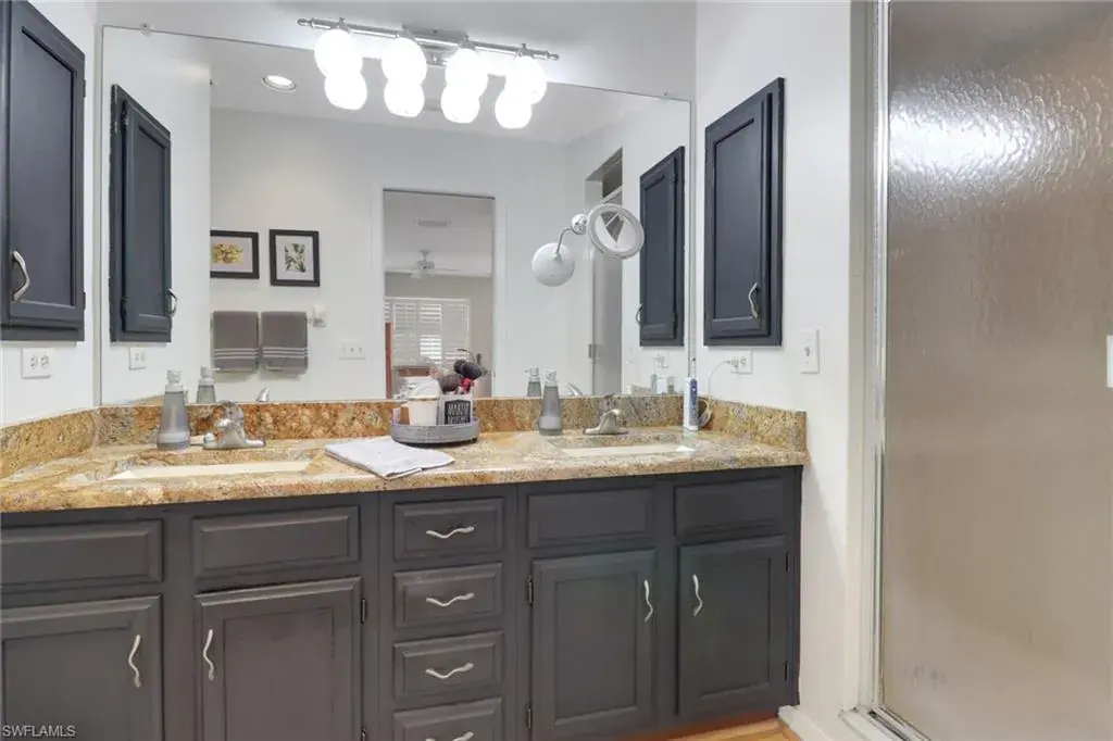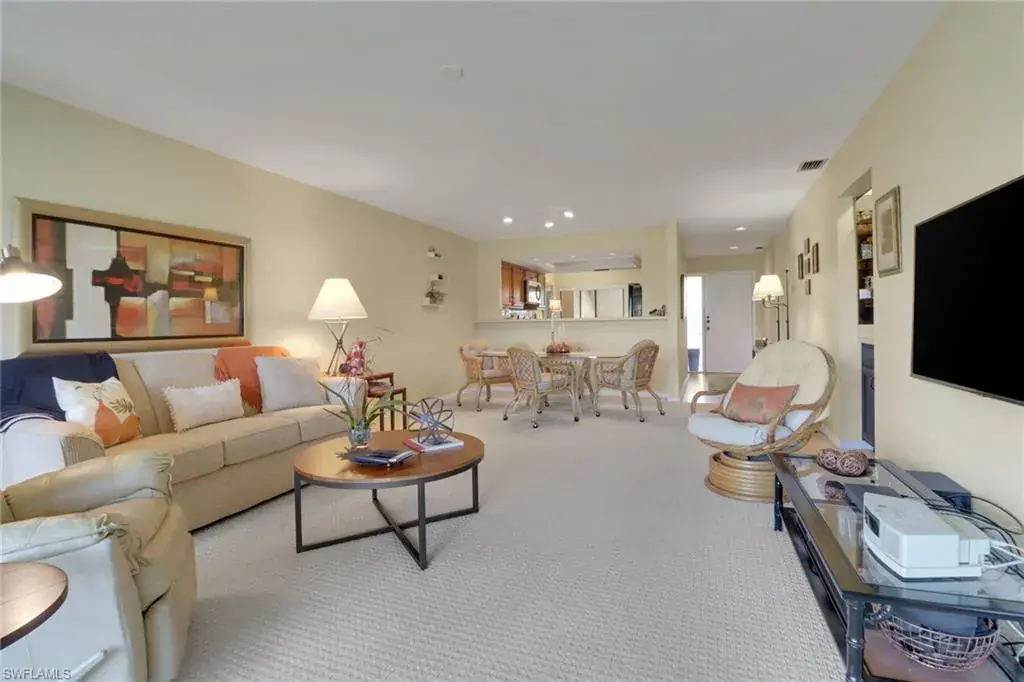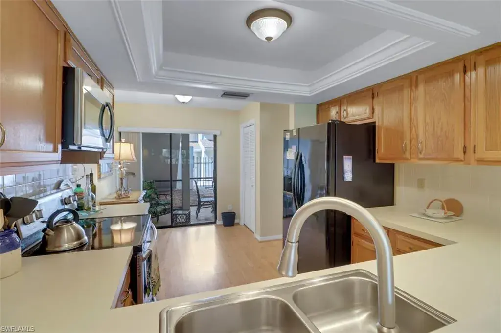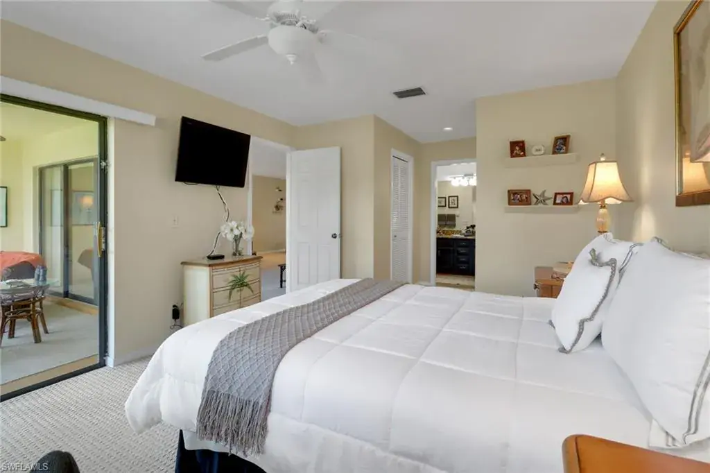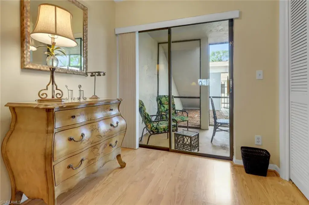 Welcome home to Golf Course Views & Resort-Style Living in Foxfire. This rarely available first-floor Veranda condo isn’t just a home—it’s an experience. From the moment you arrive, the brick paver walkway leads you through a private gated entrance, opening to your own charming patio and courtyard. Inside, the breathtaking golf course views immediately capture your attention, drawing your eyes past the open, airy living space to the lush green fairways beyond. The spacious screened lanai is the perfect setting for morning coffee or sunset cocktails, offering a front-row seat to the beauty of Foxfire. This immaculate, turnkey 2-bedroom, 2-bath condo boasts numerous updates and is ready for you to add your own personal touches. The open-concept living and dining area, complete with a wet bar, makes entertaining effortless. A split-bedroom layout ensures privacy for you and your guests, plantation shutters, and spacious closets add to the home’s comfort and elegance. Plus, a detached one-car garage provides extra storage for golf clubs, beach gear, and more. At Foxfire Golf & Country Club, every day feels like a resort getaway. Golf enthusiasts will love the championship 27-hole Arthur Hills-designed course, offering lush fairways and pristine greens. The clubhouse is the social heart of the community, featuring a state-of-the-art fitness facility, a full-service restaurant, and a lively bar & grill—perfect for unwinding after a day on the course. Endless Activities with 3 Har-Tru tennis courts & 3 bocce courts for friendly competition, pool for sun-soaked relaxation, Vibrant social calendar filled with exciting events & gatherings. Brand-new Cart Barn Facility with a 5,000 sq. ft. second-floor Wellness Center, Revamped Grill Room & expansive outdoor dining with fire pits & casual seating, New stand-alone “Halfway House” bar—the perfect stop between rounds. Situated just 5 miles from Downtown Naples’ famous 5th Avenue, your minutes from world-class shopping, dining, and white-sand beaches. Plus, with easy access to I-75 and RSW Airport just 30 minutes away. Come experience the luxury, leisure, and lifestyle that make Foxfire truly exceptional!