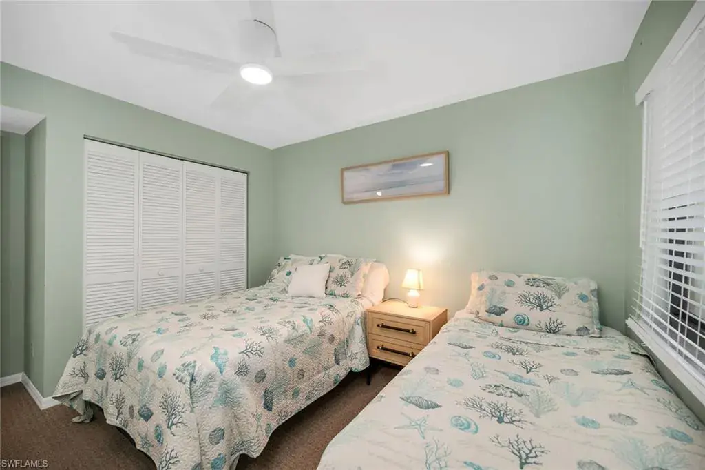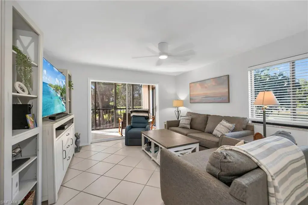 This beautifully updated corner residence enjoys sunny southern exposure and tranquil garden and lake views within the desirable Foxwood enclave of Foxfire. With over $50,000 in upgrades since 2023, this stylish retreat blends modern comfort and convenience in a premier golf community just minutes from downtown Naples. Recent improvements include a new water heater, an updated electrical panel, and extensive interior enhancements throughout. The well-designed kitchen features resurfaced white modern cabinetry, new granite countertops and sink, recessed lighting, and 2023 stainless steel appliances including a range, microwave, dishwasher, and refrigerator/freezer. A breakfast bar opens to the adjacent dining area, creating a comfortable flow for everyday living and entertaining. The spacious living room offers diagonal tile flooring and a modern ceiling fan, providing an inviting setting for relaxation. The former lanai has been enclosed to create a cheerful sunroom, an ideal space to unwind rain or shine, complete with a ceiling fan and panoramic garden and lake views that bring the beauty of the outdoors in. The owner’s suite is a private retreat featuring a remodeled en-suite bath with a new granite vanity countertop, comfort-height toilet, walk-in shower tiled floor-to-ceiling with a glass enclosure, and a new shower door. The guest bedroom is conveniently near the updated full bath, which features a new granite vanity countertop, comfort-height toilet and a tub-shower combo with floor-to-ceiling tile. Additional highlights include an extra storage closet and a deeded covered parking space, one of only 12 covered spots in the 30-unit building. Just a short distance to the community pool and hot tub, this residence provides easy access to Foxfire’s extensive amenities. Golf enthusiasts will love the championship 27-hole Arthur Hills–designed course, while the newly updated 5,000-square-foot wellness center, remodeled grill room, and expanded outdoor dining area with fire pits and casual seating elevate the lifestyle experience. The community also offers three Har-Tru tennis courts, three bocce courts, and a vibrant social calendar filled with events and gatherings, along with a new standalone Halfway House bar and grill, ideal for a relaxing stop between rounds. Ideally just five miles from downtown Naples 5th Avenue, residents enjoy easy access to world-class shopping, dining, and the Gulf’s white-sand beaches. With Interstate 75 nearby and RSW Airport just 30 minutes away, this updated corner condominium offers a balance of active resort living and everyday comfort in one of Naples welcoming golf communities.