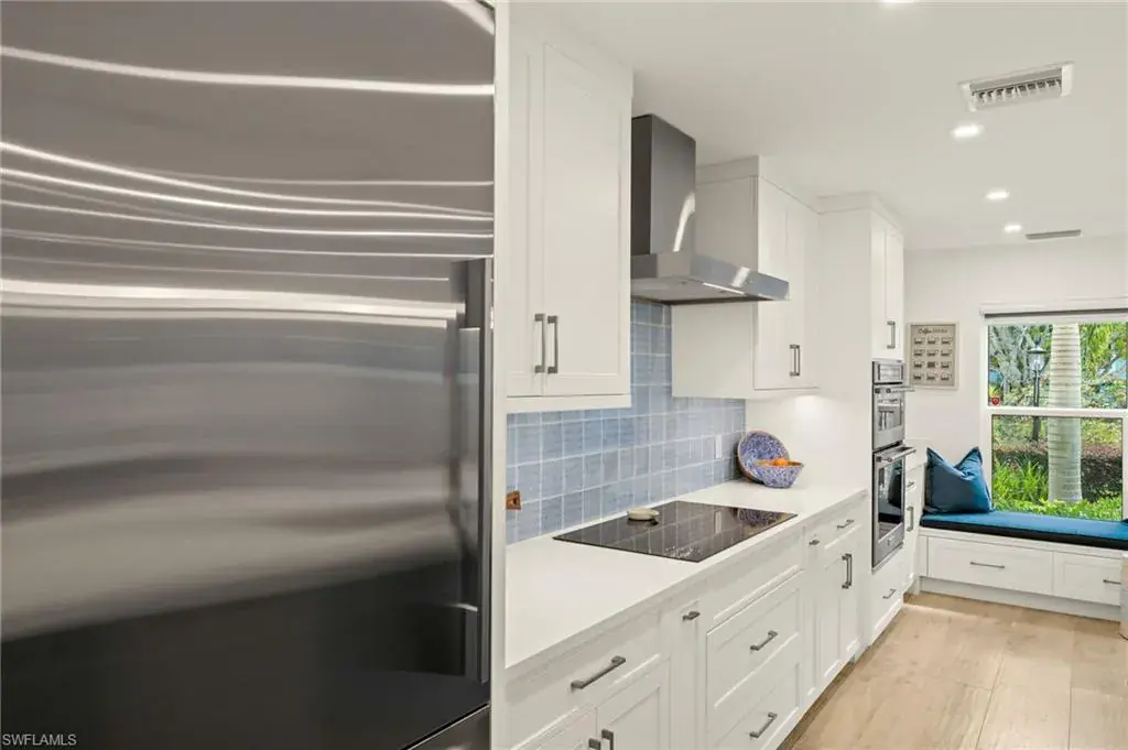 Welcome to your fabulous townhouse retreat nestled in the heart of Old Naples! This exquisite home invites you to experience a sense of tranquility from the moment you step through the doors. With an open floor plan that exudes warmth and charm, this townhouse is designed for both relaxation and entertaining. The dream chef’s kitchen is a true highlight, featuring elegant Quantum White Quartz countertops that extend to the baths and bar area. Equipped with top-of-the-line Fisher & Paykel appliances, including a refrigerator, dishwasher, induction cooktop, and a separate faucet for filtered water, you’ll have everything you need to create culinary masterpieces. The first level showcases a stunning hardwood look tile, beautifully complemented by French oak flooring on the stairs and second story. This end unit offers the advantage of extra windows, bathing the space in natural light and providing refreshing airflow throughout. With its prime location, you’re just a stroll away from the vibrant 5th Street, Third Street shopping and dining district, the breathtaking Gulf, City docks, Cambier Park, and Crayton Cove. The home’s modern amenities include impact glass windows and sliders, ensuring peace of mind and energy efficiency. In addition to its charming interiors, recent updates enhance the home’s appeal: a new roof was installed in 2019, parking pavers were added in 2020, and the building’s exterior was freshly painted in October 2022. For your convenience, the property includes carport parking with storage, and an additional vehicle can be accommodated directly behind the carport in tandem. This townhouse is more than just a place to live—it’s a lifestyle choice, offering comfort, convenience, and a touch of luxury in an unbeatable location. Don’t miss your chance to own this beautiful, calm retreat!