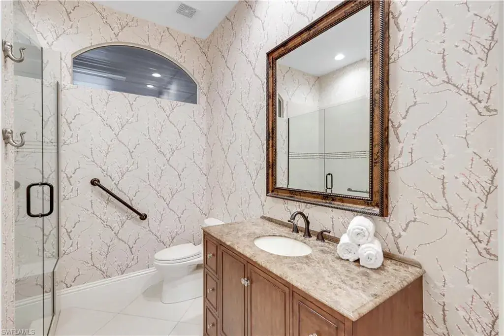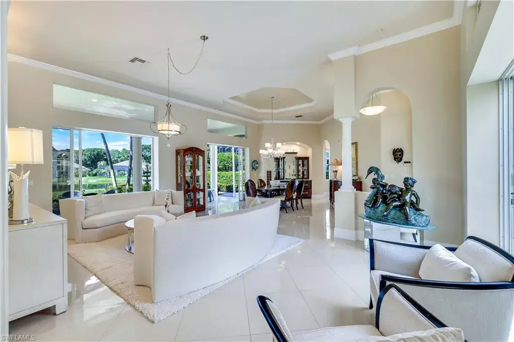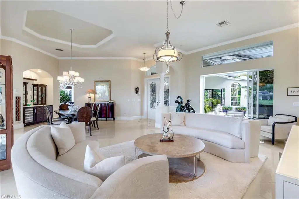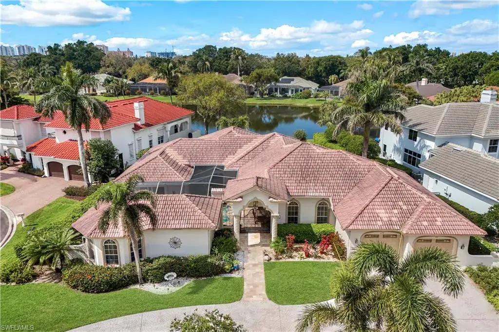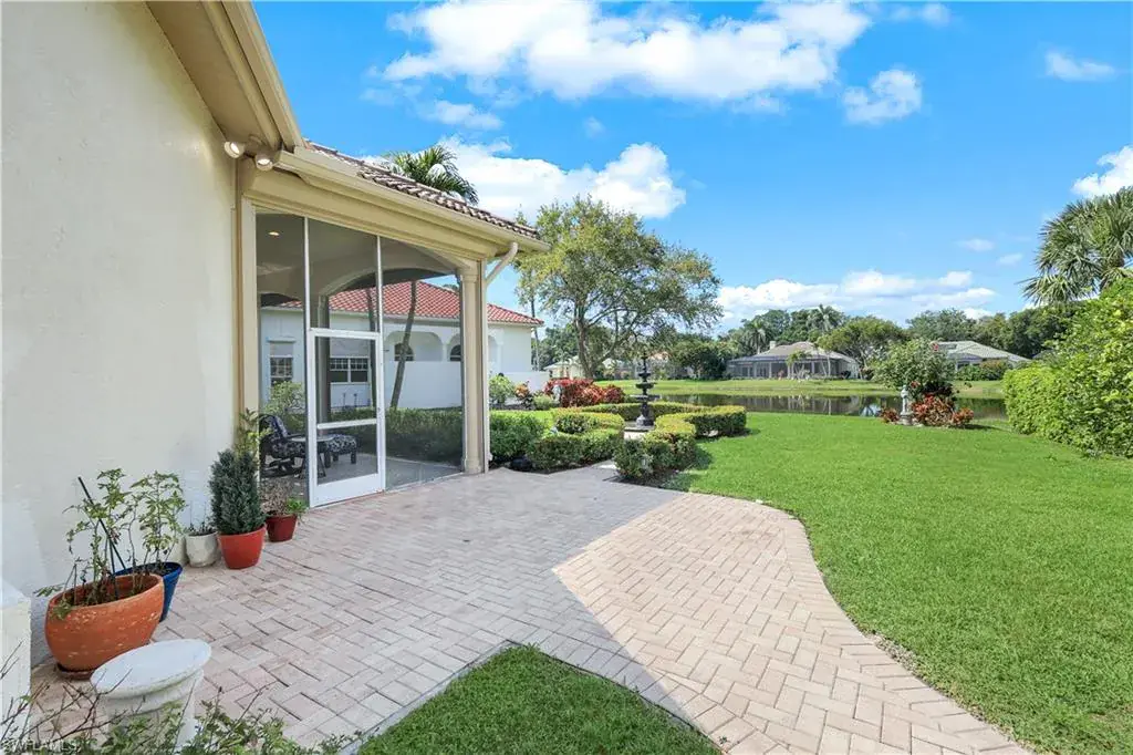 LOWEST PRICED 4 BEDROOM HOME BY FAR IN PELICAN MARSH! COURTYARD POOL HOME WITH CABANA OFFERS 4 BEDROOMS AND 3 BATHS ON A THIRD ACRE PREMIUM LAKEFRONT LOT! STUNNING PRICE REDUCTION MAKES THIS THE PERFECT TIME TO TAKE ADVANTAGE OF THIS RARE OPPORTUNITY TO OWN THIS THIRD ACRE PREMIUM WATERFRONT LOT WITH WESTERN SUNSET VIEWS. Regal metal gates welcome you to this tropical oasis, as you step onto the travertine pavers leading to the courtyard. This oversized wedge lot has cul-de-sac to the front and beautiful lake to the back. Stunning beauty, now met with a stunning price reduction, this Gables grand estate is simply irresistible and ready for you to call home, splendid home! Idyllically positioned on almost a third of an acre, this very special property is a western exposure, sunset lake view, on quiet exclusive private cul-de-sac; a 4 bedroom courtyard pool home includes cabana, in the highly coveted, rarely available estates of The Gables in Pelican Marsh. A private enclave of only 52 homes, The Gables boasts oversized estate lots and the distinction of having no HOA fees (only the Master Fee to the Pelican Marsh Foundation). Two foot luxury high gloss tile on the diagonal greets you as you enter, and continues throughout the home, even across the back porch, as the stunning reflection captures the beauty of the setting. Brick paver circular driveway welcomes you, and brick paver walkway continues around to the back yard, fountain and lake. Beautiful Travertine pool deck in the entry and courtyard. Clerestory windows in living room, wood ceiling panels in family room, and bar in dining room has U line cooler drawers and wine cooler. Crown molding, upper level, under cabinet and niche lighting. Volume ceilings bring a majestic feeling to the residence, while Plantation shutters bring charm and function. Pets welcome, no approval needed. A rare opportunity in The Gables, where the last sale was over two years ago, and is conveniently located near the main gate house with grand fountain on 41. Having 3 gated entrances into Pelican Marsh offers choices and flexibility, for easy access to beaches, fine dining, world class arts, shopping and culture. Plus a 4th private gated entrance right into the Galleria Shoppes at Vanderbilt is a bonus. Pelican Marsh offers a community center with restaurant, staffed fitness and personal trainers, playground, massage facilities, meeting rooms, bocce, tennis and pickleball courts. Miles of scenic cycling & walking trails and an exceptional golf club, with membership options. Walk to Mercato, ride bike to Beach, this is the coveted, highly desired Neapolitan lifestyle that Pelican Marsh provides, with No HOA and reasonable amenity fee to Foundation, don’t miss out.