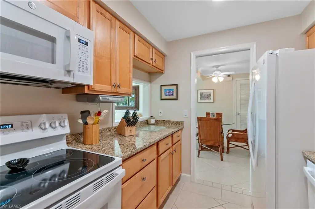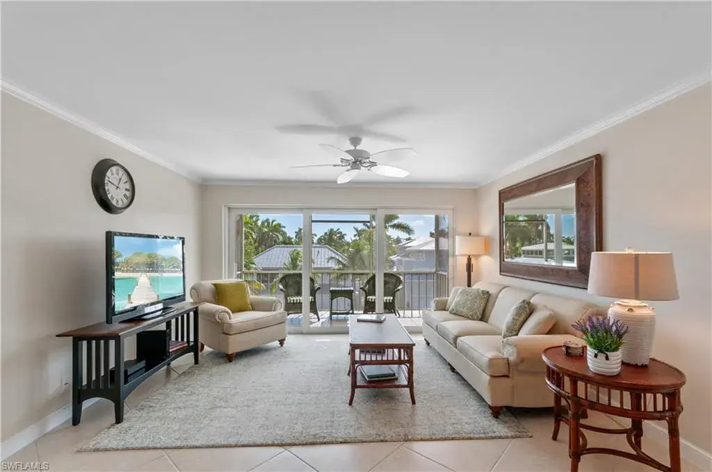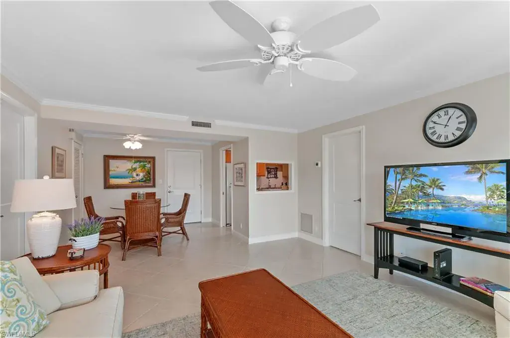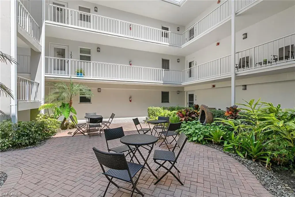 Highly sought after Gardenia Court! Beautifully maintained and upgraded 2 bedroom, 2 bath unit WITH SOUTH FACING LANAI! This elevated well kept building has never had water intrusion from any storms, and additionally has passed both structure and financial state inspections w/no issues. Inside, there are impact windows and sliders, smooth ceilings, upgraded tile flooring throughout and both bathrooms have been recently upgraded! Modern kitchen features 2 year old appliances and ample cabinet space! New hot water heater, HVAC 6 years old. Listing agent lives in the building, can show you where washer/dryer can be installed easily! Easy move in as the condo is being sold turnkey furnished. Be quick to check this one out!
