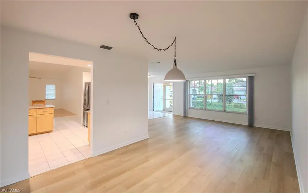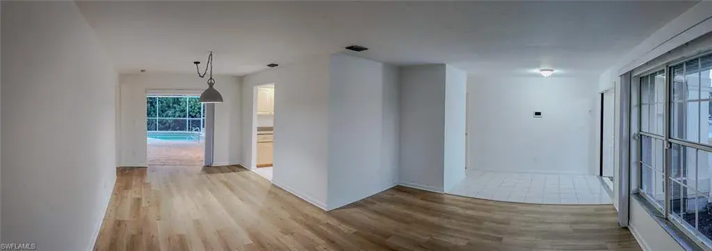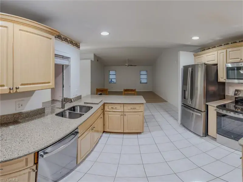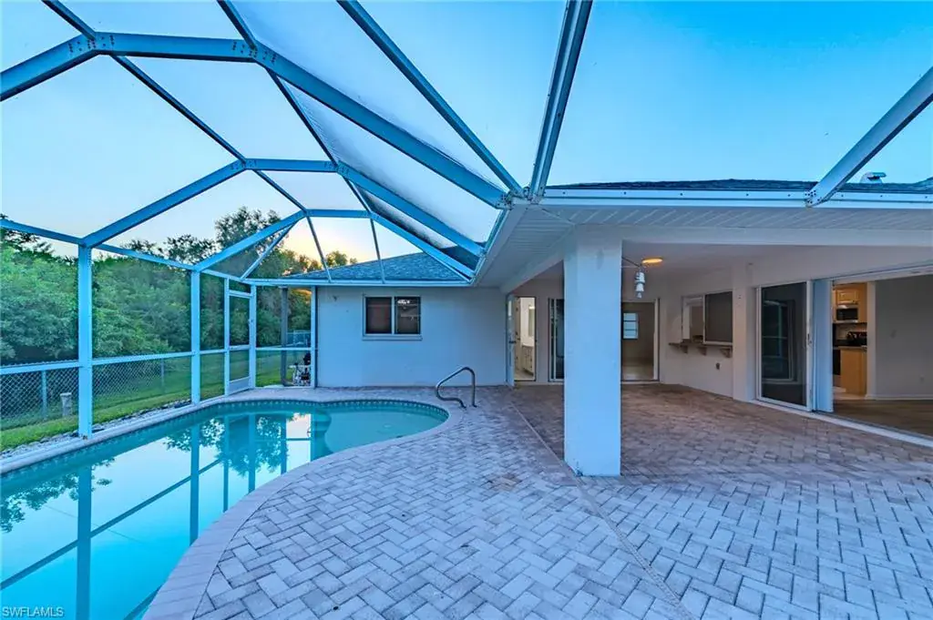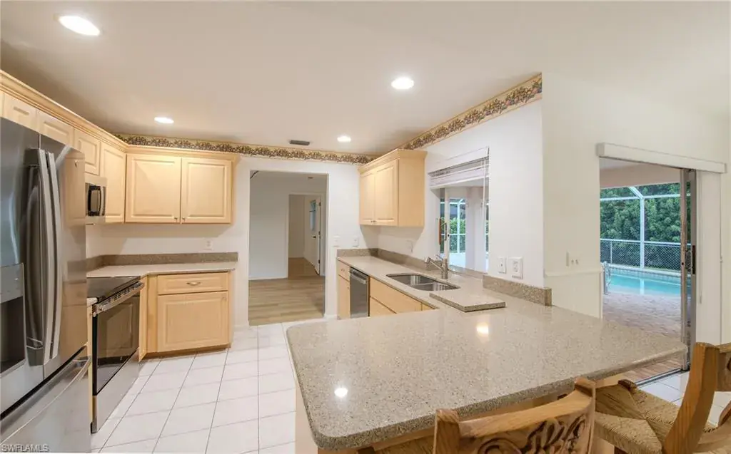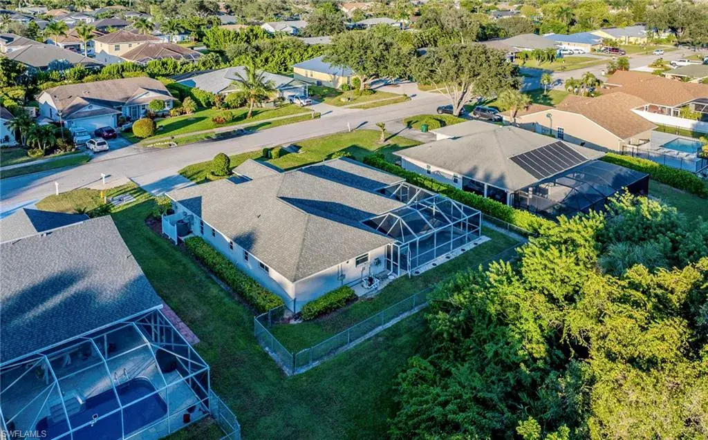 Located in the Gates Mills section of Willoughby Acres, this desirable North Naples home offers 1,884 sq ft of living space on a ¼-acre lot with no HOA fees. The 3-bedroom, 2-bath layout features a bright, open floor plan that connects the kitchen, dining, and living areas to the screened lanai and 10 × 25 ft pool—perfect for relaxing or entertaining. The primary suite includes an en-suite bath and a large window overlooking the pool, while two guest bedrooms are privately located on the opposite side of the home. Enjoy all-new appliances, a two-car (441 sq ft) garage, and well-maintained landscaping with a brick pool deck. The property backs to a preserve, offering quiet privacy and no rear neighbors. Convenient North Naples location close to top-rated schools, beaches, parks, shopping, and dining—offering the best of Florida living without monthly fees. Need a quick closing, with this home you can move right in.