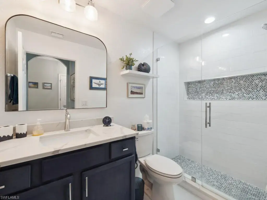 ONLY COMPLETELY UPDATED Bellini model condo with IMMEDIATE GOLF MEMBERSHIP at TPC TREVISO BAY! This first-floor, 2-bedroom, 2-bathroom condo has an airy, open layout offering 1,232 SF of beautifully designed and decorated indoor living space. A private screened lanai overlooks professional landscaping and a wooded preserve. The condo has a remodeled kitchen with quartz countertops, stylish backsplash, expanded built-in pantry and a new bar/coffee space. Both bathrooms are newly tiled with frameless glass doors and quartz countertops.  Built in 2017, this condo is deeded with a TPC Golf Membership and boasts numerous custom upgrades. This is a rare opportunity to own a stunning unit in Treviso Bay, a 24-hour, guarded, and gated community located just 5 miles from the world-class dining, entertainment, shopping, and beaches of Downtown Naples and Marco Island.