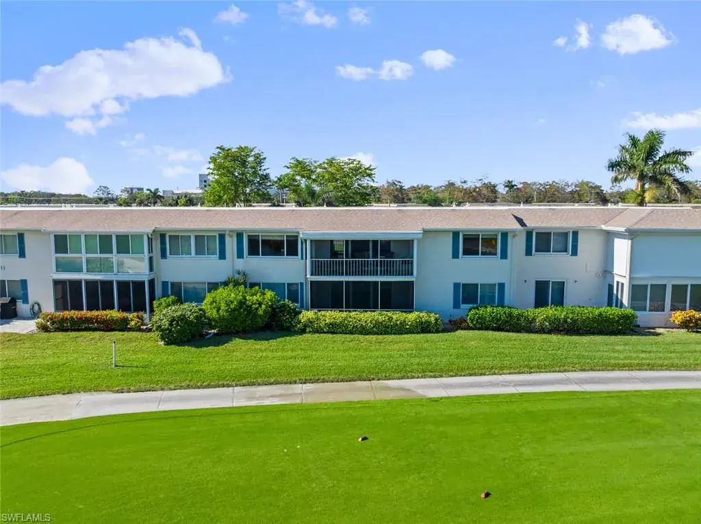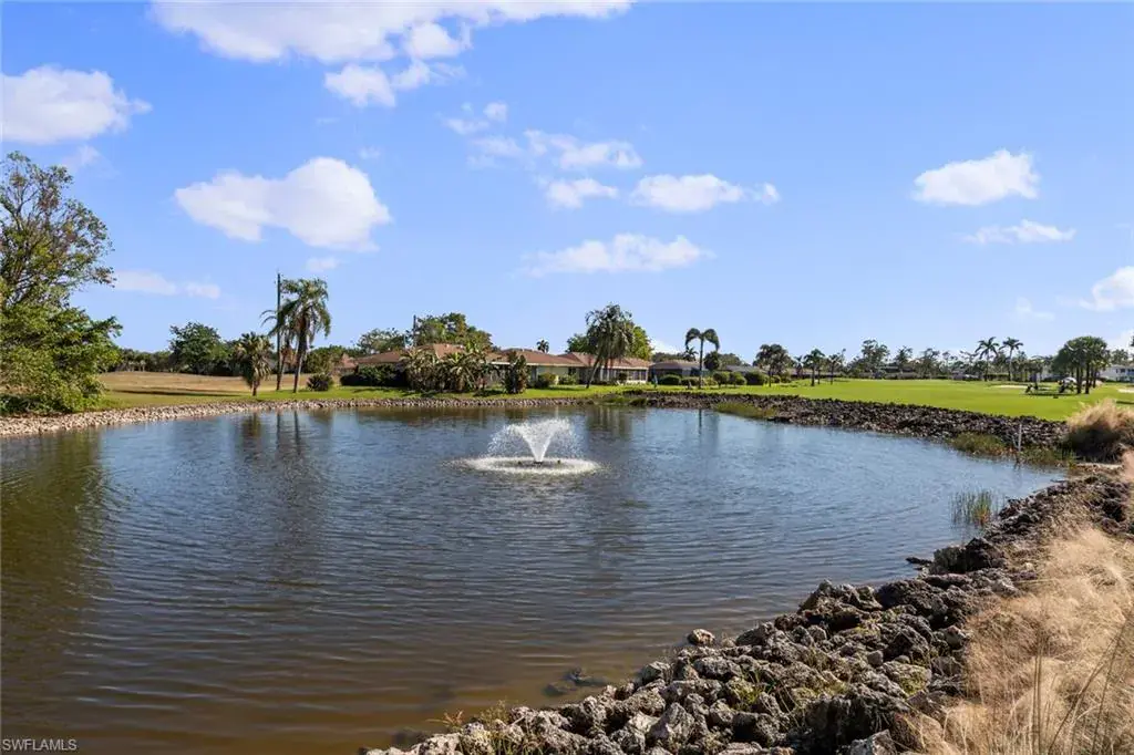 Enjoy the Naples Lifestyle in this beautiful condo featuring island inspired Tommy Bahama casual, relaxed furnishings.This second floor 2 bedroom and 2 bath condo has beautiful hardwood floors throughout and signature elements including exotic natural materials, rich custom finishes, unique upholstery designs, and a captivating palette of tropical colors. The kitchen updated with rich cabinets, granite countertops and stainless appliances. Both Bathrooms have been updated with rich wood vanities and neutral tile. Popcorn ceilings removed and top of the line upgrades throughout. The crowning jewel of this gorgeous condo is the screened lanai with a view of the 15th fairway of the Pines golf course with landscaped lake and water feature. Enjoy warm sunny breakfasts on this lanai and cool breezy cocktails in the evening. As an owner in the Glades Golf & Country Club you will enjoy unlimited play of golf on two Gordon Lewis designed courses, the Pines a par 70 and the Palmetto a par 55 course. Both courses have been recently renovated with paspalum grass and new irrigation. In addition, the club offers 12 new pickleball courts, resurfaced Har-tru tennis courts, bocce courts and 9 swimming pools throughout so all owners are just a short walk from relaxation by the pool. The 19th Hole restaurants and clubhouse feature lunch and special evening events, such as trivia nights, karaoke, bingo, card games and dinner dances throughout season. All of this is just 10 minutes from the Naples historic 5th Ave, restaurants and boutique shoppes and of course the white sandy beaches. Come enjoy the country club lifestyle in beautiful Naples. Other condo features: AC 2020, Hot Water Heater 2022, brand new washer & dryer, brand new refrigerator and microwave, electric hurricane shutters, pull out sofa bed in living area.