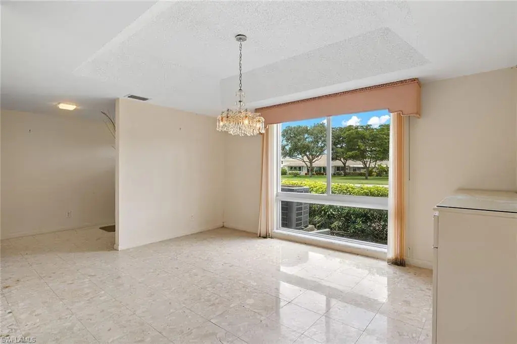 So, you desire the opportunity to live and play at the Glades Golf and Country Club in Naples? This is your opportunity. The GGCC offers a vibrant and relaxed lifestyle that combines the best of resort-style living with the comforts of a close-knit community. The basic palate of this two-bedroom, two-bath Bayou model will allow you to enter into a complete renovation to modernize and elevate the unit, making it a stylish, functional and welcoming home. The combination of thoughtful design choices and quality materials will ensure a timeless appeal that will be enjoyed for years to come. This home offers a spacious living area that flows seamlessly into an enclosed lanai and extends to a generous open-air patio, just near the beautifully landscaped pool area. The formal dining room area is ideal for entertaining, while the two large split bedrooms provide privacy and comfort, creating a guest suite with its bath. As a resident of the Glades Golf & Country Club, you’ll enjoy unlimited play on two Gordon Lewis golf courses, the Pines, a par 70 course, and the Palmetto, a par 55 course. Additional amenities include nine swimming pools, tennis and pickleball courts, bocce courts, shuffleboard, the 19th Hole restaurant, a pro shop and a clubhouse with many seasonal activities. Plus, you’re just 10 minutes from the fine dining, shopping and beautiful beaches of downtown Fifth Avenue.