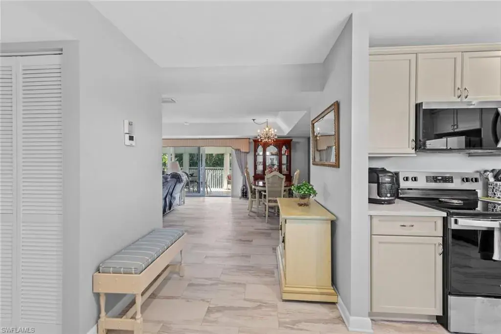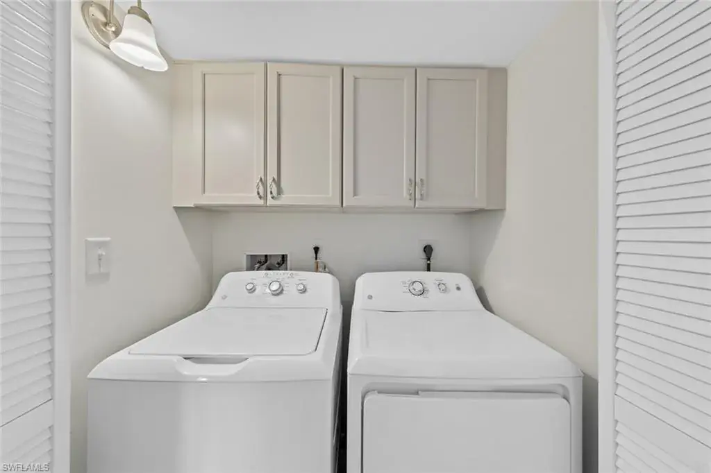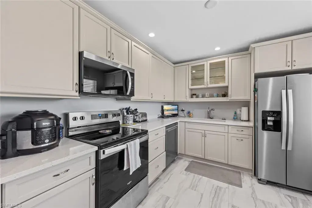 Discover the perfect blend of comfort and convenience in this bundled golf community just 10 minutes from downtown Naples and its stunning beaches! This 2-bed, 2-bath condo features new vinyl flooring throughout, brand-new kitchen appliances (Dec 2024), and recent upgrades, including a new AC and water heater (2023). Relax in the tropical landscaping of this screened lanai and feel secure with the storm shutters in the off-season. Enjoy resort-style amenities: 2 golf courses, the Pines a par 70 and the Palmetto a par 55, both designed by Gordon Lewis– unlimited play included. Other amenities include, 9 swimming pools, 12 new pickleball courts & tennis courts, bocce courts & clubhouse with seasonal activities. The club also has a Pro Shop, and 19th Hole restaurant with service to the main resort style pool. Nestled in a private, landscaped setting just a short walk to the pool, this home is a rare find in a highly sought-after community. All of this is just 10 minutes from the beautiful sandy beaches or Naples, and shoppes and dining on the 5th Ave historic area. Live the Naples lifestyle today!