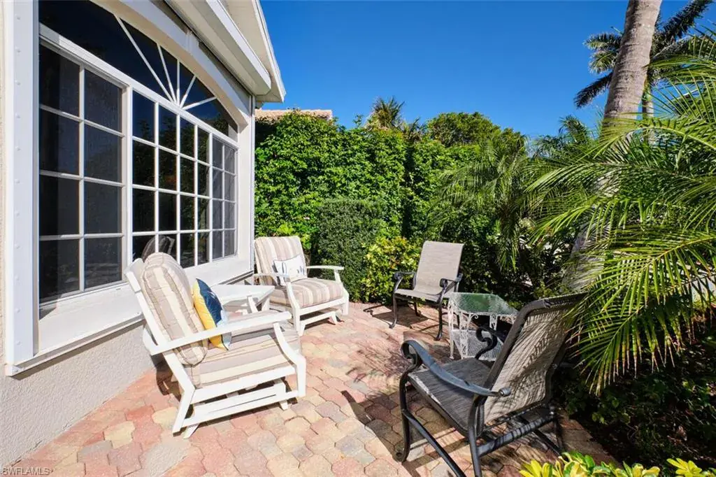 Security cameras overlook the landscaped front patio, ideal for quiet morning coffee.