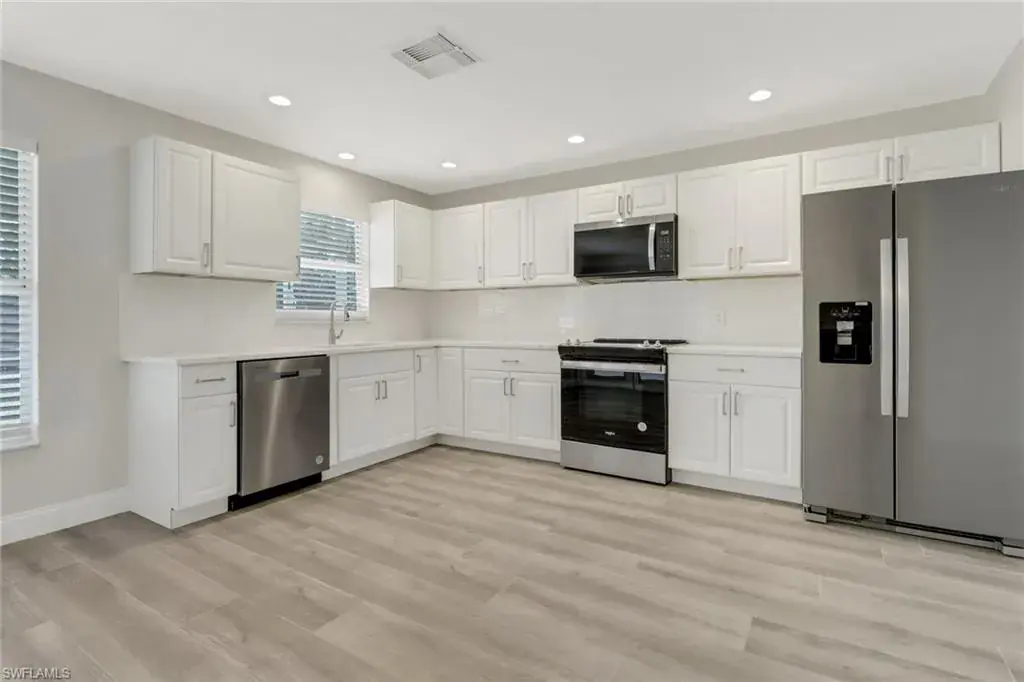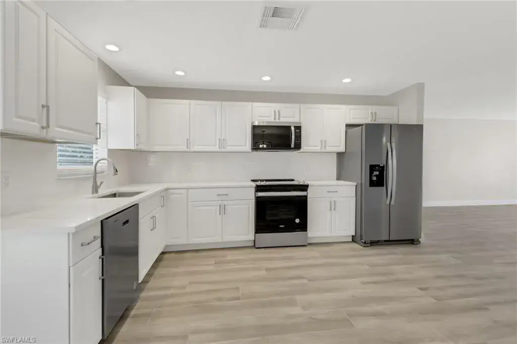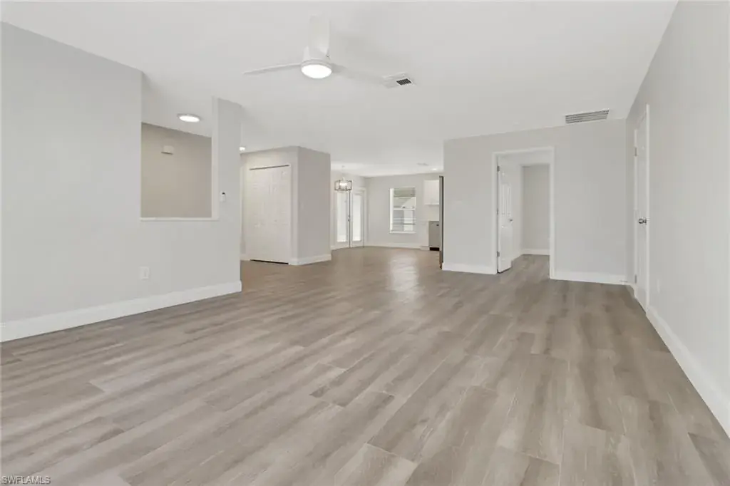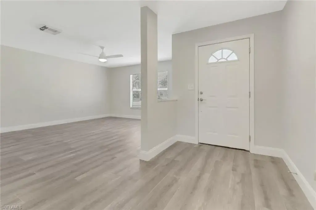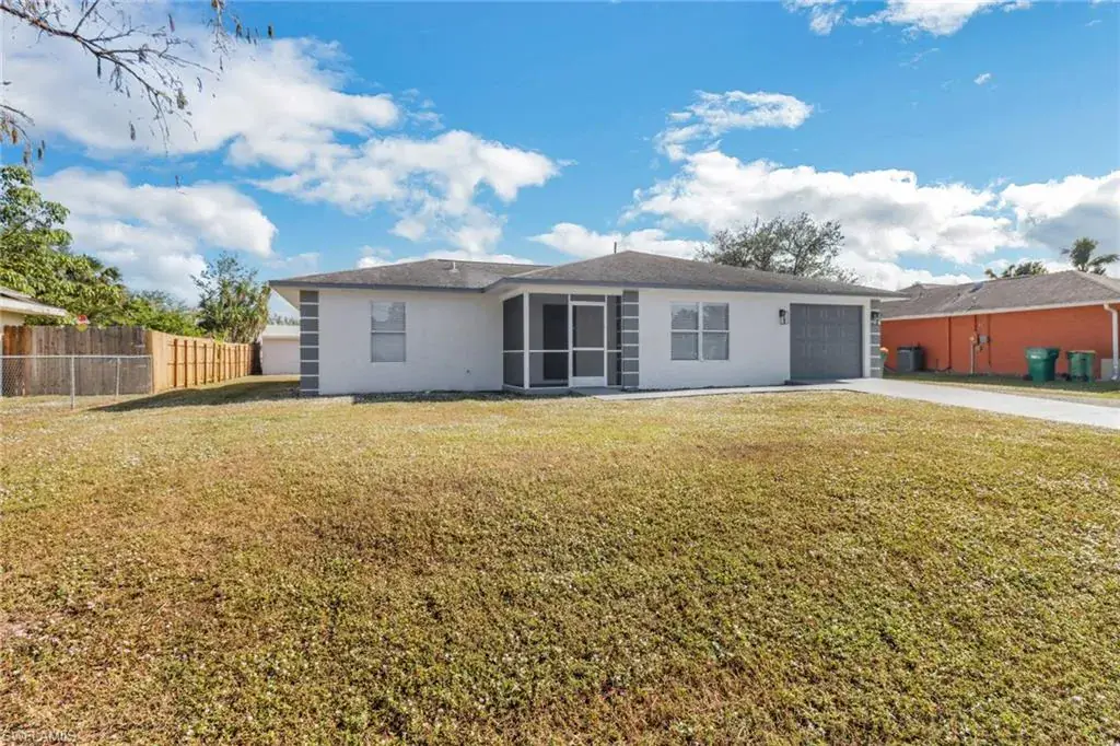 Move-in ready 3-bedroom, 2-bathroom home in the heart of Golden Gate City! This beautifully renovated property features a spacious open floor plan, a modern kitchen with updated finishes, fixtures and sleek bathrooms. Stainless steel appliances and quartz countertops are gorgeous! Enjoy the large backyard—perfect for outdoor entertaining—with ample room to add a pool. Relax in the expansive lanai and make the most of Florida living. A 1-car garage provides additional storage and convenience. Nestled in a prime location close to schools, shopping, dining, and just a short drive to Naples’ stunning beaches.
