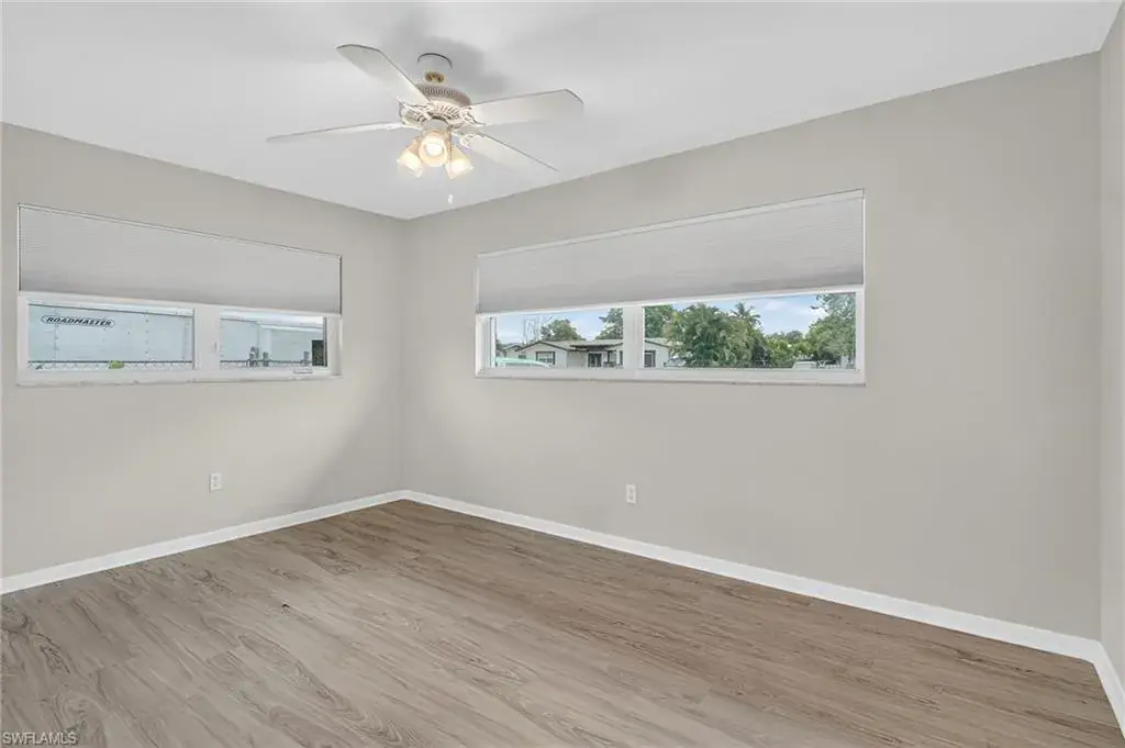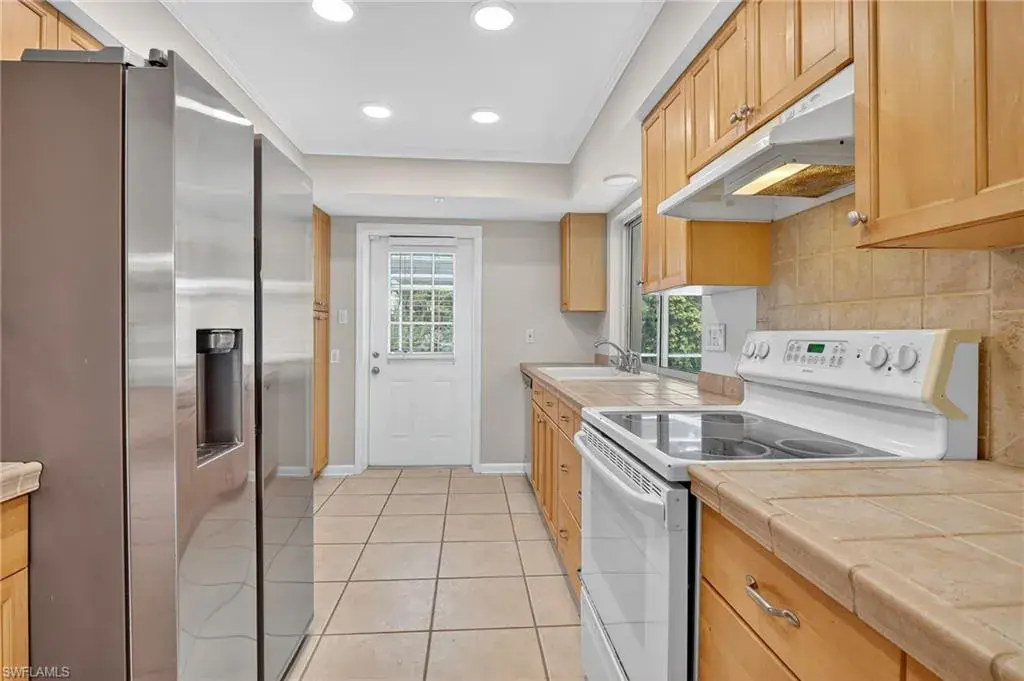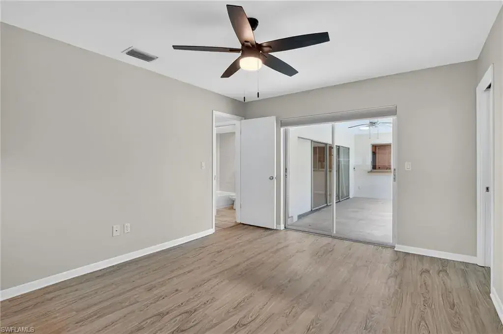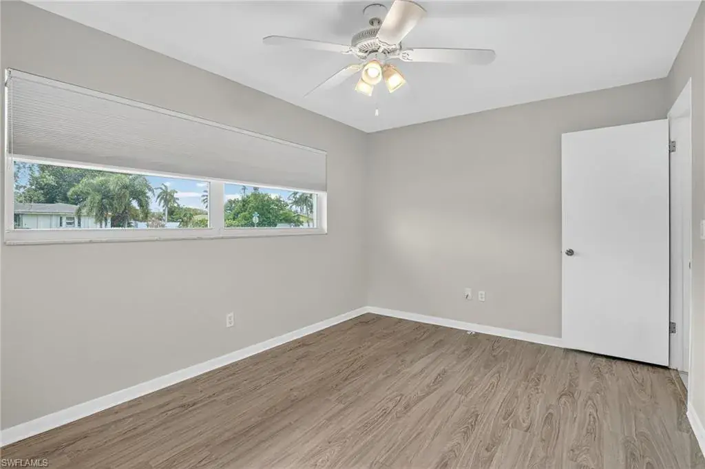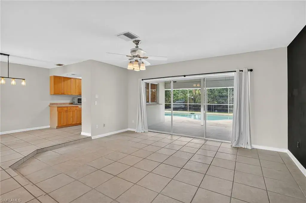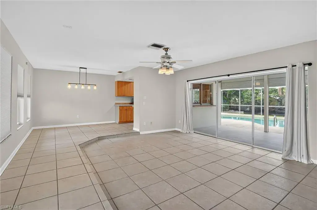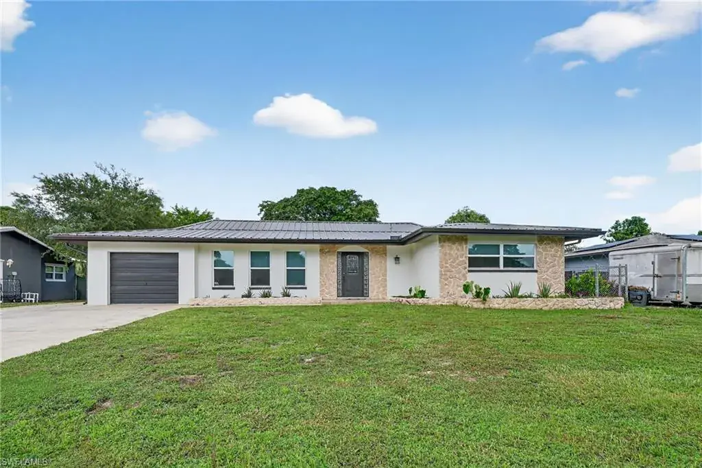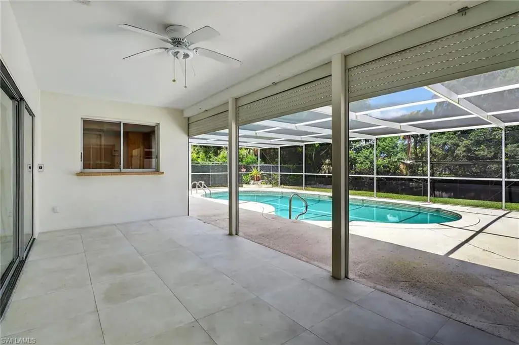 Enjoy serene canal-front living in this beautifully updated 3-bed, 2-bath pool home. Nestled among mature trees, the peaceful backyard features a custom gazebo overlooking the water—perfect for fishing, quiet mornings with coffee, or simply soaking in the tranquil setting. Recent upgrades include a new AC and pool pump (2024), fresh paint, impact windows (2020), and a metal roof. Inside, natural light fills the open living area with tile and wood plank flooring. The kitchen offers solid wood cabinets, recessed lighting, and a pass-through to the lanai. The owner’s suite includes pool access, a walk-in closet, and a private bath with walk-in shower and bidet. Two guest rooms share a pool bath with tub/shower combo. A fenced yard, concrete seawall, and deep one-car garage complete this peaceful retreat—just minutes from Naples’ top shopping, dining, and beaches.