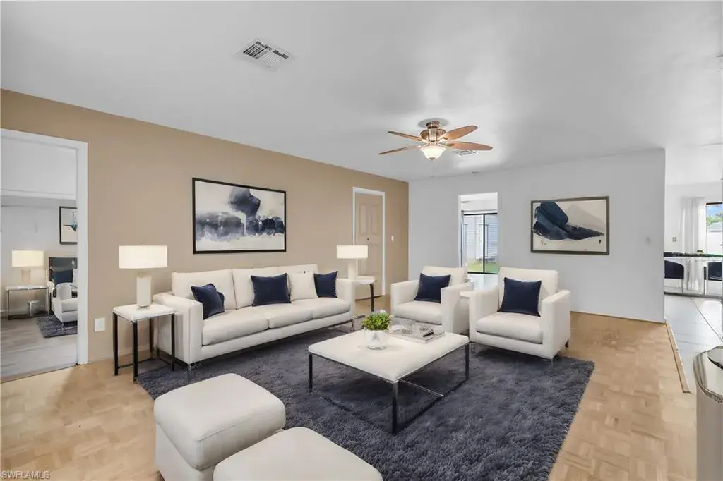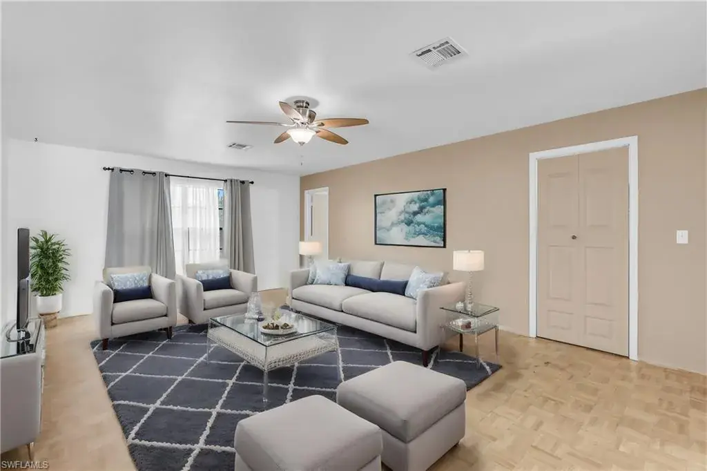 CENTRALLY LOCATED WITH A METAL ROOF AND FENCE! NOT IN A FLOOD ZONE! This 3 bedroom and 2 bathroom home is perfect for first-time buyers or investors! Nestled in a prime location close to I-75 and just 20 minutes from Downtown Naples and beautiful beaches, this charming property offers convenience and comfort in a desirable neighborhood. The home features a durable metal roof and a large 12×24 shed, providing ample storage space. The fenced backyard with a privacy gate offers a peaceful retreat, ideal for gatherings or relaxation. Additional highlights include a brand-new Kinetico water filtration system, sliding glass doors to the lanai, parque tile flooring and no carpets. With a large driveway offering plenty of parking space this property is the perfect blend of practicality and comfort! Don’t miss this fantastic opportunity to make this home your own!