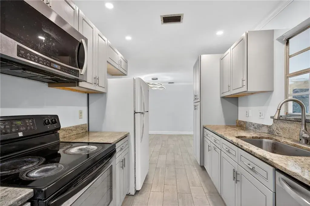 Updated Home with Private Backyard in Golden Gate City – No HOA! This beautifully updated 3BR/2BA home sits on a spacious lot in a quiet, convenient location close to shopping, restaurants, and I-75. With no HOA restrictions, it’s an ideal primary residence, seasonal getaway, or rental investment. Step inside to a bright and open great room, an updated galley kitchen, and modernized bathrooms, all featuring tile flooring throughout. The home includes well and septic system as well. The fenced backyard offers perfect for relaxing, entertaining, or creating your own backyard oasis. There’s also ample space on the side of the home to park a boat or trailer. The house Located in Flood Zone X – No flood insurance required by lenders. Enclosed lanai includes a third bathroom and is ideal for a potential in-law suite or guest quarters. Don’t miss this fantastic opportunity in Golden Gate City! Call today to schedule your private showing.