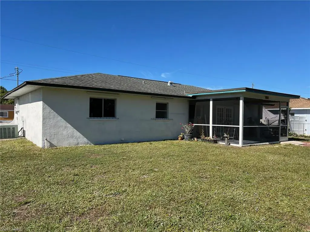 3 BEDROOM 2 BATH SINGLE CAR GARAGE, LARGE LOT ON CANAL ready for your decorating skills. Home has lots of potential including vaulted ceiling in the Living and Dinning, room to add on or room for a pool. The lot is close to Santa Barbara Blvd. and not too far from I-75. Also, there is a permitted 10′ x 12′ Ted’s Shed in the back yard.