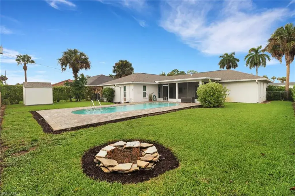 Step through the enclosed paved lanai, equipped with a ceiling fan, into your very own backyard retreat. The recently resurfaced pool provides a refreshing escape during warm days, while the spacious yard offers plenty of room for gatherings and outdoor fun.