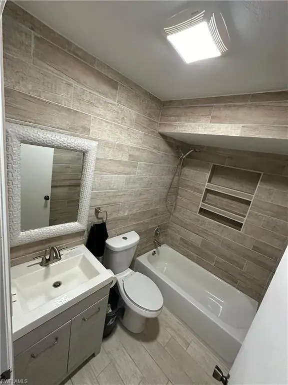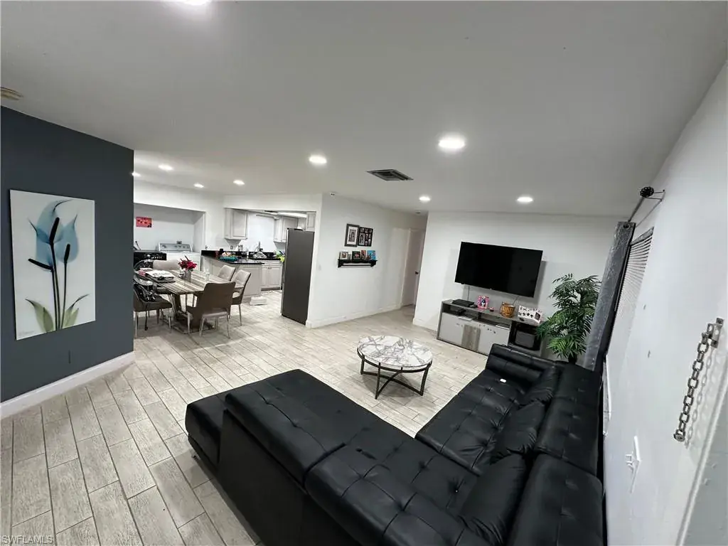 Fully Remodeled Interior: Modern finishes throughout, including updated kitchen with quartz countertops, stainless steel appliances, and luxury tile flooring, lush landscaping creates a private oasis.