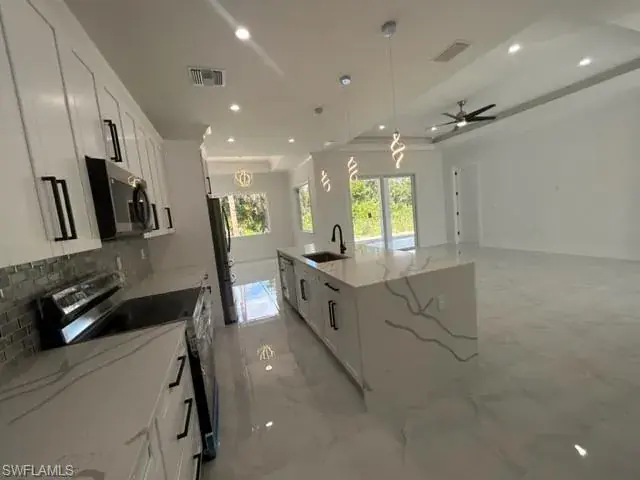 NEW CONSTRUCTION HOME ON AN AMAZING LOCATION, with 3 bedrooms plus den ,2 bathrooms and 2 car garage in Golden Gate Estate. IT WILL BE READY TO MOVE IN 7 DAYS. This beautiful Estate Family Home feature a great and cozy floor plan, living room, open modern kitchen with stainless steel appliances and wood cabinets which translates into pure elegance, breakfast and dining, QUARTZ Counter Tops in kitchen and Baths, large covered terrace, washer and dryer connections, gorgeous front and back view to enjoy and relax at home, Impact Windows and Doors, sprinkler system and crow-molding. Located in a spectacular lot of 1.59 acres 100% upland and paved driveway down to the garage with spacious access to the back area, THIS ONE IS A MUST SEE! DO NOT WAIT ANY LONGER.