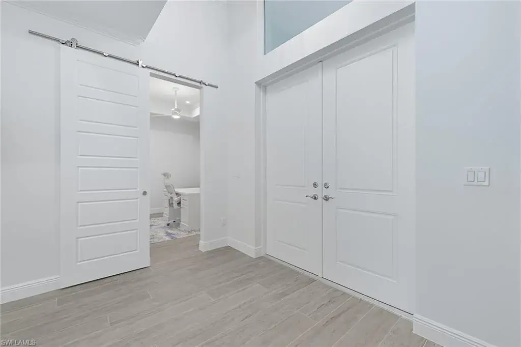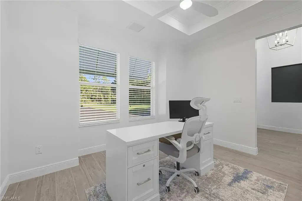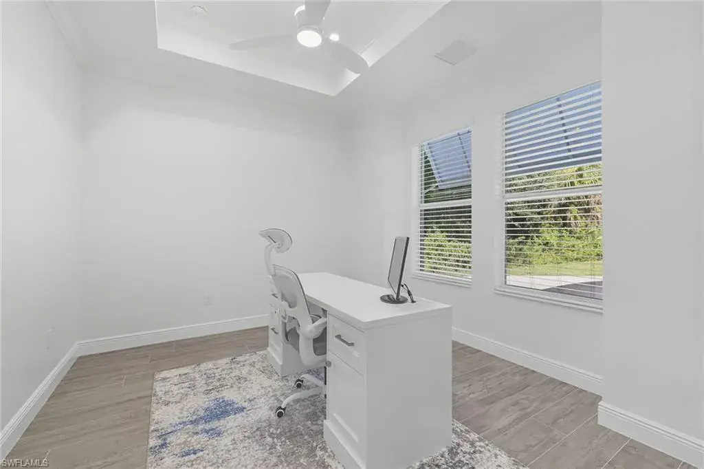 This property comes with a bonus 1.14-acre 100% upland lot next door parcel ID 37547800008, a blank canvas for your vision, whether it’s another house, guest house, shop or garden! This is a well-maintained 2020-built residence on 1.14 acres of 100% upland in Golden Gate Estates! Just minutes from Immokalee Road and the new Vanderbilt Beach Road extension. This approximately 1,800-square-foot home offers modern elegance and thoughtful upgrades. As you arrive, you’ll be greeted by beautifully landscaped grounds and a paved driveway, professionally painted in 2024, complemented by charming Bahama shutters. Leading to a spacious two-car garage with an epoxy floor and Tesla charger. Enter inside to discover three bedrooms, a versatile office and two contemporary baths, crown molding throughout with tray ceilings and quartz countertops adding a touch of luxury to every room. Enjoy pure, pristine water throughout the home with your whole-house reverse osmosis system. The interior, freshly painted in 2023, radiates warmth and style. Relax in your backyard oasis, featuring a sparkling pool and pet-friendly turf! Don’t miss this opportunity to own a move-in-ready home with endless potential.