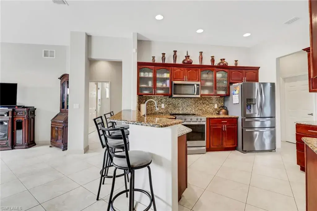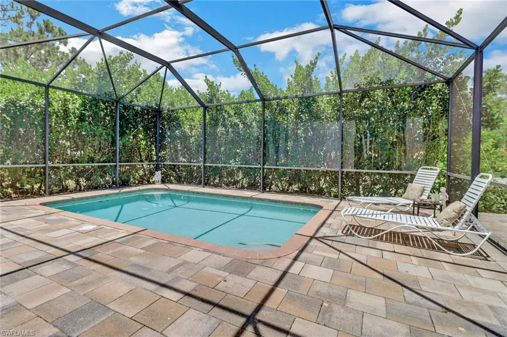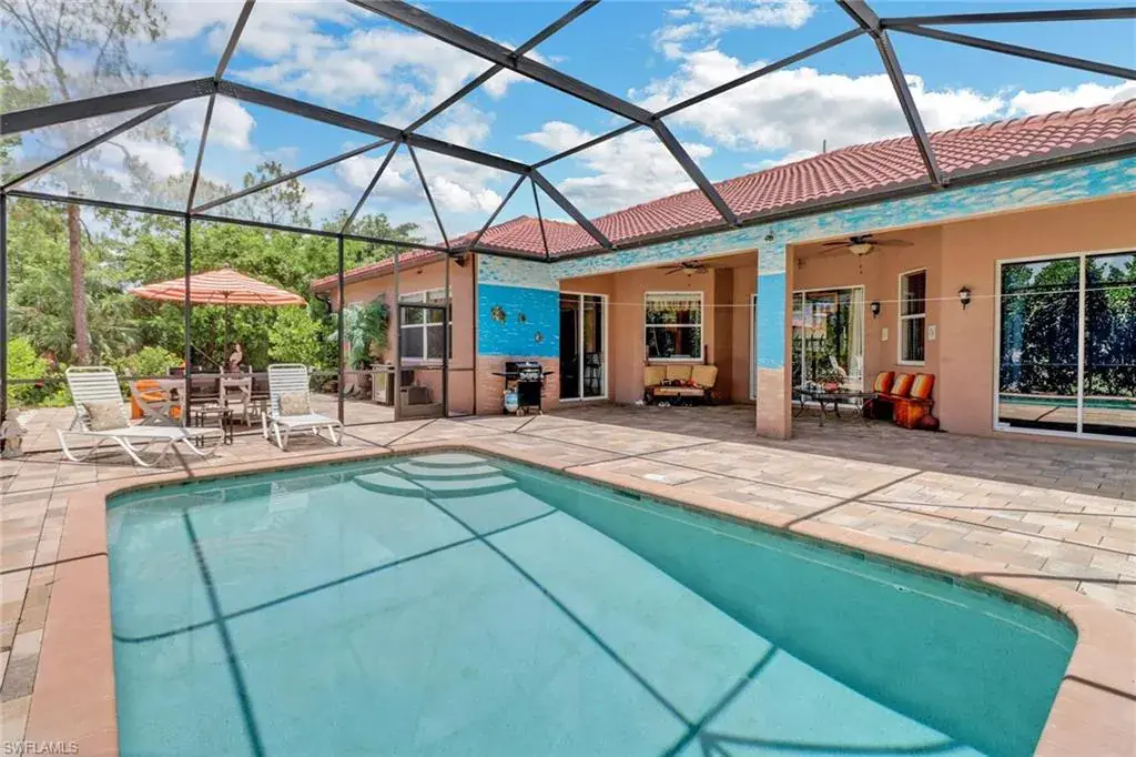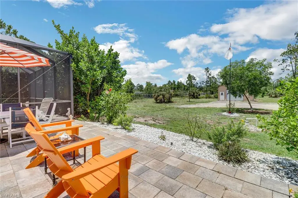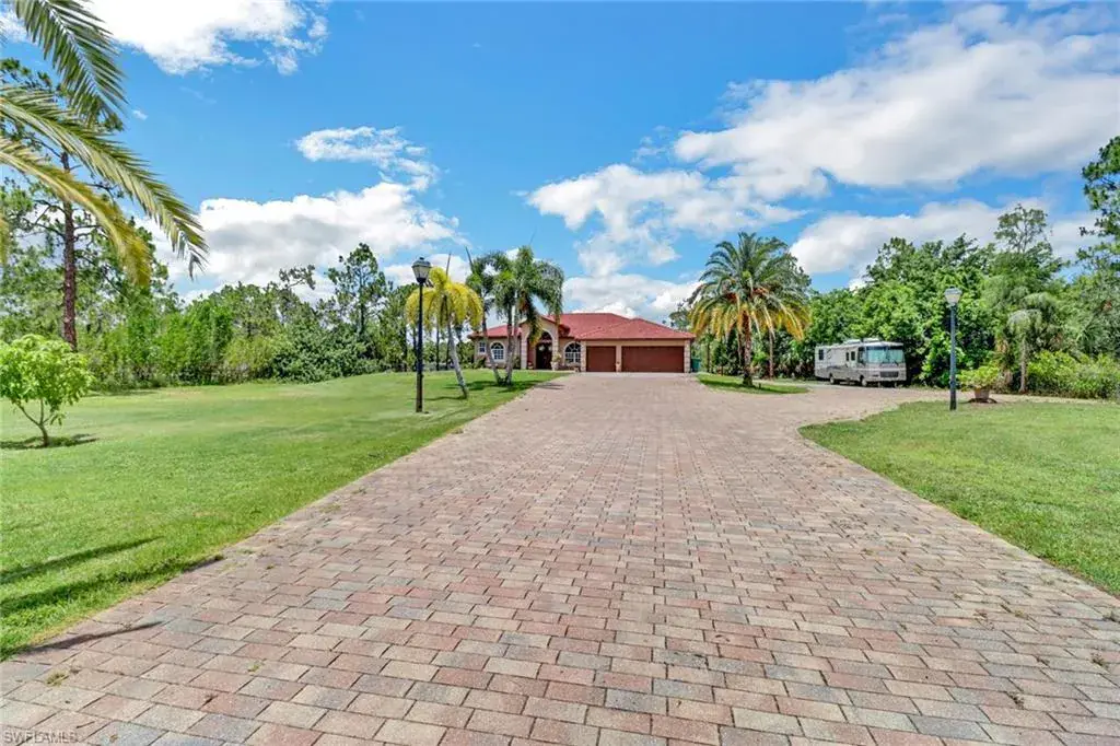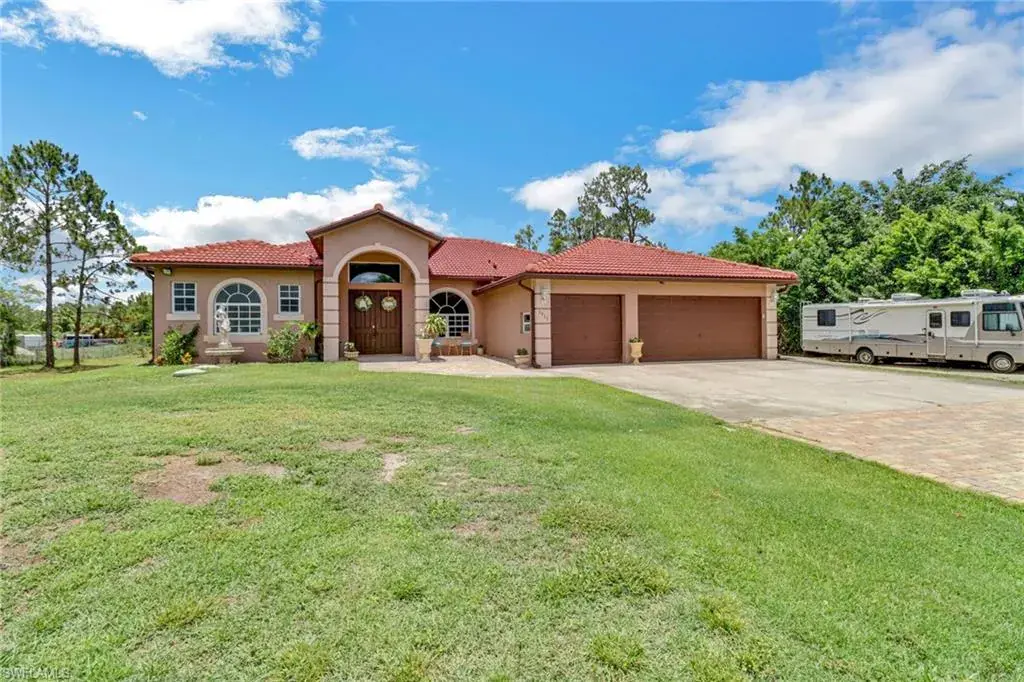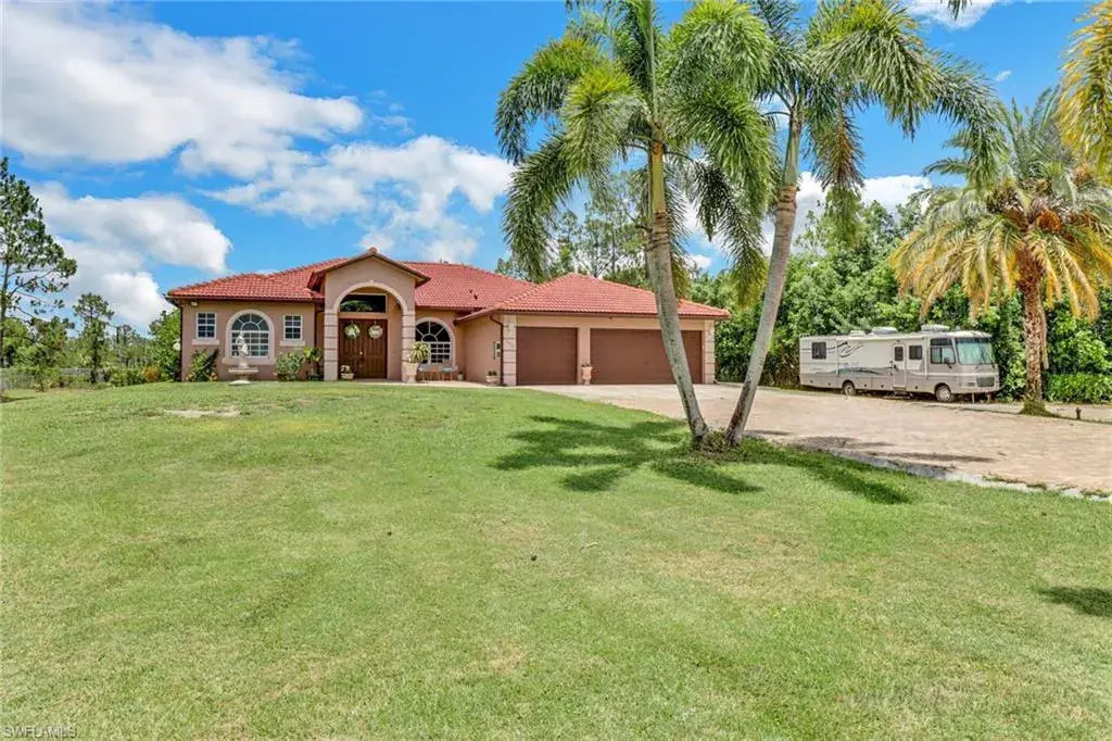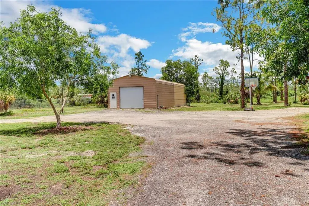 Looking for 4 bedrooms, no home owners association dues, and lots of room for your business? Need room for all of your toys and animals? Look no further! This freshly painted, all tile flooring, four bedroom, pool home is ready for you and your family. It has 4 bedrooms, 2 bathrooms, a family room, living room, dining room and an eat in kitchen with a walk-in pantry. The upgraded, primary bathroom has a separate tub and all glass shower enclosure with a large walk-in closet and separate water closet. The tile floored garage has its own A/C unit and all of the plumbing for another full bathroom. A whole house reverse osmosis system is also in place to remove impurities. Plus, the roof was replaced in 2019. This home sits on 2.73 acres, gated and fenced! With a nicely paved driveway to the home and a driveway back to the separate 20×40 metal, concrete floor outbuilding with electric. The outbuilding has a regular door plus a 10 ft. roll up door ready for a business or toys. The screened in lanai has plenty of room for outdoor living while enjoying the inground pool. The paver outdoor patio allows for more outdoor space to enjoy looking over your property. Need more space? This home also has RV electric hook up beside the driveway for any guests that may come to visit. Need to build more? This property has plenty of cleared, flat, upland space to build what you may need. Bring your business and your animals to your new home. Close to schools and all of the new building Collier County is doing out in the Estates. Come take a look!!