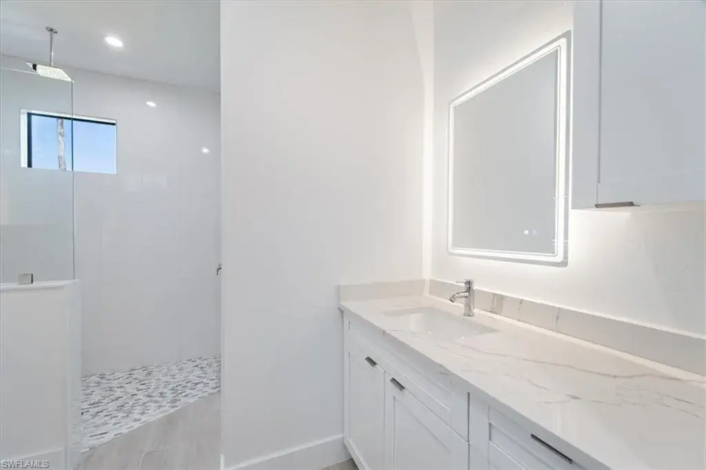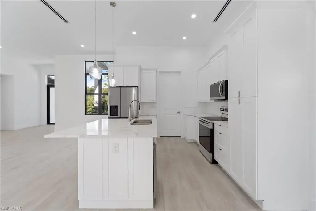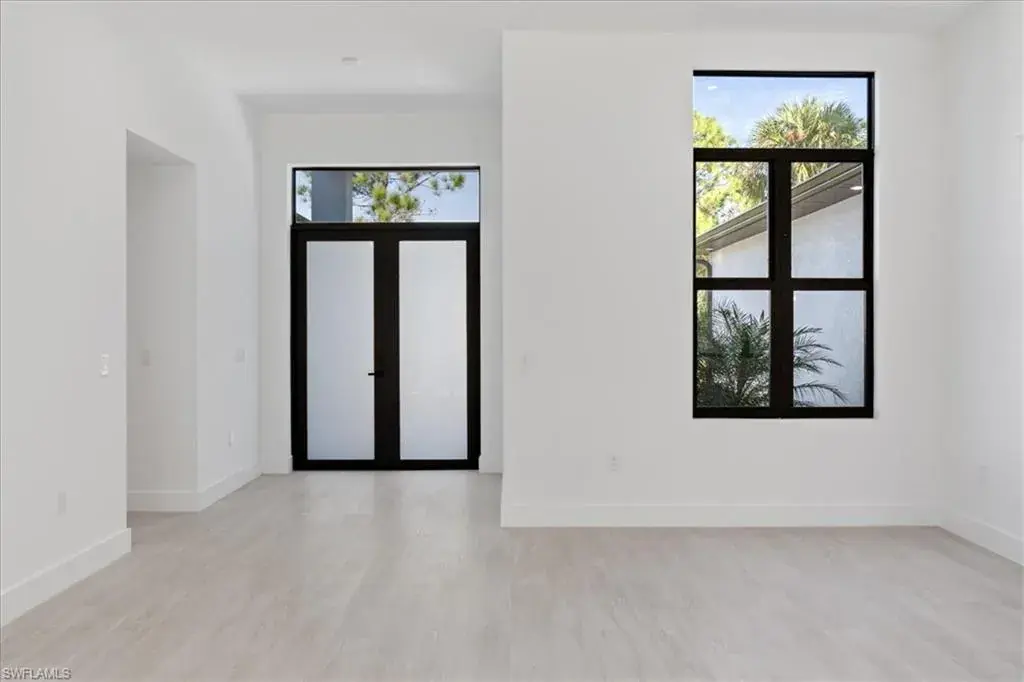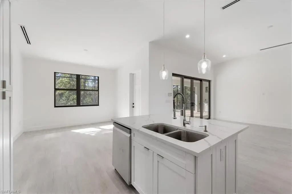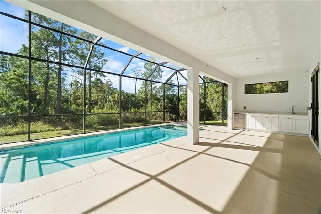 Experience the pinnacle of modern estate living at this newly constructed luxury residence at 1964 16th Ave NE in Naples. Perfectly positioned on 2.5 acres of private land, this architecturally refined home blends exquisite craftsmanship with the tranquility of Golden Gate Estates’ coveted lifestyle. A grand entry welcomes you into a light-filled interior with soaring ceilings, designer finishes, and expansive impact-rated windows framing the natural surroundings. The gourmet chef’s kitchen serves as the centerpiece of the home, showcasing waterfall-edge quartz countertops, custom cabinetry, premium stainless-steel appliances, and an oversized island ideal for both intimate gatherings and elevated entertaining. The sophisticated split floor plan offers a secluded primary suite featuring serene landscape views, a spa-caliber bathroom with dual vanities, a spacious walk-in shower, and a custom-designed dressing closet. Guest accommodations are equally impressive, offering comfort and privacy with beautifully appointed bedrooms and baths. Thoughtfully designed for indoor-outdoor living, the expansive covered lanai provides the perfect backdrop for future poolside retreats, al fresco dining, or simply enjoying the serenity of the estate-sized property. A full paver driveway, impact doors and windows, high-end tile throughout, and a spacious 2-car garage further elevate the home’s refined appeal. Crafted for those who demand elegance, space, and modern luxury, this brand-new Naples residence delivers an unparalleled blend of sophistication and privacy, just minutes from world-class beaches, dining, and shopping.