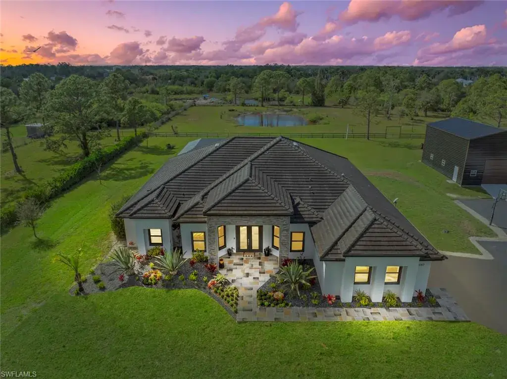 Welcome to this EXTRAORDINARY residence located in the desirable Golden Gate Estates with NO HOA RESTRICTIONS. This elegant home offers SIX BEDROOMS, and FOUR BATHROOMS, all set on over 5.6 ACRES for serene country living with modern conveniences while being just minutes away from the heart of Naples.