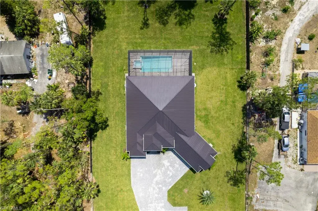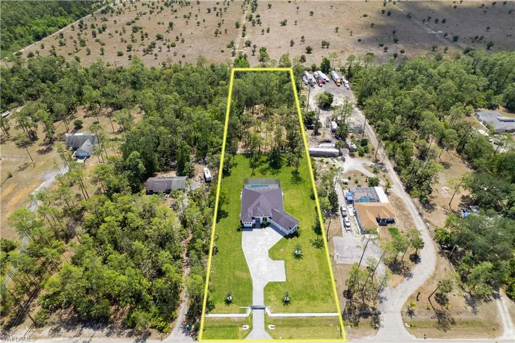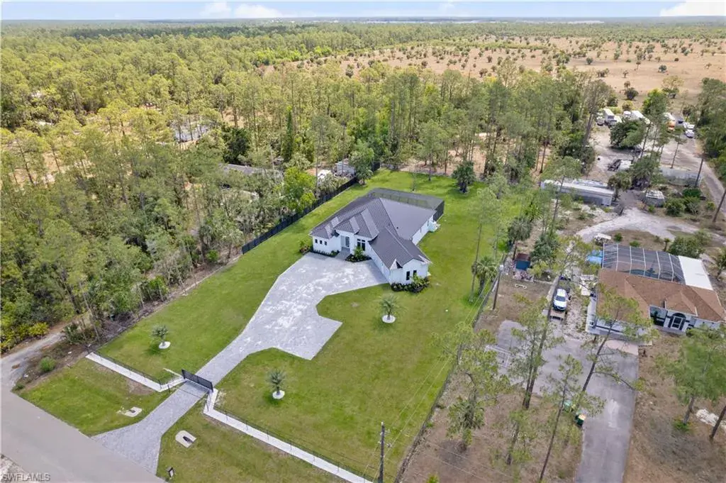 Seller Motivated to sell. This home is under construction, so pictures are of a similar model. Welcome to this amazing property nestled on 2.61 acres of land, 150 feet wide by 760 feet long!!! Less than five miles from Collier Blvd. This stunning house spans 2565 square feet under air, with a grand total of 4052 square feet. As you approach, you’ll will first notice the spacious 3-car garage, METAL ROOF & paver driveway. Step inside and discover the luxury within. With 3 bedrooms plus an office and 3 modern bathrooms, each equipped with stylish mirrors and integrated lighting, comfort meets sophistication. Walking closets with built-in cabinets ensure ample storage, complemented by the entire house’s spray foam insulation for energy efficiency. The house features 2 AC units to keep you cool year-round, while impact-resistant windows and doors provide security and peace of mind. The integrated reverse osmosis system ensures pristine water quality throughout, enhancing daily living. Relaxation awaits in the living room and master bedroom. The custom kitchen cabinets offer both beauty and functionality, perfect for culinary endeavors. Step outside to your private oasis—a sprawling pool and jacuzzi set amidst an expansive deck. The lanai features a summer kitchen equipped with everything you will need to keep your guests entertained.