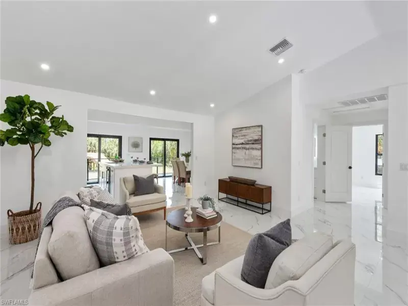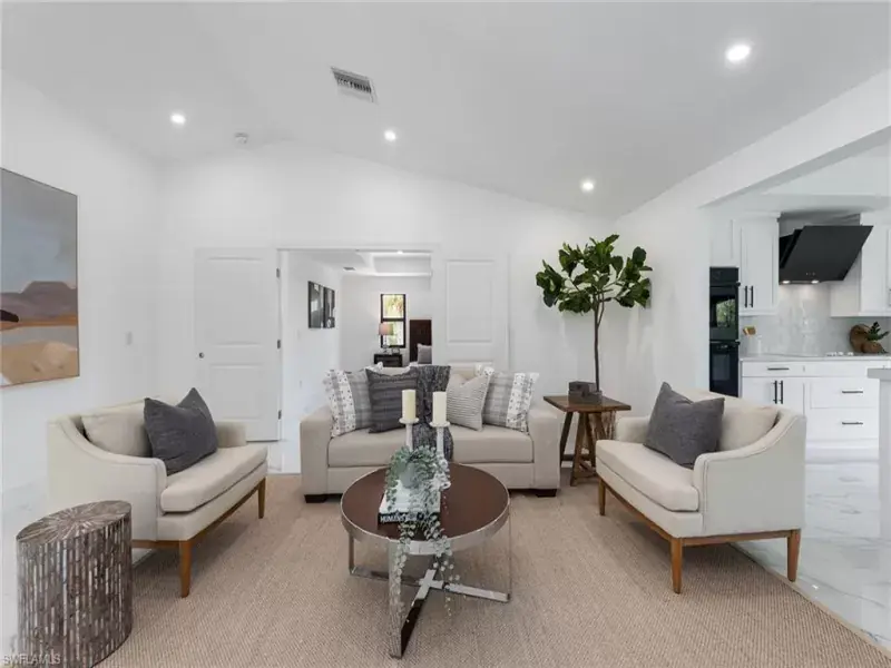 Located in the Golden Gate Estates area, this newly 2022 renovated, three-bedroom, two-bath, two-car garage home offers luxury for the avid homeowner. Perfectly situated on approximately 2.5 acres, there is plenty of room to add a swimming pool or guesthouse. The open floor plan features impact windows, impact doors, tile throughout, tray ceilings, new hot water heater, new septic tank, newer roof and more. The living room, dining room and kitchen all access the covered lanai overlooking the Tiki hut. The beautiful kitchen includes new appliances, electric cooktop, custom white cabinetry and large island with sink. The master bedroom with access to the lanai offers a walk-in closet, tray ceiling, an en-suite with dual sinks and walk-in shower. The additional bedrooms allow privacy for your guests. The lower level can be enclosed for extra living space or a workshop and includes a new bath and an oversized, covered lanai with an abundance of room for gatherings. The amazing Tiki hut in the backyard makes entertaining a blast and is sure to impress. Close to shopping, schools, restaurants and Naples beaches. Don’t miss this opportunity to own your private sanctuary!