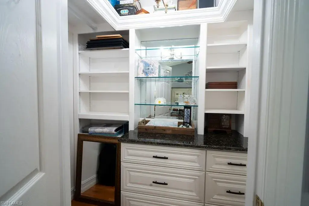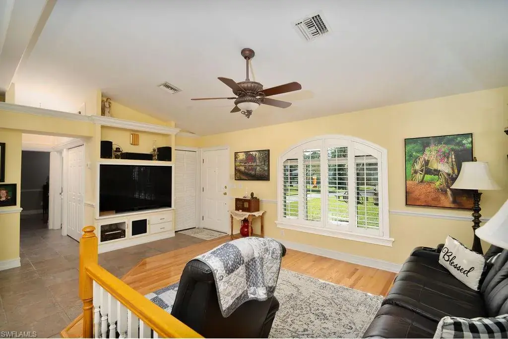 All bedrooms offer walk-in closets, with custom closets in the guest rooms. Recent updates include a new Rheem A/C (May 2024), Rheem water heater (January 2023), and a newer Samsung washer/dryer. The lanai is also outfitted with new fans.