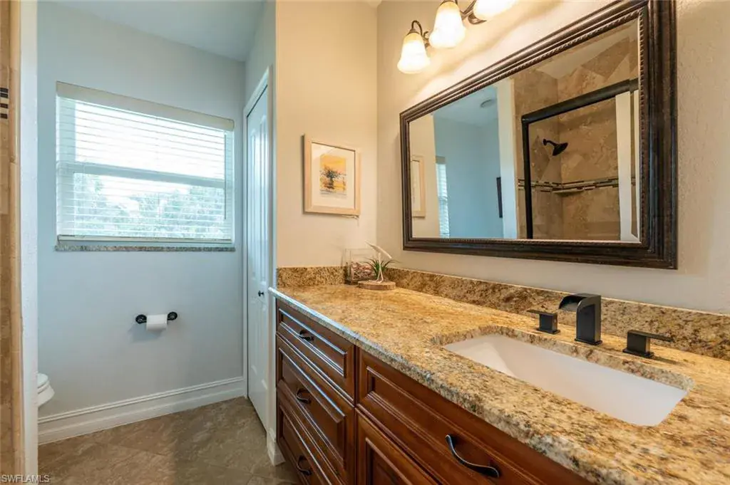 Beautiful totally renovated home has many new updates, upgrades, and wanted FL amenities like a secure metal roof, impact windows, slider-doors, RO system, built-in wood shelving and closets, and epoxy garage floor. The main suite features a walk-in shower with a glass door, double sinks, a walk-in closet, and sliding doors to the pool area.
