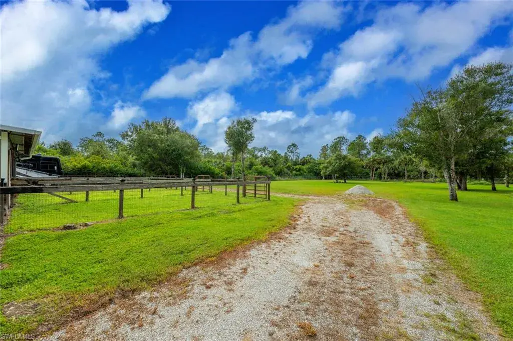 Outdoor enjoyment begins with a screened pool enclosure, a paver deck, overlooking a landscaped yard and pasture-barn area. A lighted Gazebo, pre-wired and plumbed, perfect for a summer kitchen, a fire pit, sit next to a Koi Pond, and a neat little chicken coop for those country-fresh eggs. No restrictions here for your toys, travel trailer, RV, boat, ATV s, and pets, for the perfect country retreat, yet close enough to stores and area amenities. Riding trails in the Picayune Strand State Forest offers hours of enjoyment with the horses and friends who ride. Large new million-dollar homes are being built in the neighborhood.
