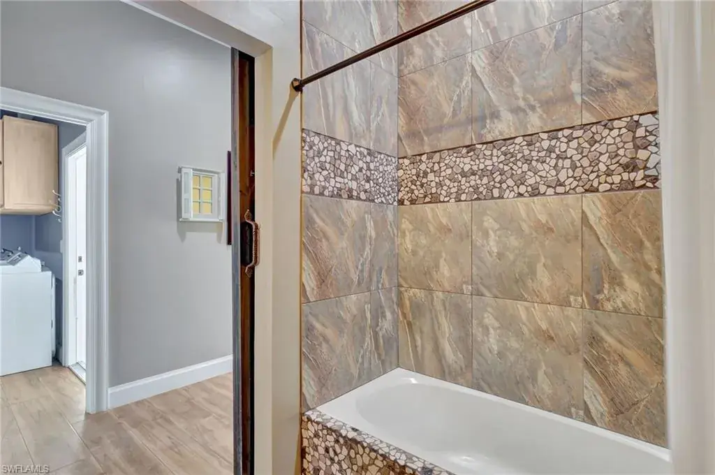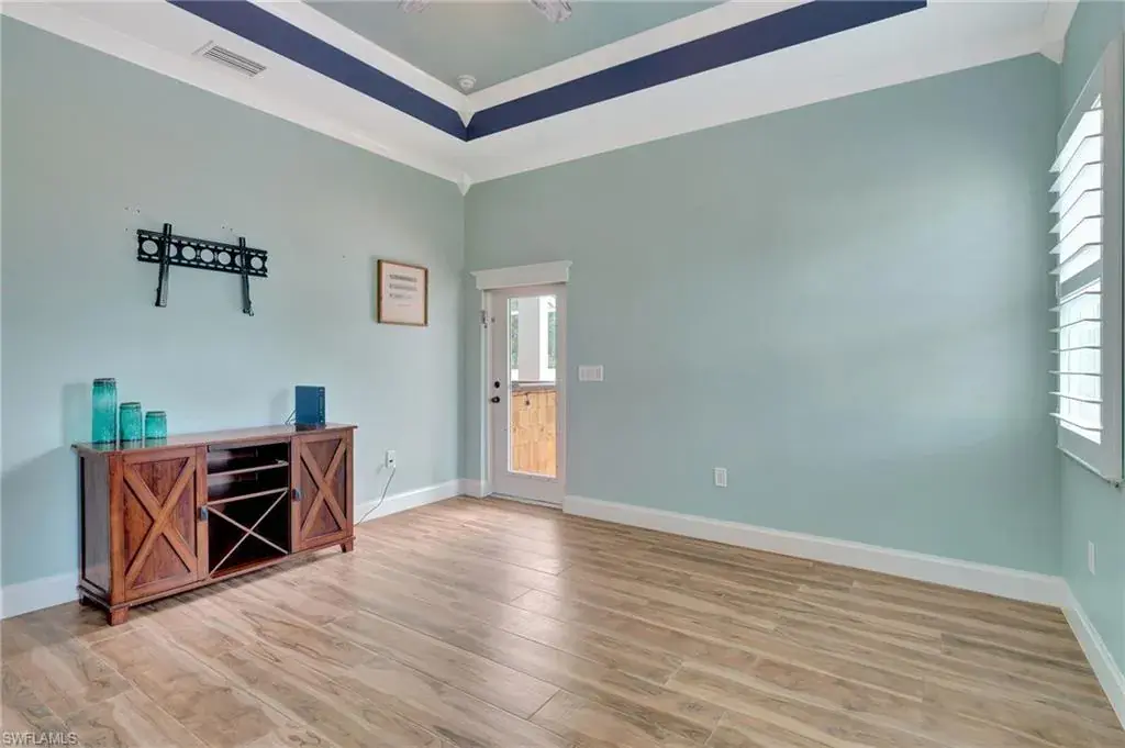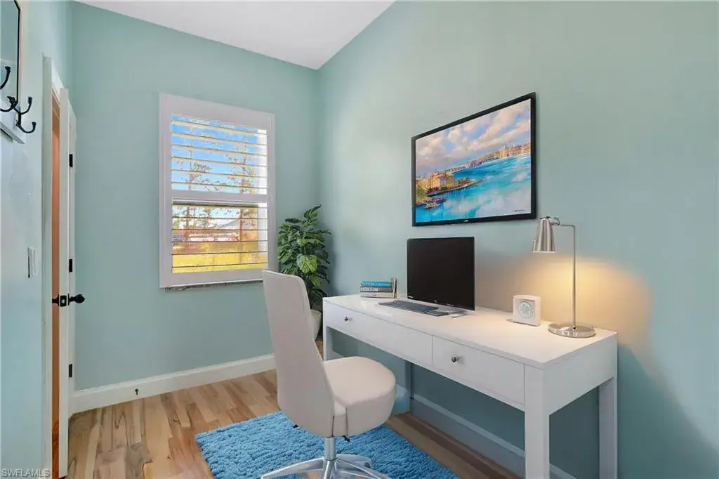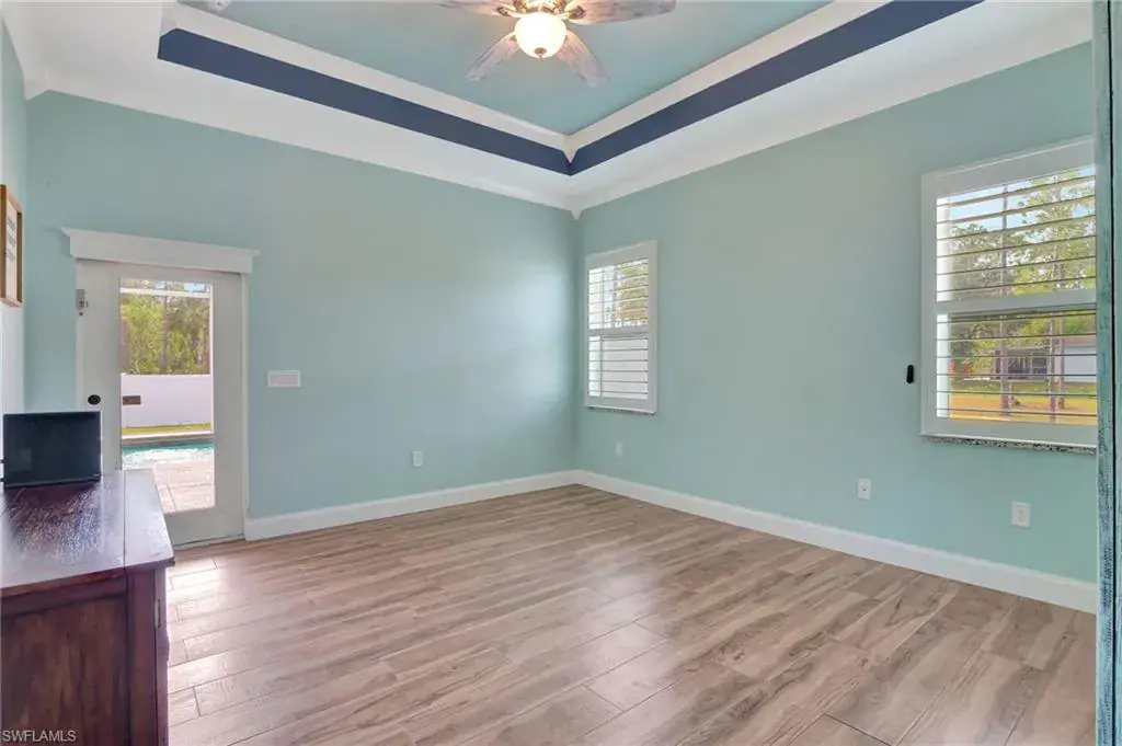 Privacy & Comfort: The home features a split bedroom floor plan for maximum privacy, with impact windows and doors, plantation shutters, tile flooring throughout, high-end lighting, and Hunter Douglas fans.