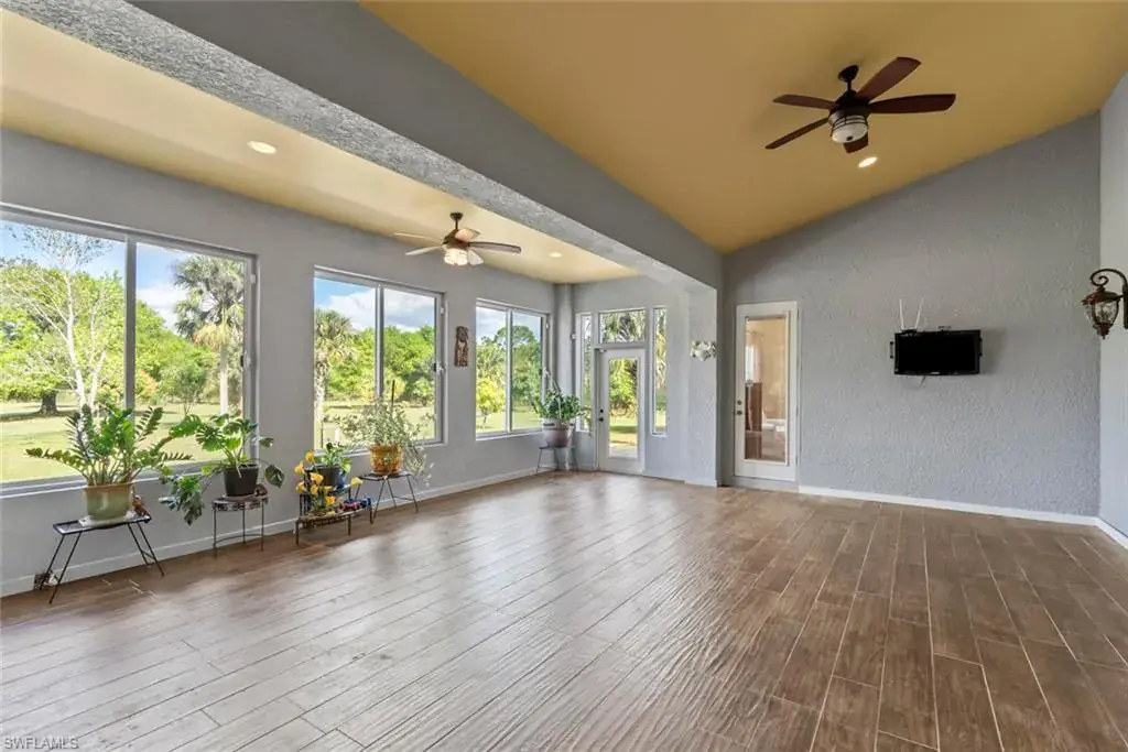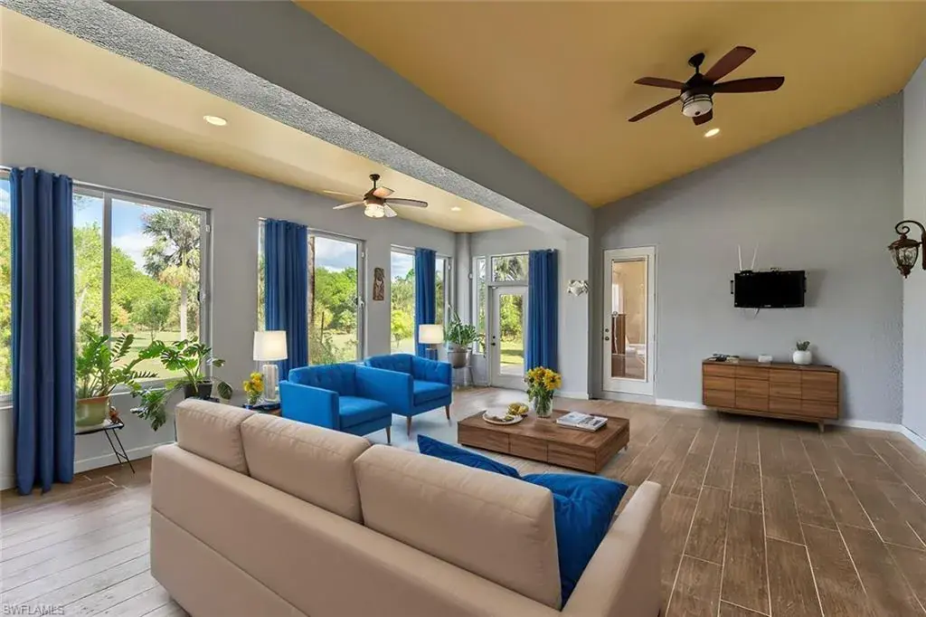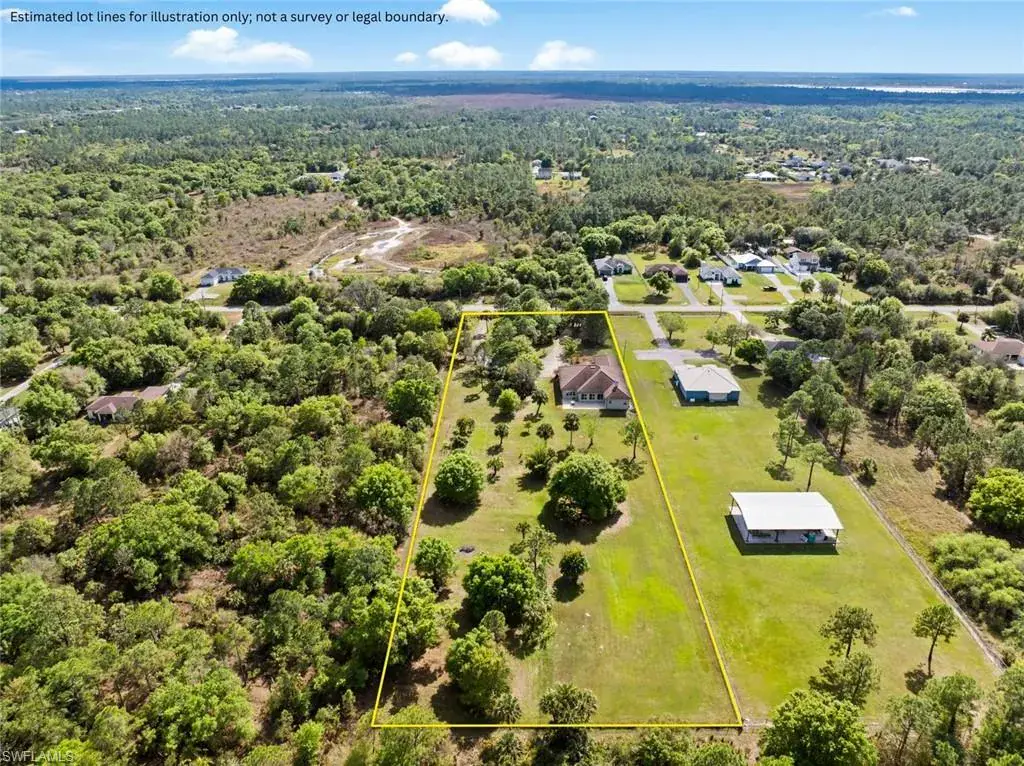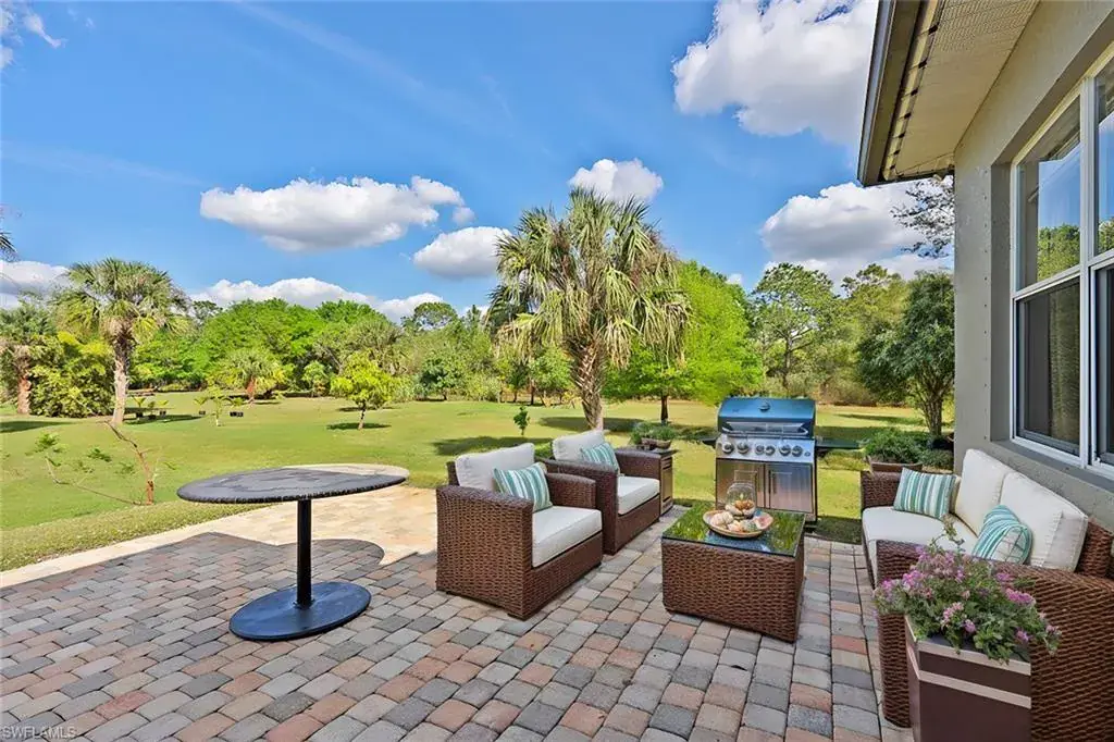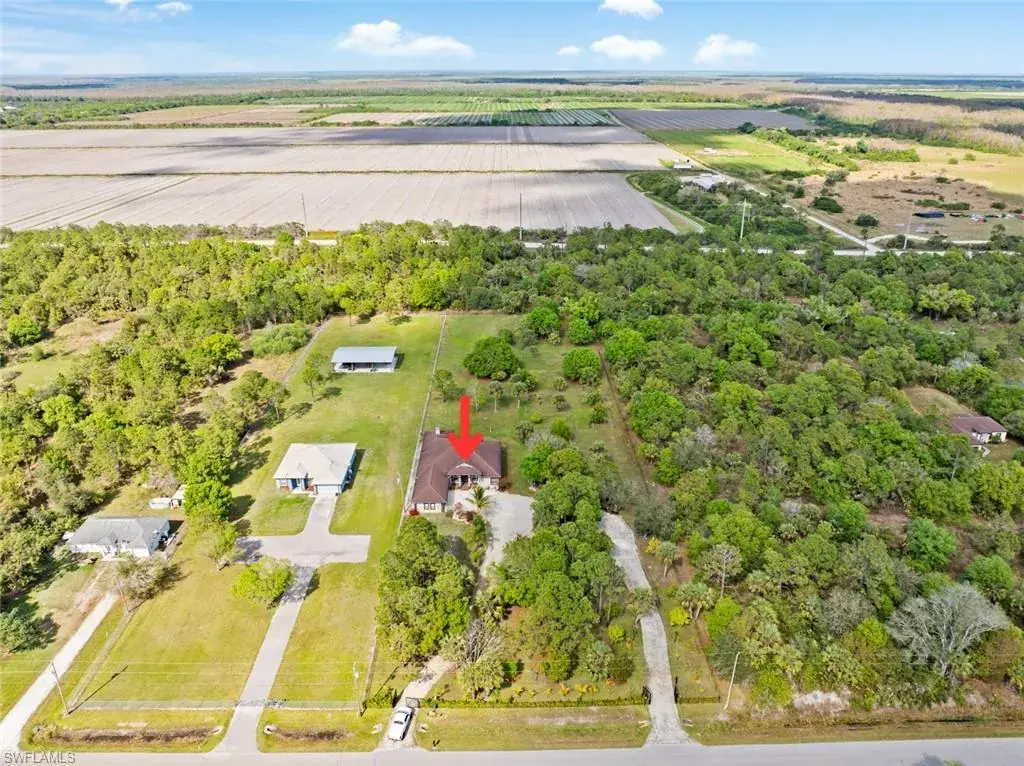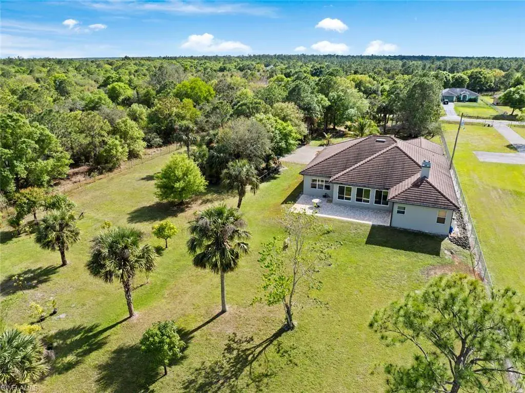 Welcome to 2671 72nd Ave NE, a retreat nestled in the serene Golden Gate Estates of Naples, Florida. This exquisite residence, built in 2006, offers an expansive 3,068 square feet of living space, featuring 4 bedrooms, a den, and 3 bathrooms. This large floorplan is ideal for families and entertaining with lots of space of entertaining inside and out. The property is being sold together with an adjacent 1.59-acre lot, bringing the total to a generous 2.73 acres. As you step inside, you’re greeted by soaring ceilings and gleaming tile and wood flooring. The gourmet kitchen is a chef’s dream, equipped with stainless steel appliances, a spacious island, and granite countertops. The great room boasts a cozy fireplace and sliding doors that seamlessly blend indoor and outdoor living spaces. The expansive primary suite offers lanai access, double walk-in closets, and a spa-like en-suite bath with a soaking tub, dual vanities, and a step-in shower. The property is fully fenced and includes a large circular driveway, enhancing both privacy and convenience. With no HOA restrictions, the meticulously manicured grounds are adorned with 14 fruit trees, including mango, lemon, and coconut. Property also includes an open shed with extra storage. This prime location offers easy access to Immokalee Rd and Everglades Blvd.