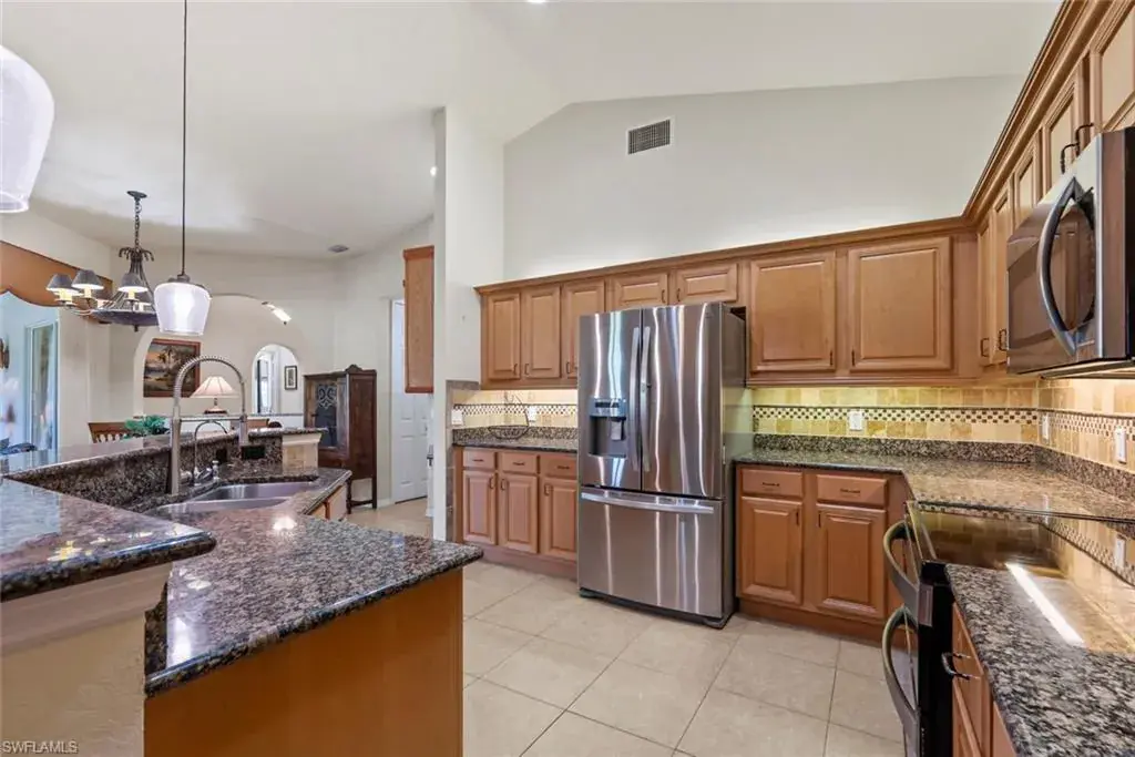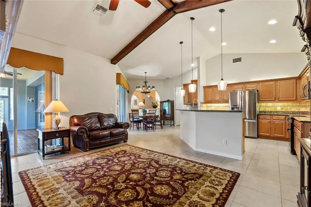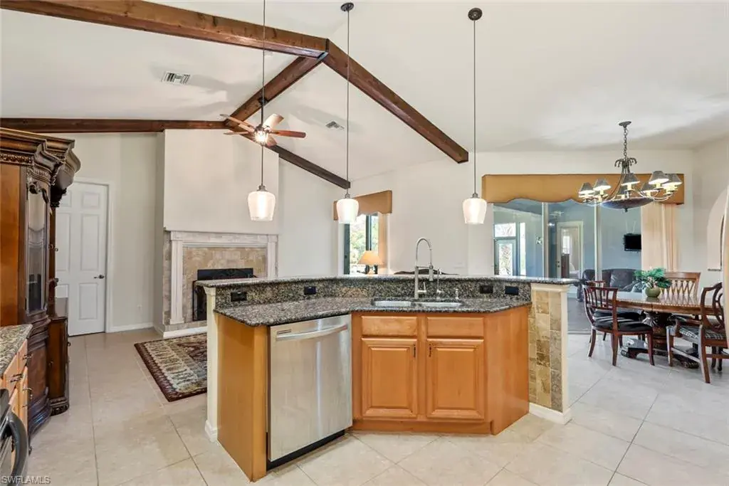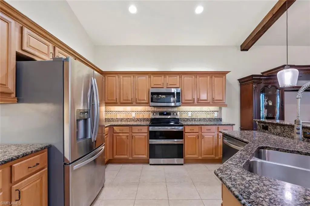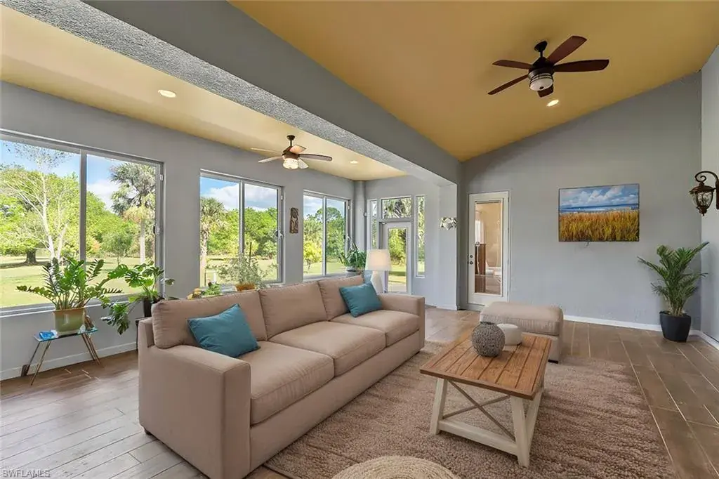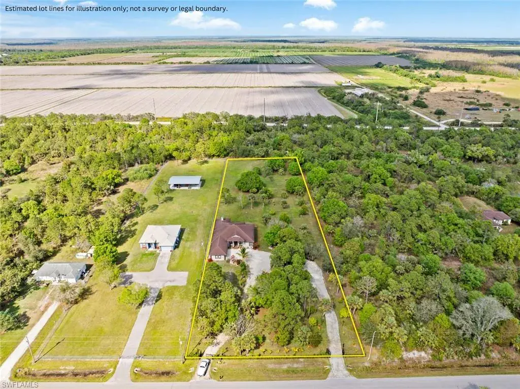 Welcome to 2671 72nd Ave NE, a retreat nestled in the serene Golden Gate Estates of Naples, Florida. This exquisite residence, built in 2006, offers an expansive 3,068 square feet of living space, featuring 4 bedrooms, a den, and 3 bathrooms. This large floorplan is ideal for families and entertaining with lots of space of entertaining inside and out. The property is being sold together with an adjacent 1.59-acre lot, bringing the total to a generous 2.73 acres. As you step inside, you’re greeted by soaring ceilings and gleaming tile and wood flooring. The gourmet kitchen is a chef’s dream, equipped with stainless steel appliances, a spacious island, and granite countertops. The great room boasts a cozy fireplace and sliding doors that seamlessly blend indoor and outdoor living spaces. The expansive primary suite offers lanai access, double walk-in closets, and a spa-like en-suite bath with a soaking tub, dual vanities, and a step-in shower. The property is fully fenced and includes a large circular driveway, enhancing both privacy and convenience. With no HOA restrictions, the meticulously manicured grounds are adorned with 14 fruit trees, including mango, lemon, and coconut. Property also includes an open shed with extra storage. This prime location offers easy access to Immokalee Rd and Everglades Blvd.